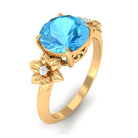 2 CT Round Swiss Blue Topaz Solitaire Flower Engagement Ring with Diamond