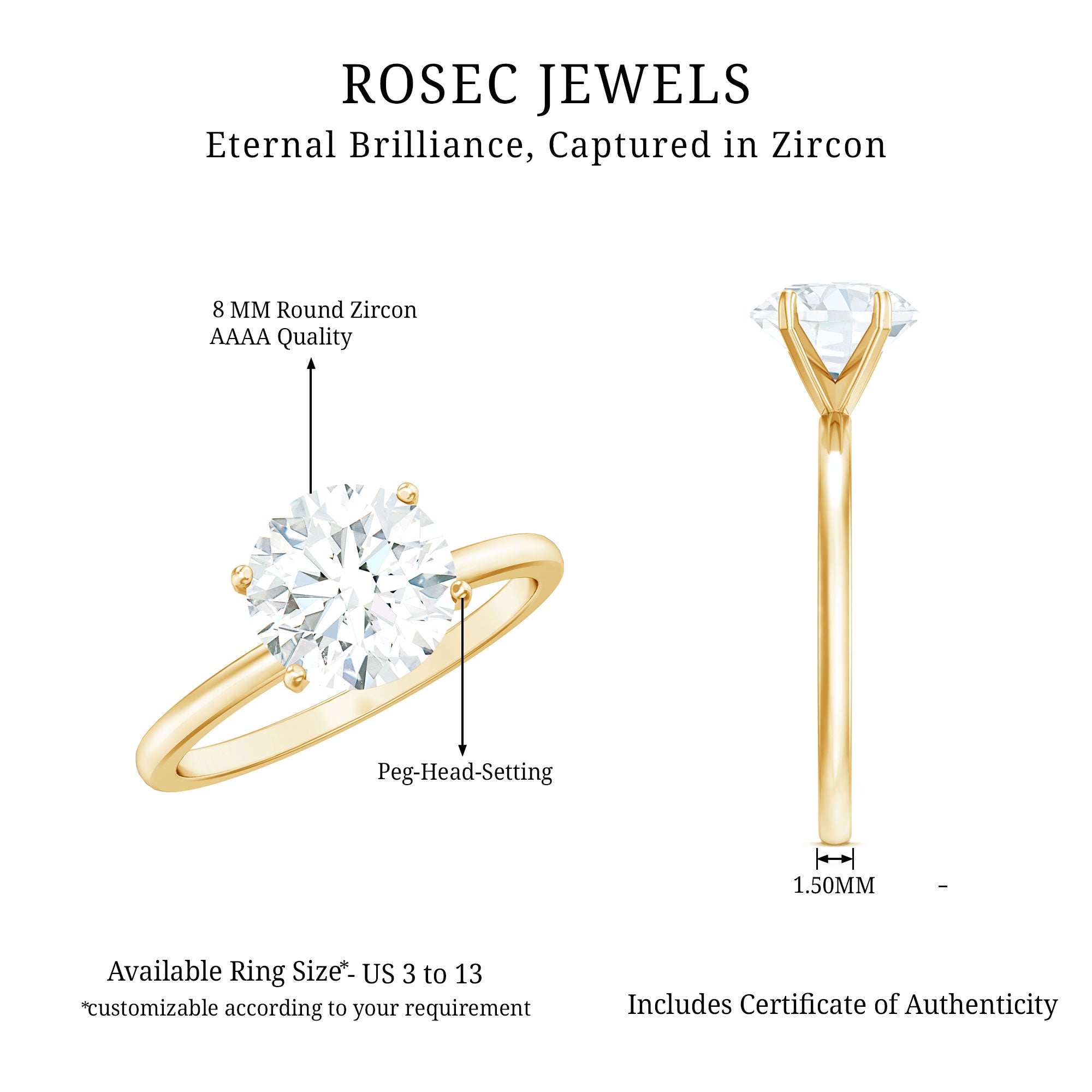 2 CT Simple Round Zircon Solitaire Ring in Peg Head Setting