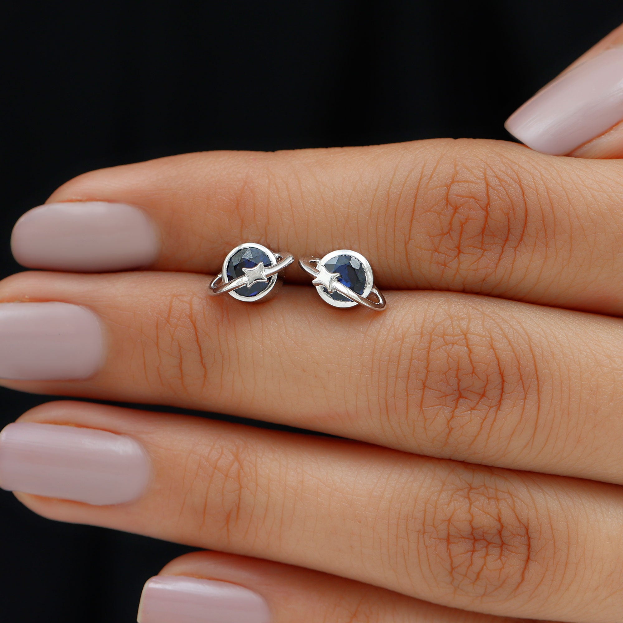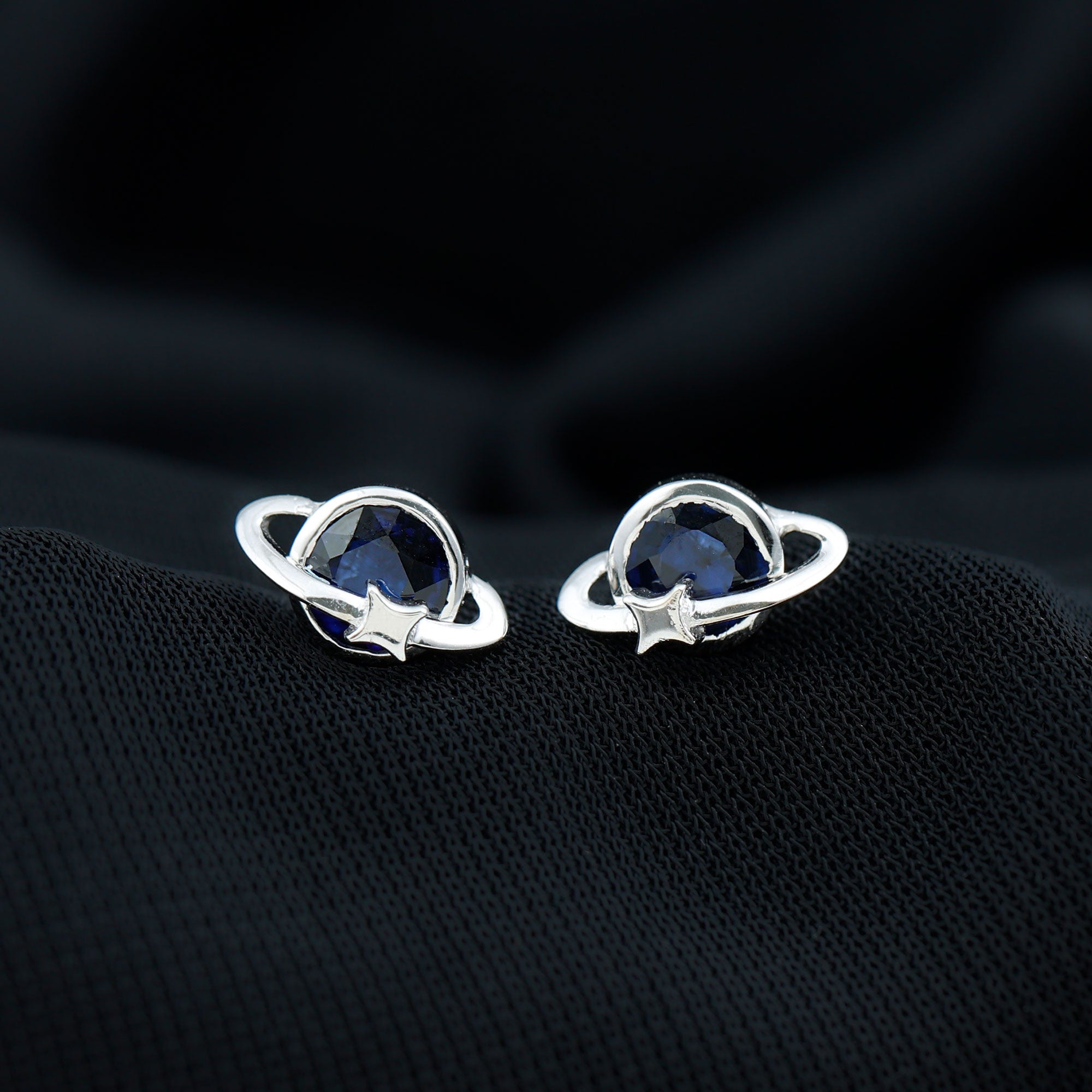 2 CT Solitaire Blue Sapphire Celestial Stud Earrings in Bezel Setting