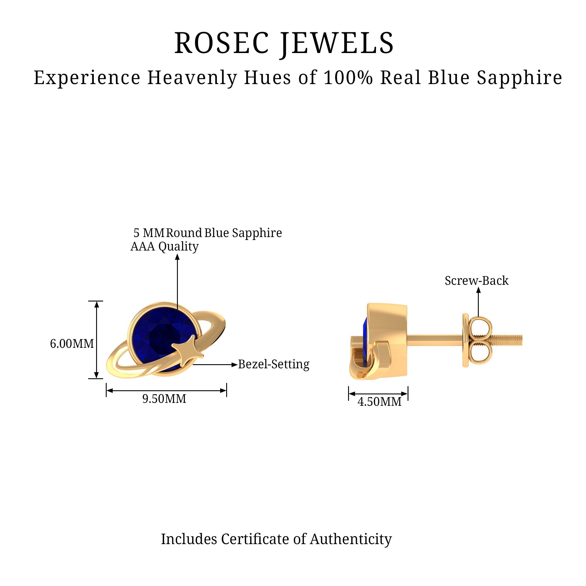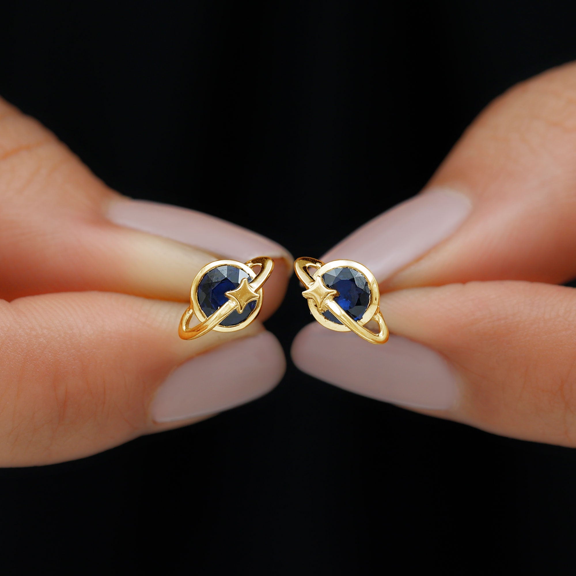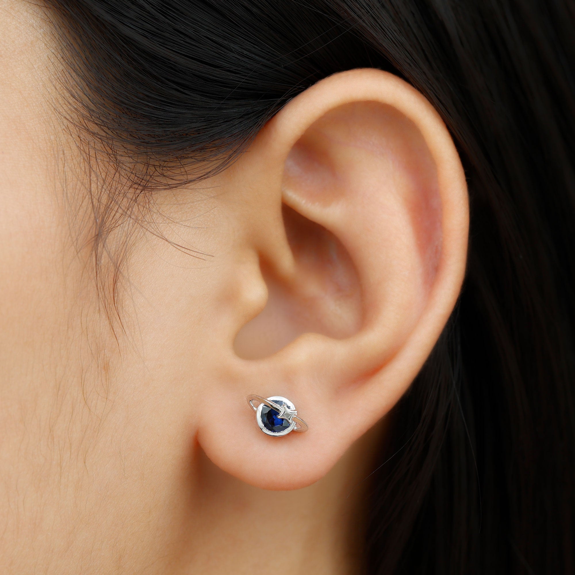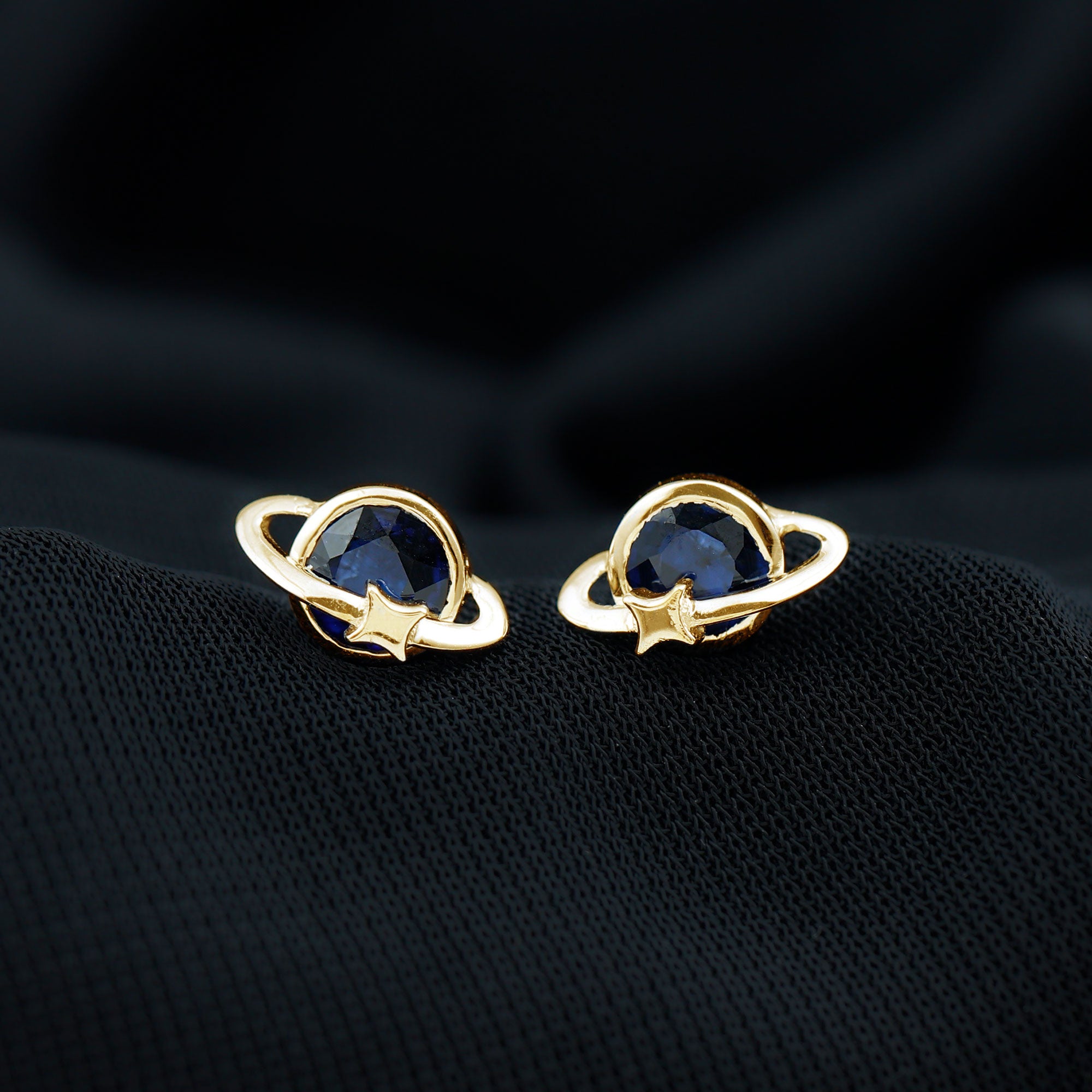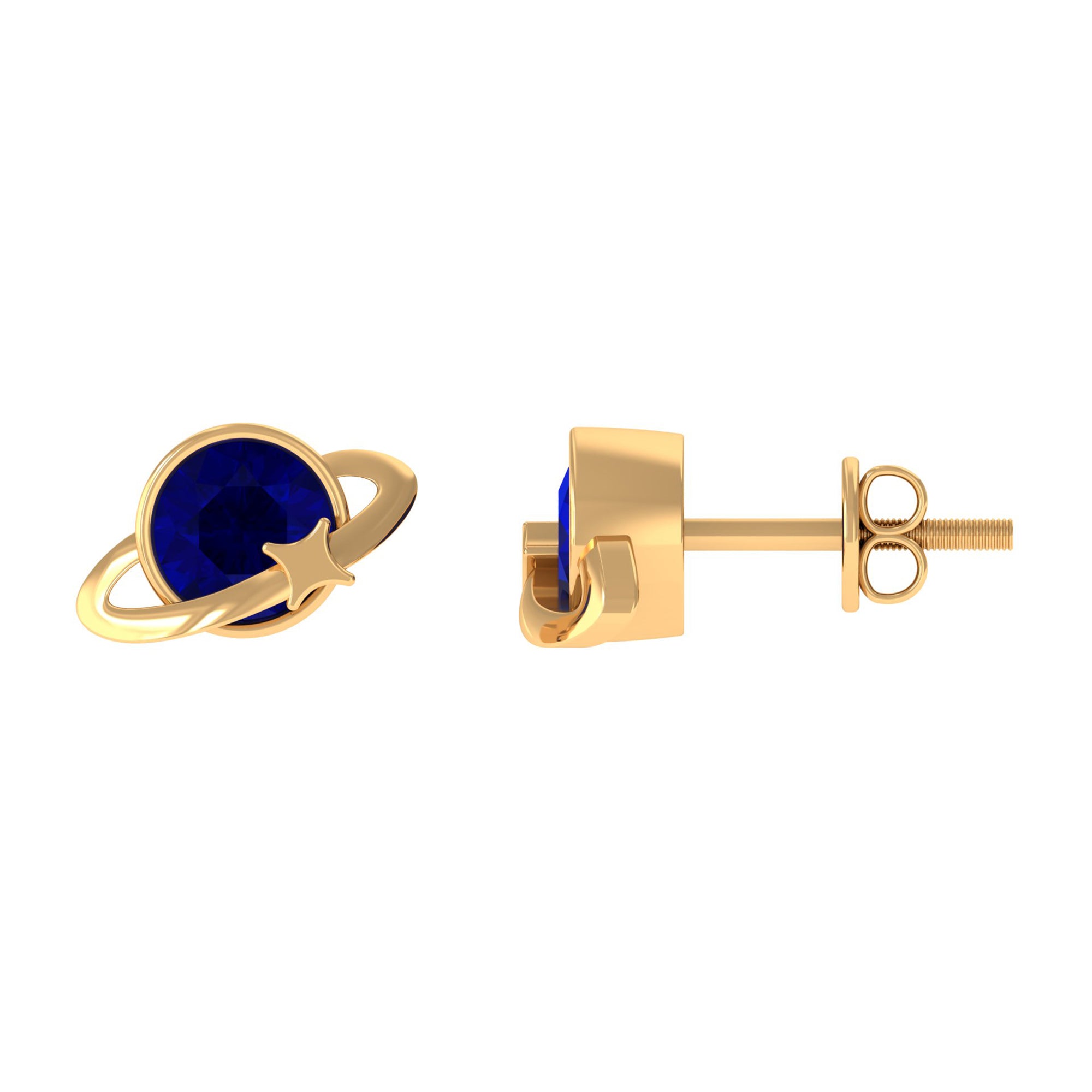 Indulge her with the enchanting Celestial Earrings, a versatile accessory that effortlessly complements any outfit. The Celestial Stud Earrings feature a Round Brilliant Cut Blue Sapphire, delicately set in a charming bezel setting, accentuating the celestial design. These Gold earrings possess a radiant allure that is sure to catch attention. Make her birthday truly memorable by gifting her these exquisite Gold Stud Earrings. Let her celebrate her special day in style with this precious and heartfelt present for your beloved girl.