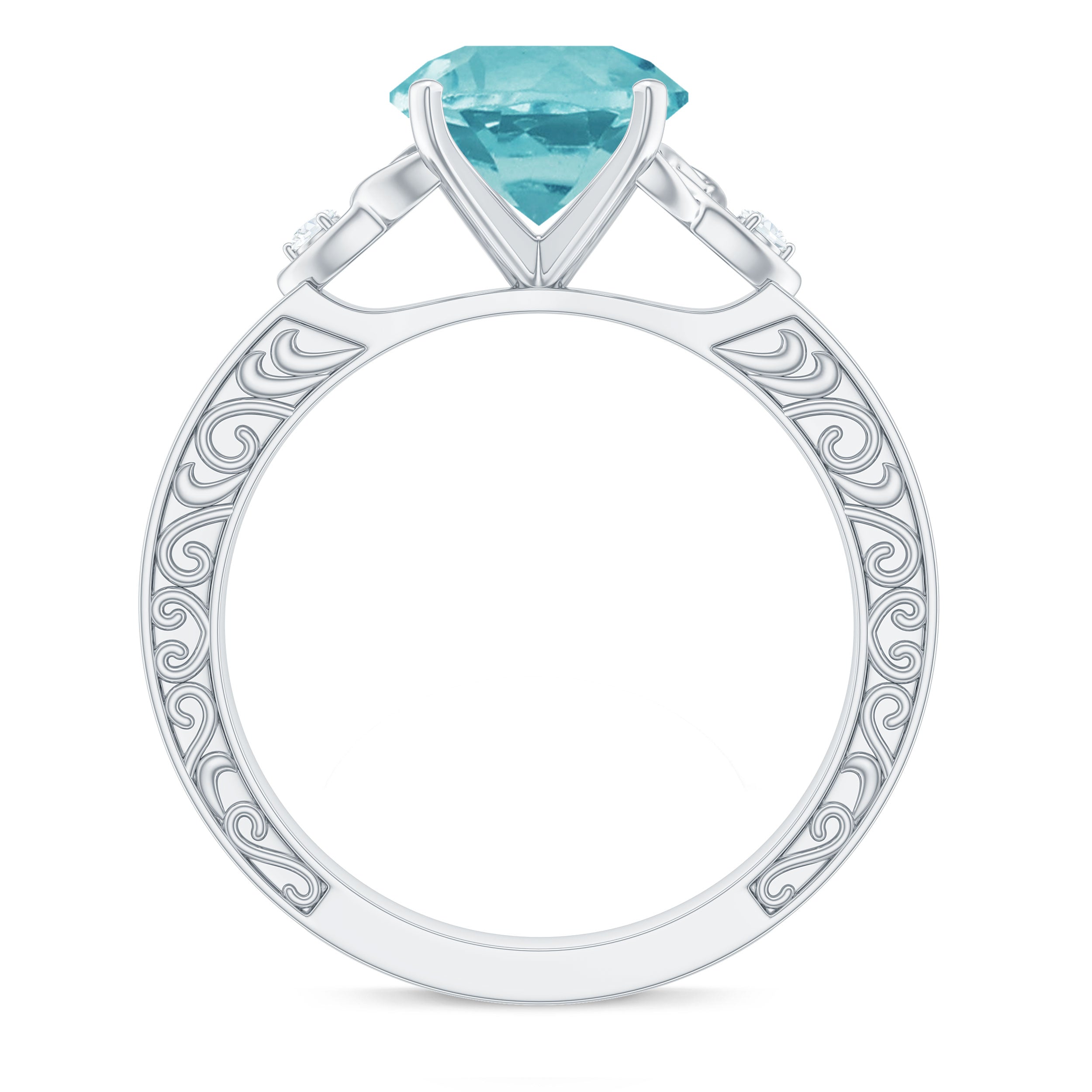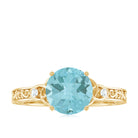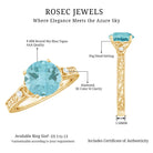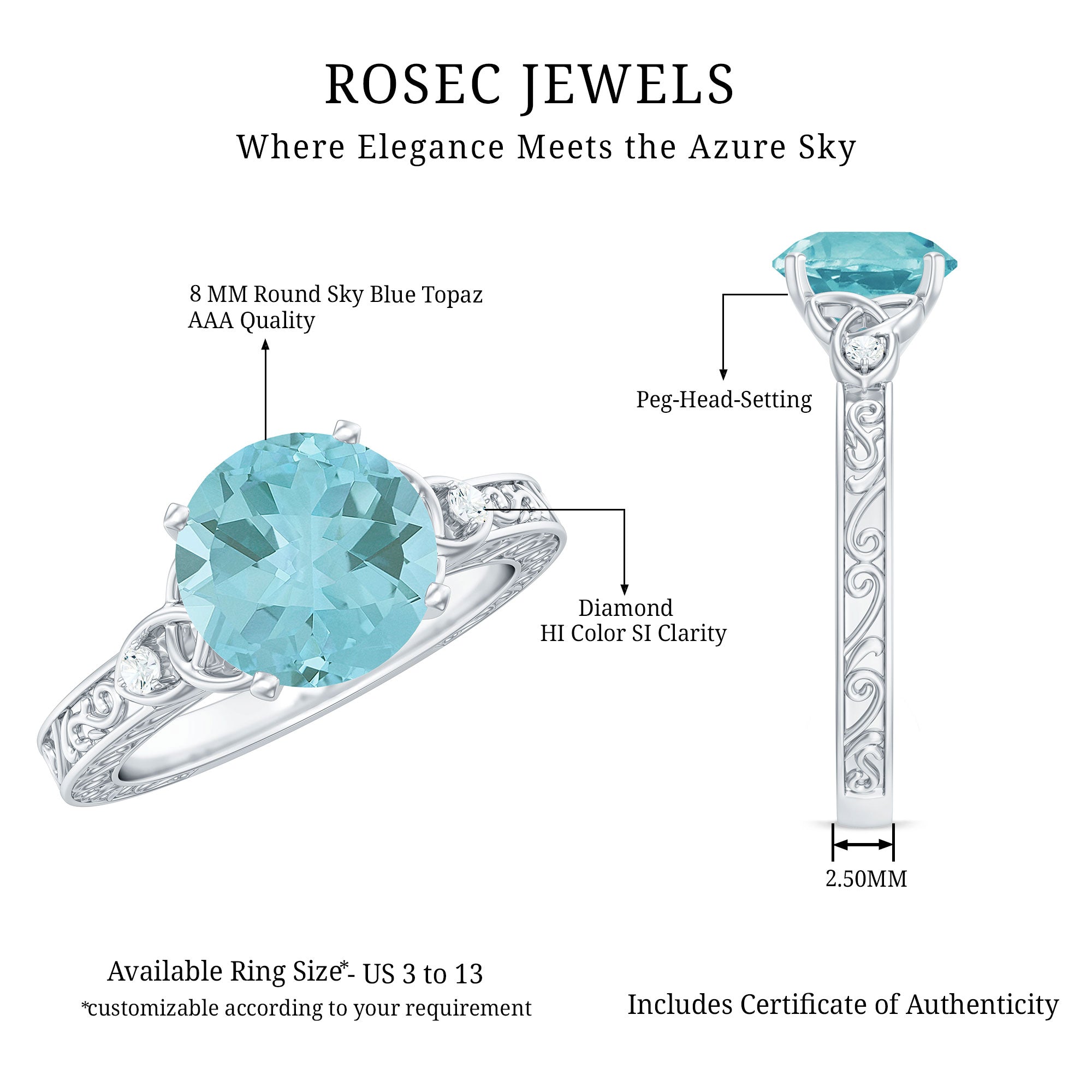 This stunning Sky Blue Topaz Engagement Ring features a gorgeous Round Shape sky blue topaz in the center with sparkling Diamond on both sides. The band is crafted from gold and is adorned with beautiful Celtic Knot detailing for added elegance. Perfect for the love of your life, this ring symbolizes your love and commitment for a lifetime.