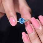 2 CT Swiss Blue Topaz in Prong Setting Ring with Hidden Halo Diamond