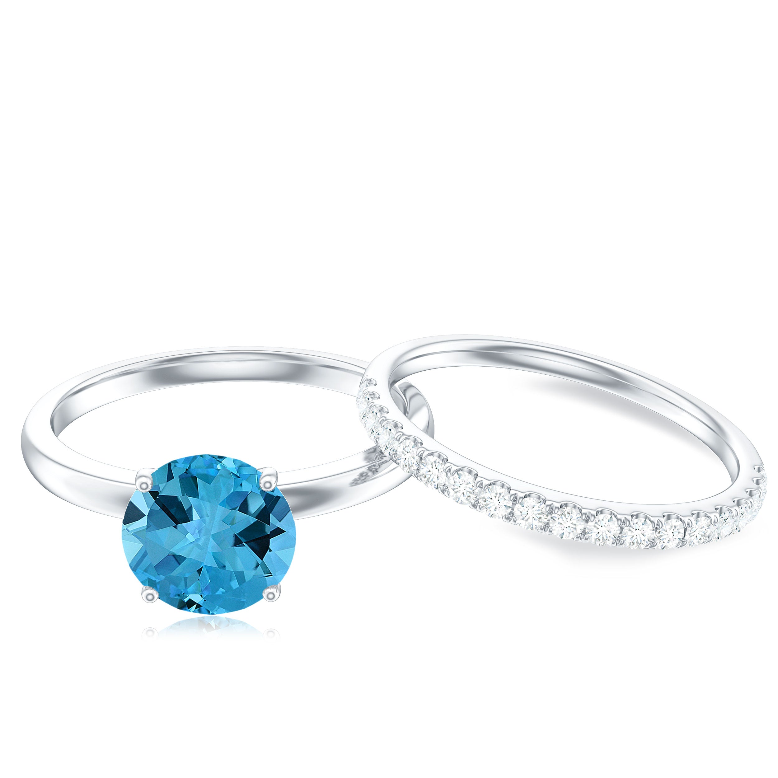 Shine like a diva on your special day by wearing this elegant Swiss Blue Topaz and Diamond Bridal Ring Set. Swiss Blue Topaz - Brilliant Cut Swiss Blue Topaz Gemstone exhibits AAA Quality and possess vibrant color. Semi-Precious December Birthstone summons prosperity and wealth. It is Natural and Certified, helps in bringing abundance, joy, and perfection to the wearer. Its Durability and Luster is enhanced by Heat and Irradiated Treatment, to further make it a captivating and desirable gem. Diamond - HI-SI Quality exhibited by Brilliant Cut Diamond give justice to its incredible value. Diamond summons beauty, attractiveness and unbreakable love. It is Certified and helps in bringing success and luxury to the wearer. Its Durability and Luster is enhanced by Lab Created Treatment, to further make it a captivating and desirable gem.