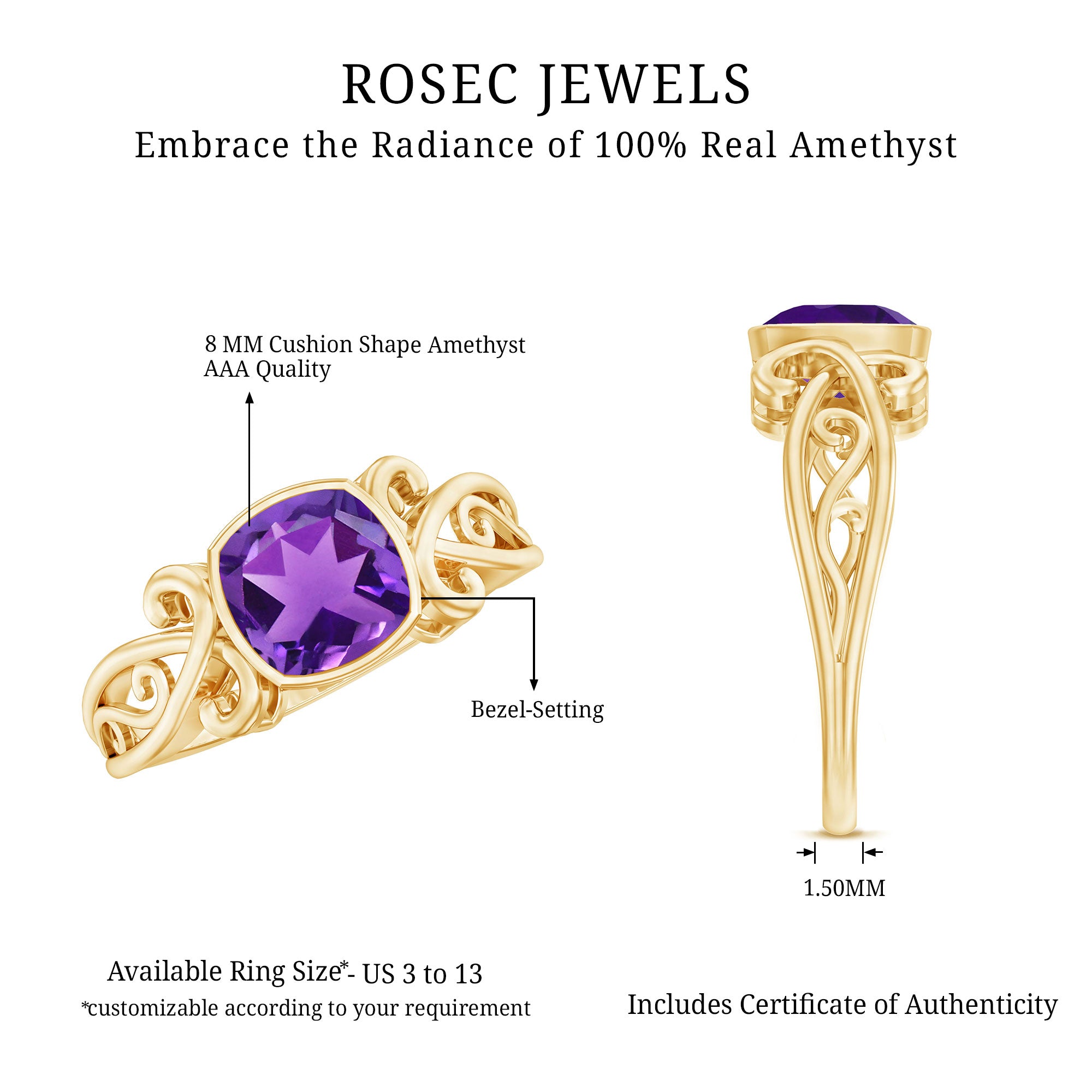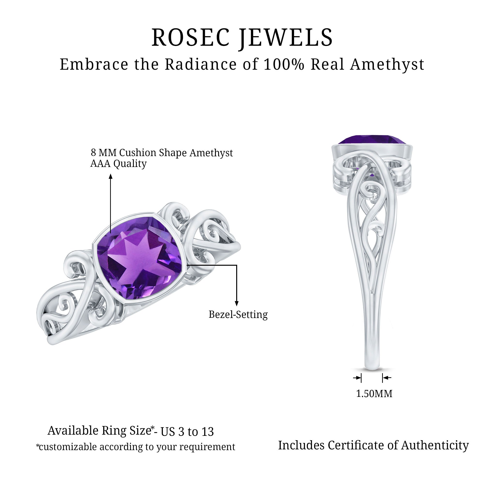 2 CT Vintage Inspired Cushion Cut Amethyst Solitaire Ring