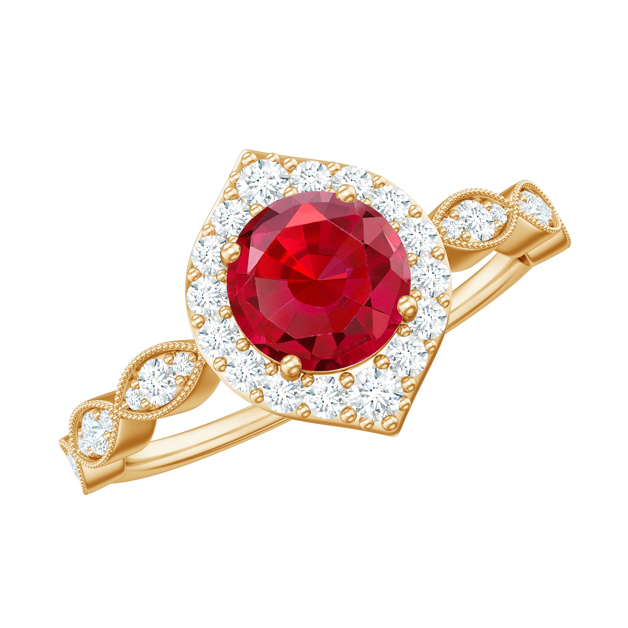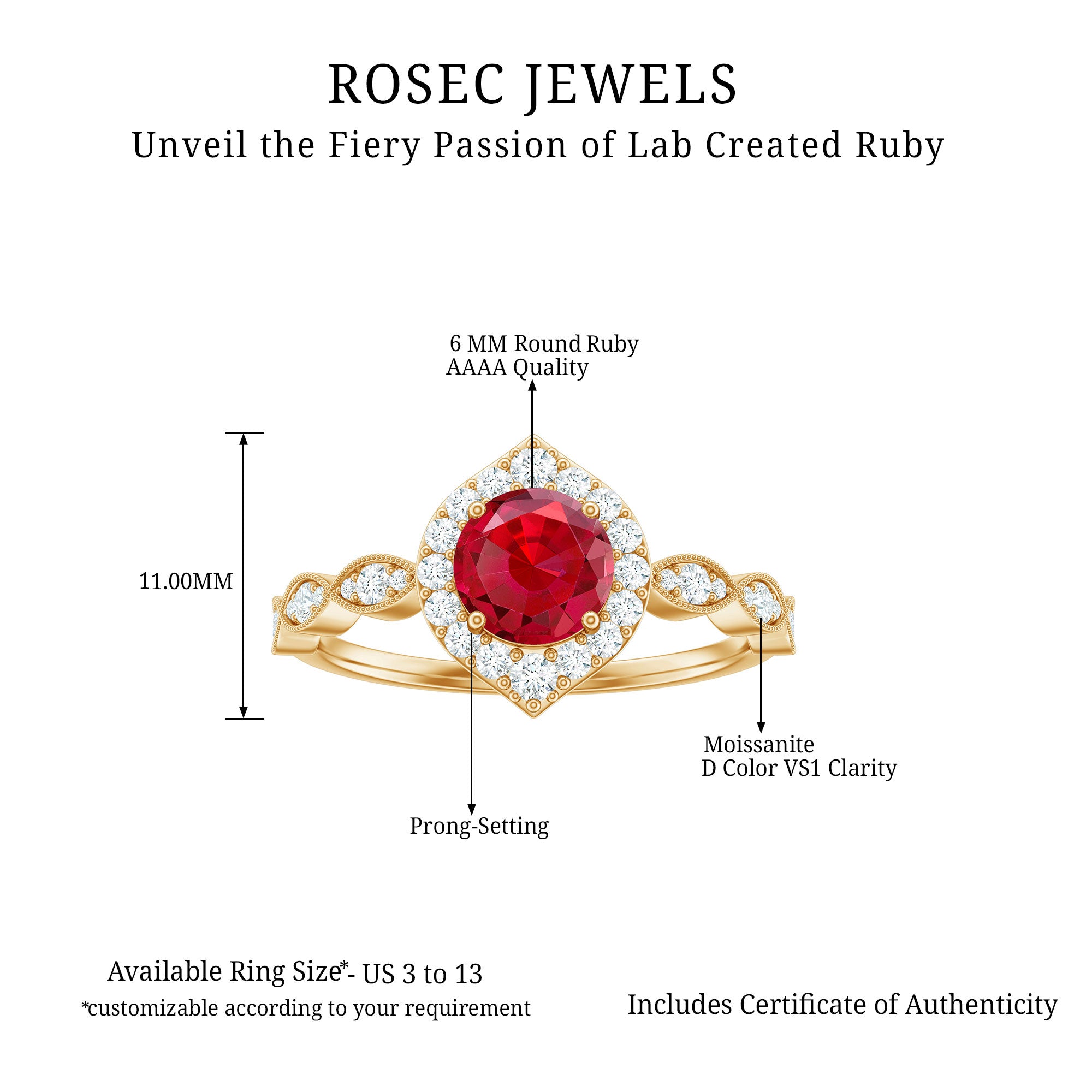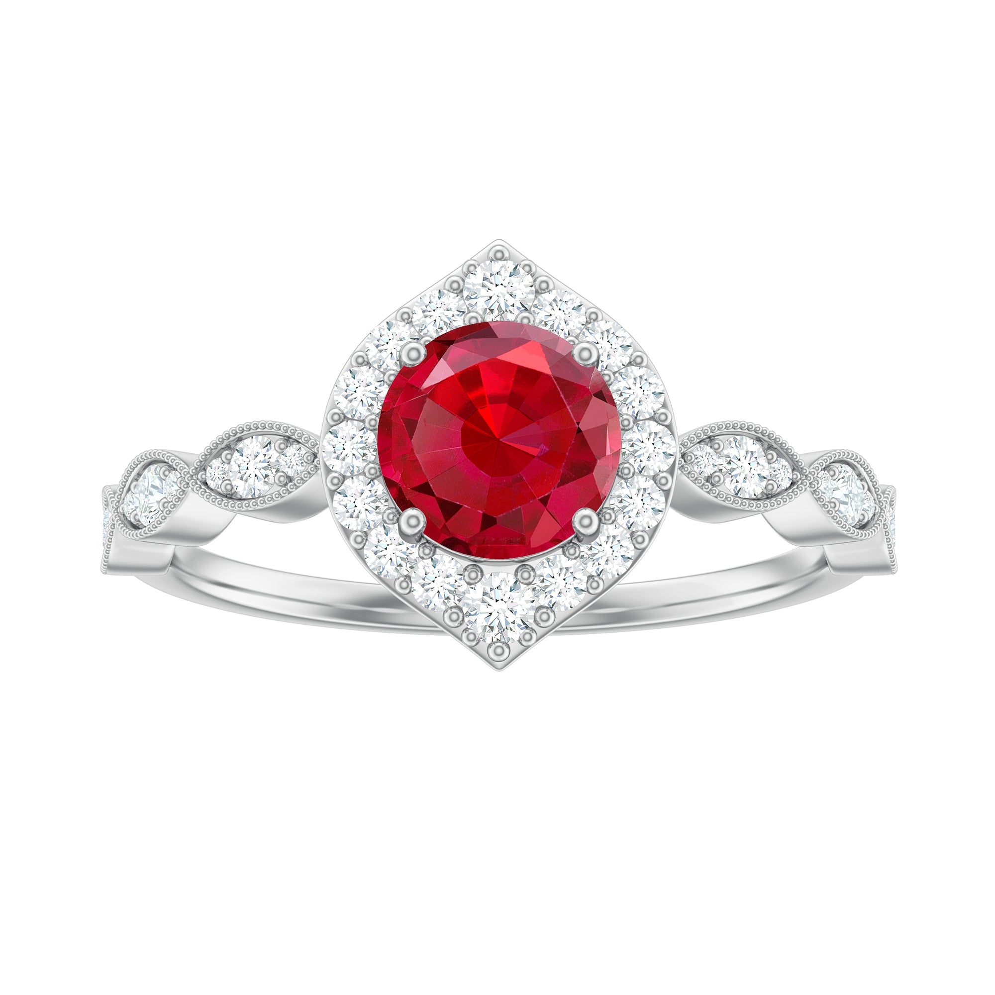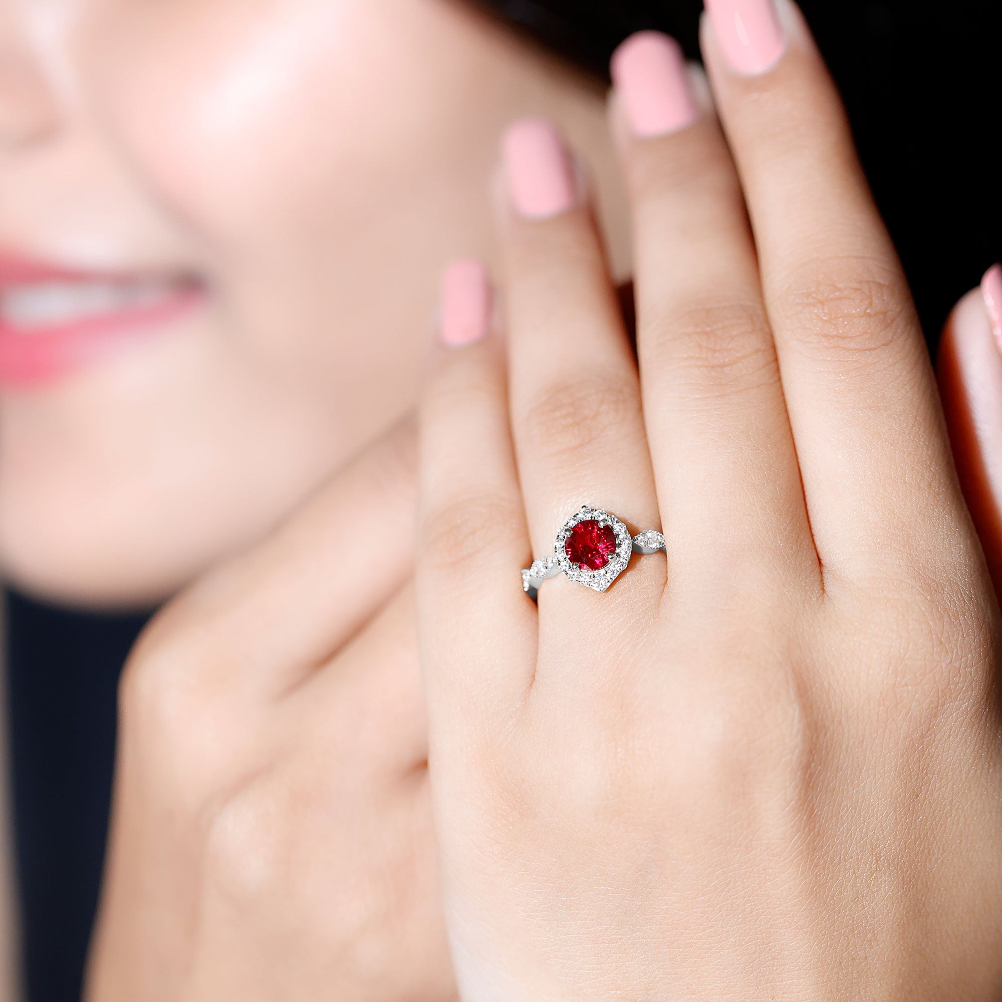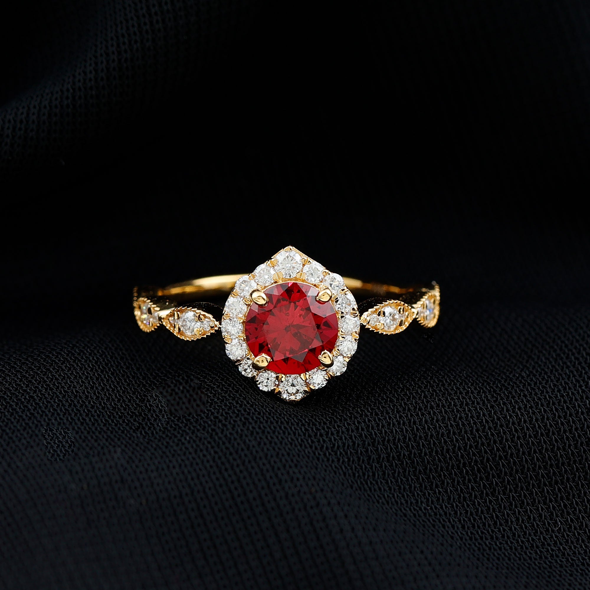 2 CT Vintage Style Created Ruby Engagement Ring with Moissanite