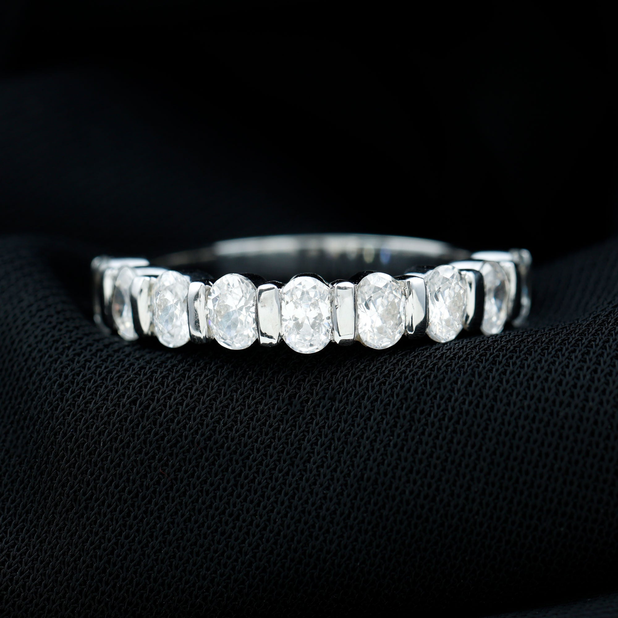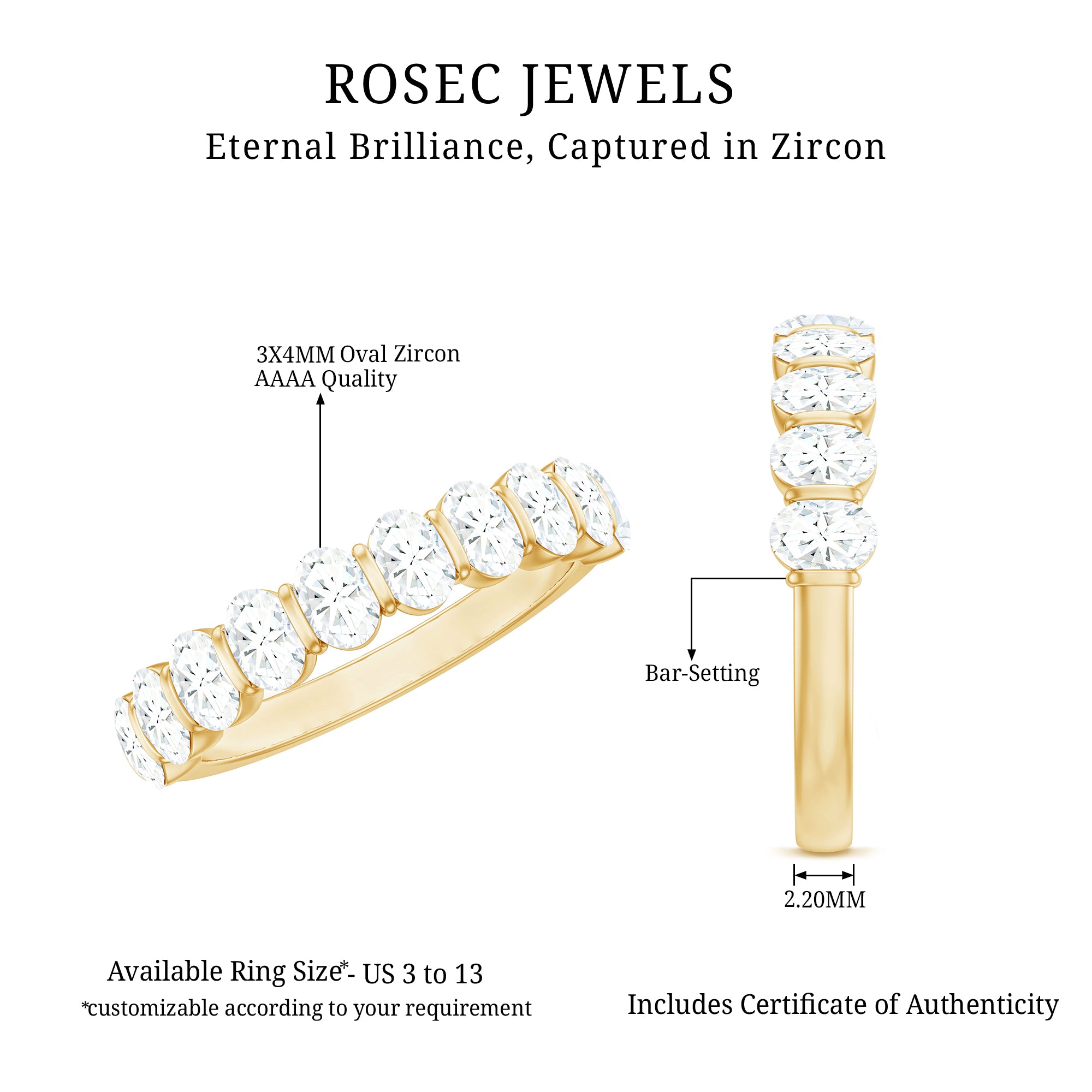 Eternity means forever so, get this alluring Half Eternity Ring for your love to make your bong everlasting. This Half Eternity Ring is embellished with Oval Cut Zircon and set in Bar Setting. Crafted with Solid Gold, this Zircon Half Eternity Ring will make her always fall for you only.