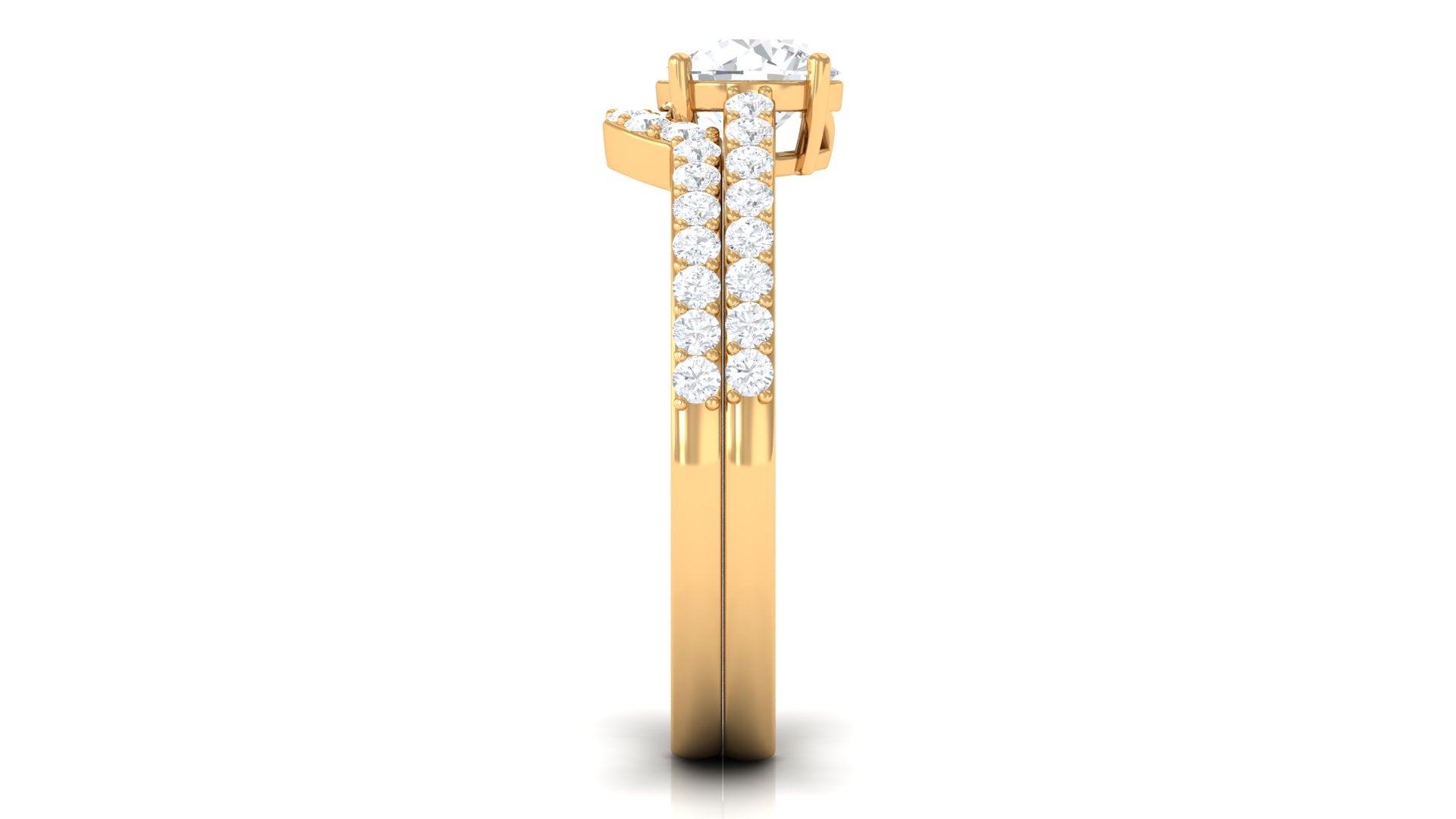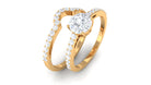 Sparkling Cubic Zirconia Ring Set is artistically handcrafted in Gold to add a lustrous charm. This is a Bridal Ring Set embellished with Round Zircon, giving a rich feel to the wearer. This Zircon Wedding Ring Set emits fiery sparkle that exhibits high brilliance.
