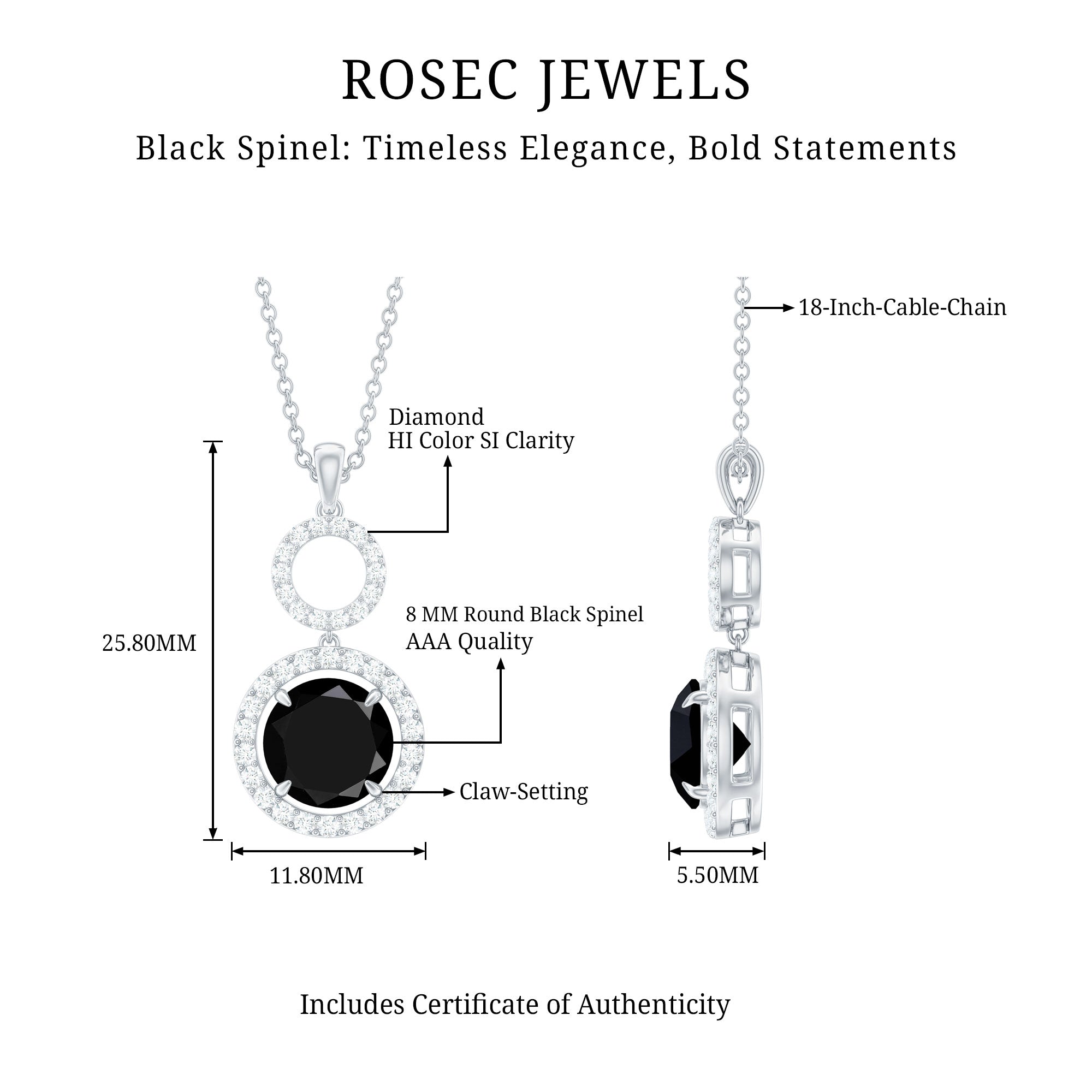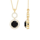 Elevate your style with this exquisite Black Spinel Pendant. Featuring a Brilliant Round Shape Black Spinel in a Claw Setting with Diamond Halo and Open Circle, this pendant necklace is a stunning addition to your jewelry collection. Crafted in Gold, this dangle pendant makes for a lovely surprise for your beloved.