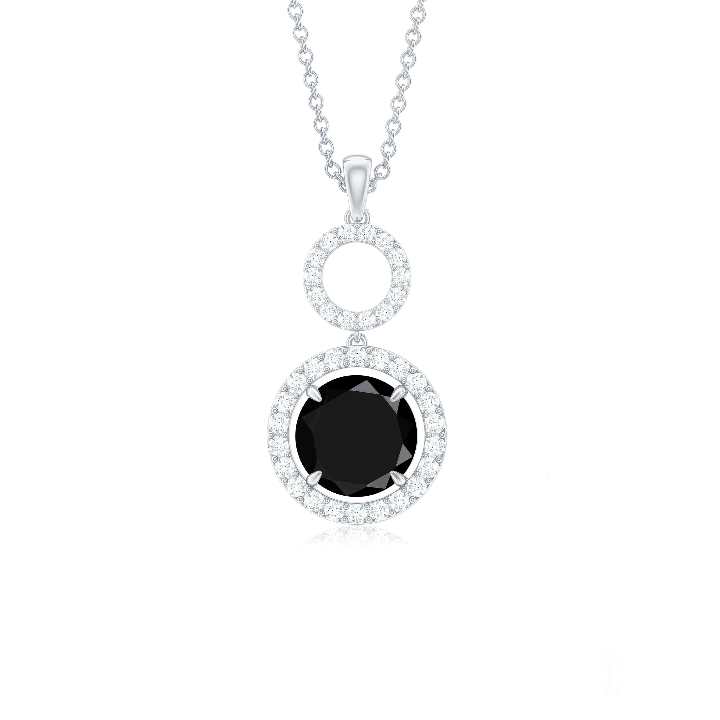 3.25 CT Black Spinel and Diamond Halo Dangle Pendant
