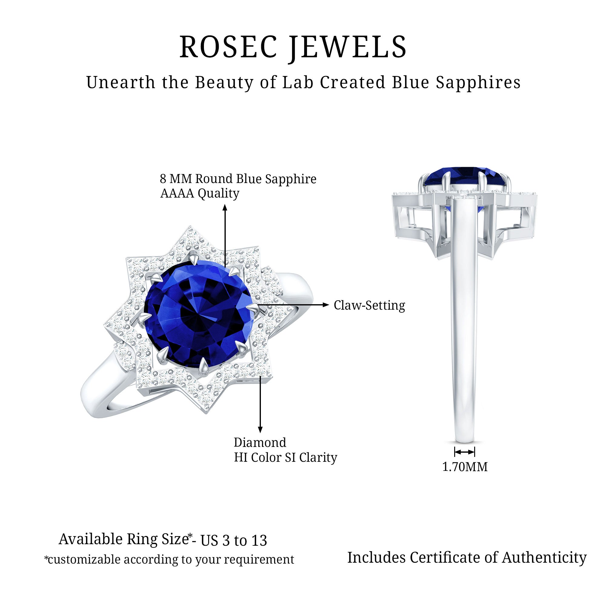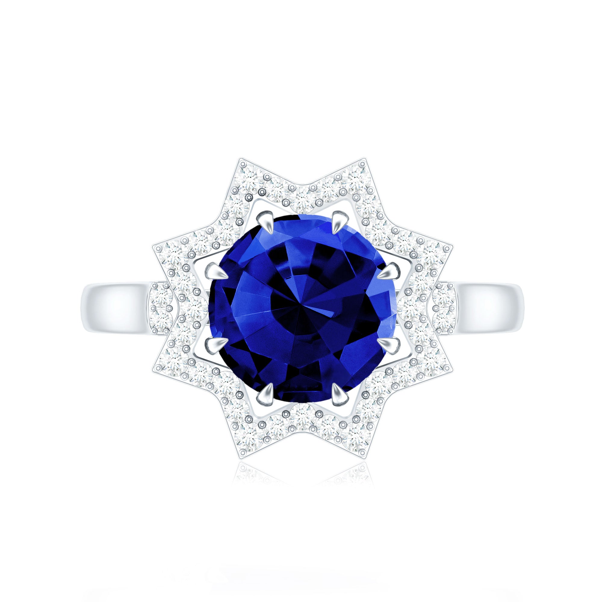 3.25 CT Created Blue Sapphire Star Shape Engagement Ring with Diamond