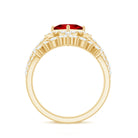 Mark the timelessness of your bond by exchanging the perfect jewelry on your special day. This Created Ruby Wedding Ring Set, crafted in luxurious gold, features a princess-cut Created Ruby and round-cut moissanite, adding an extra charm to the set. Give your significant other the gift of enchantment with this exquisite bridal ring set and make your special day even more memorable.