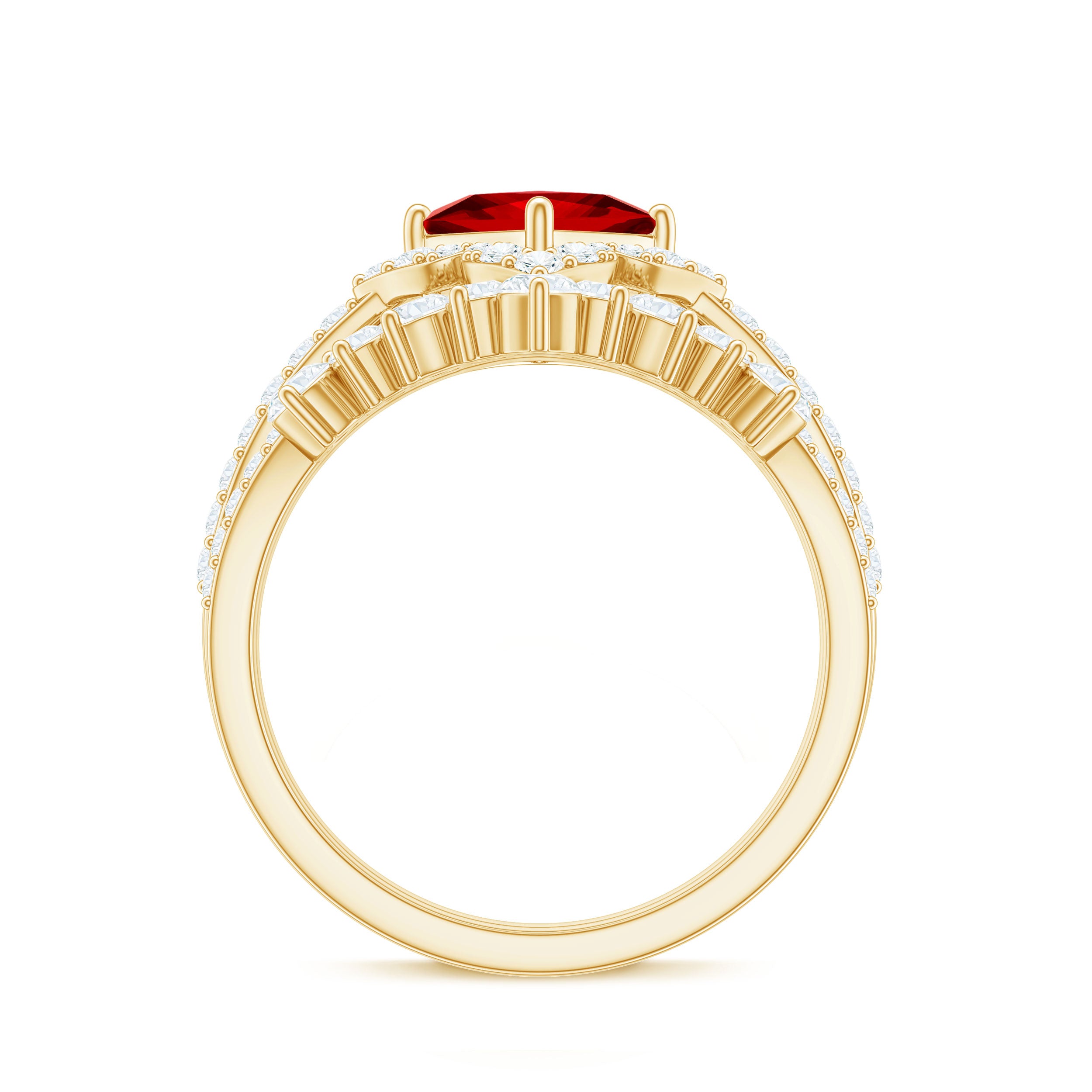 3.25 CT Designer Created Ruby and Moissanite Wedding Ring Set