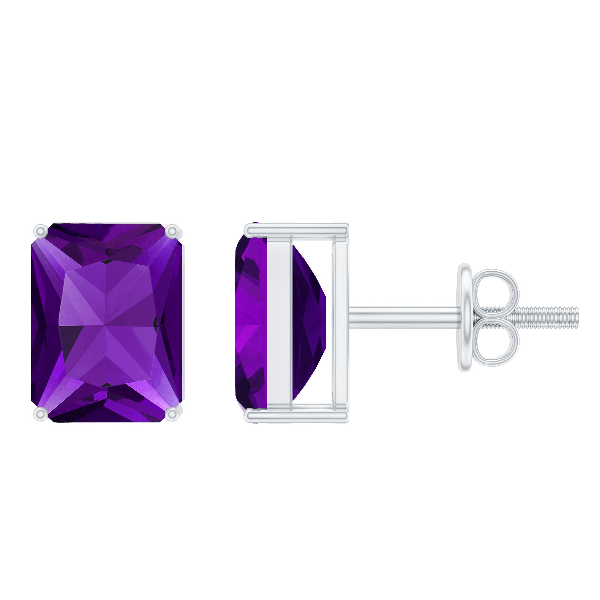 Enhance your ensemble with our Solitaire Earrings in Octagon Cut Amethyst Solitaire which will add charm to your look.