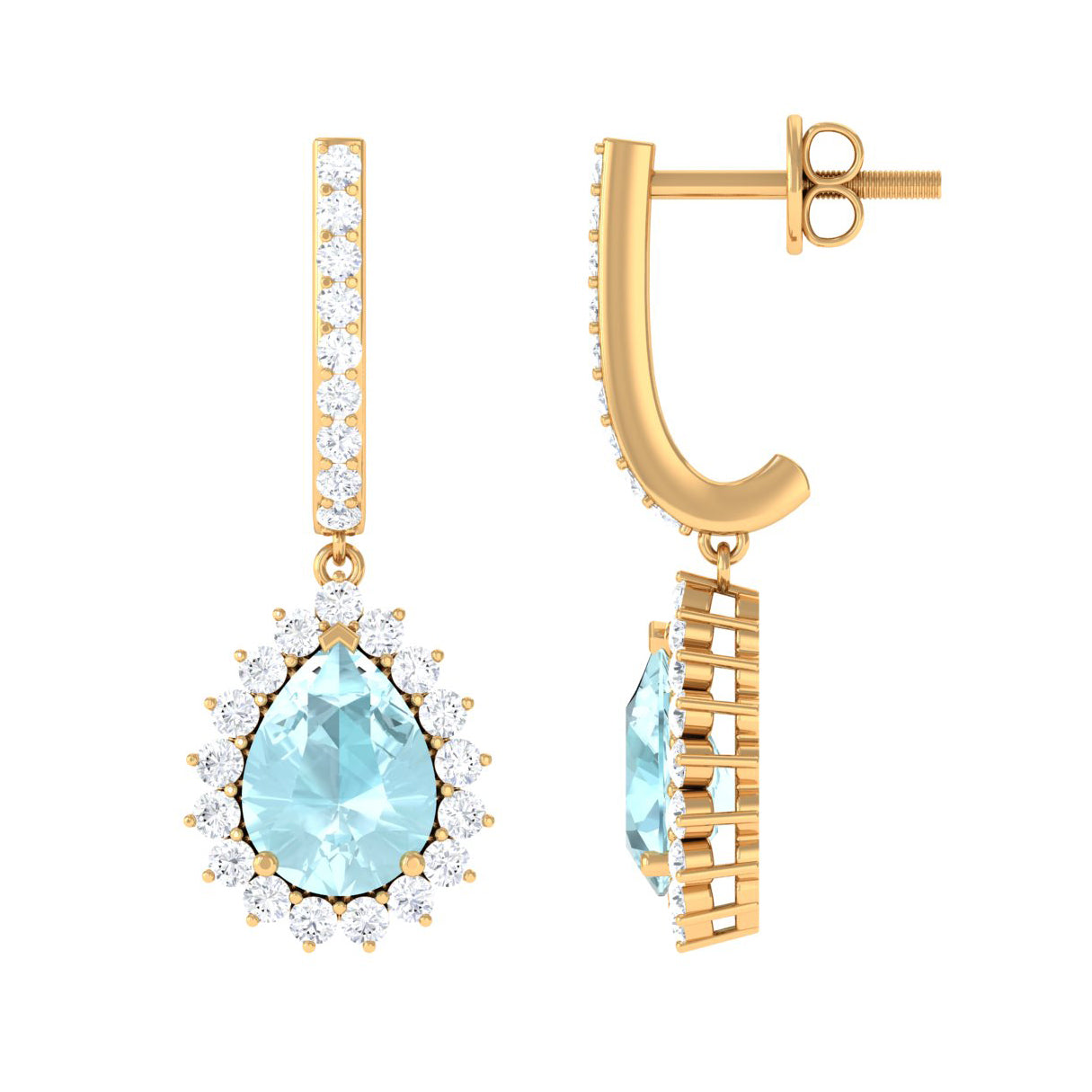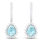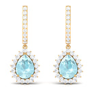 Pear Shaped Sky Blue Topaz Halo Bridal Drop Earrings
