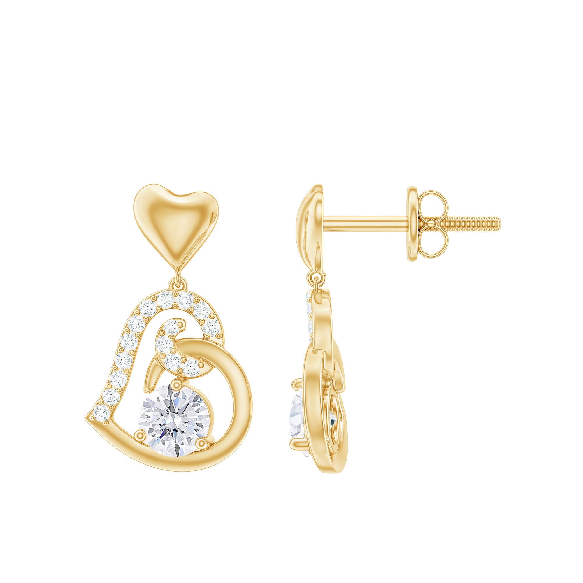 3/4 CT Accent Set Moissanite Heart Drop Earrings for Women