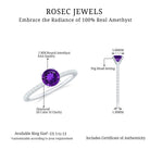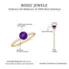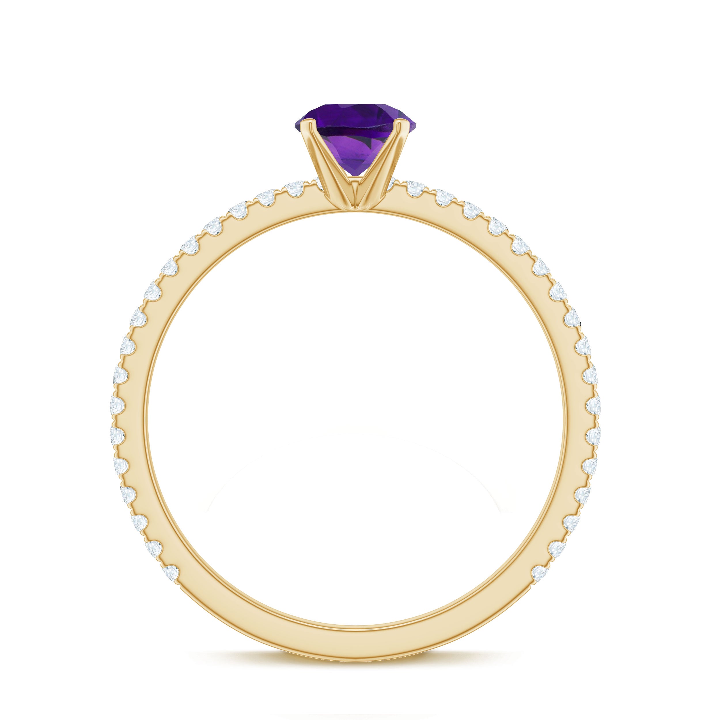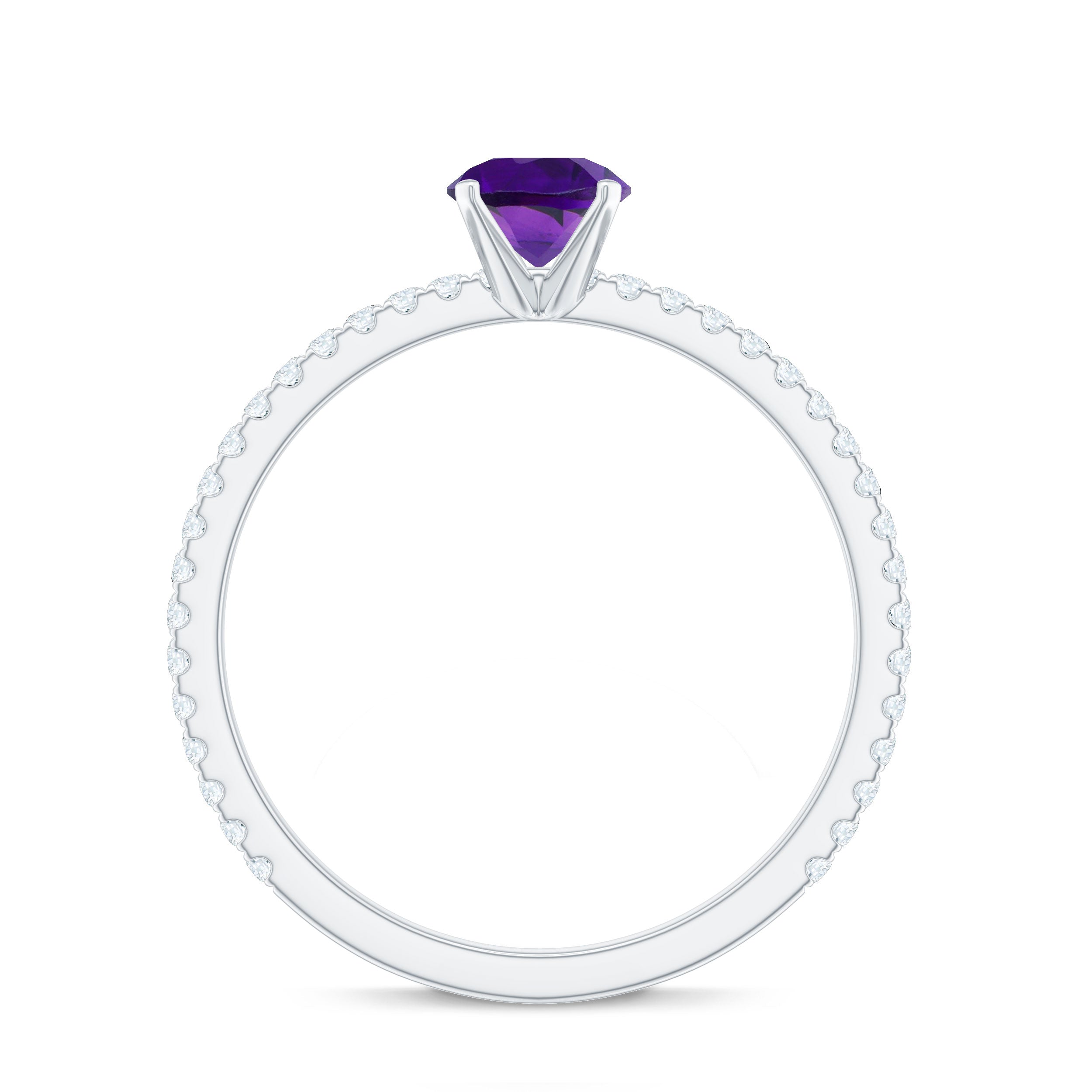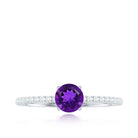 It features a Round Shape Amethyst as Solitaire embellished in Prong Setting with Round Brilliant Diamonds as Side Stones embellished in Pave Setting.