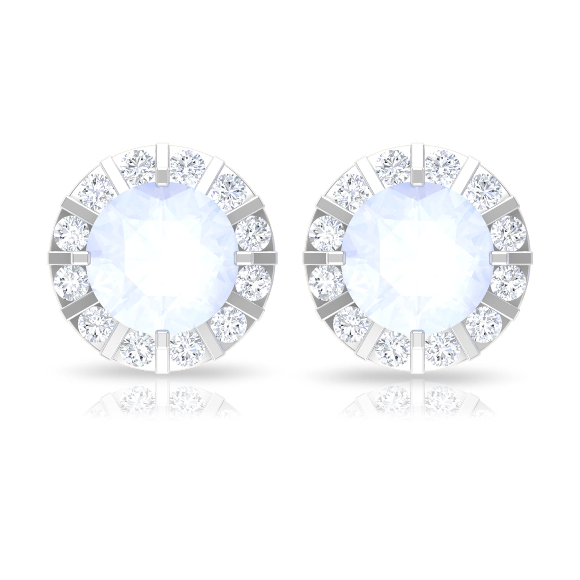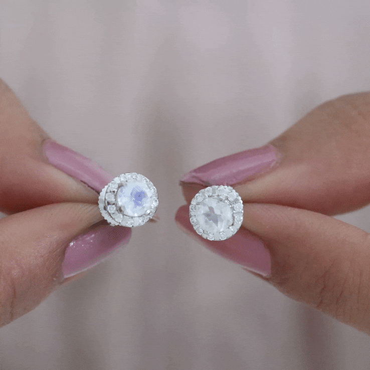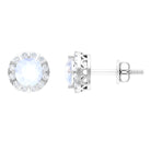 3/4 CT Antique Moonstone and Diamond Stud Earrings