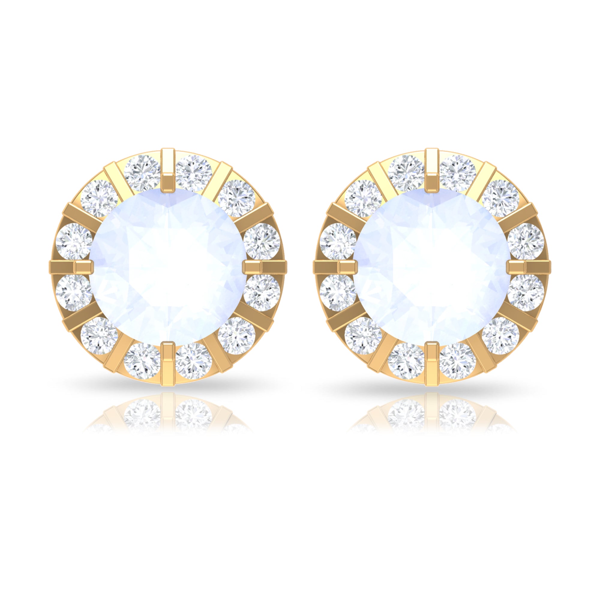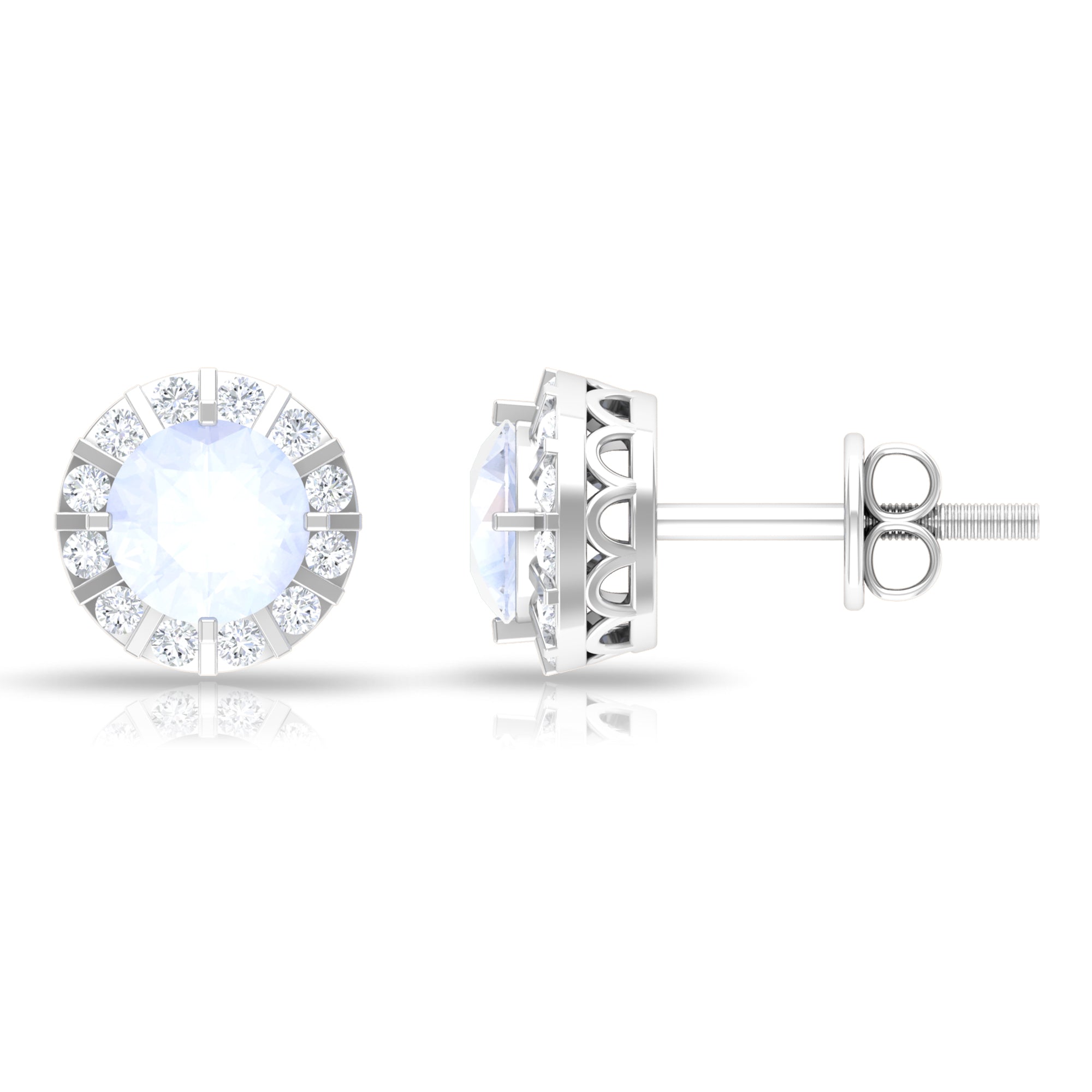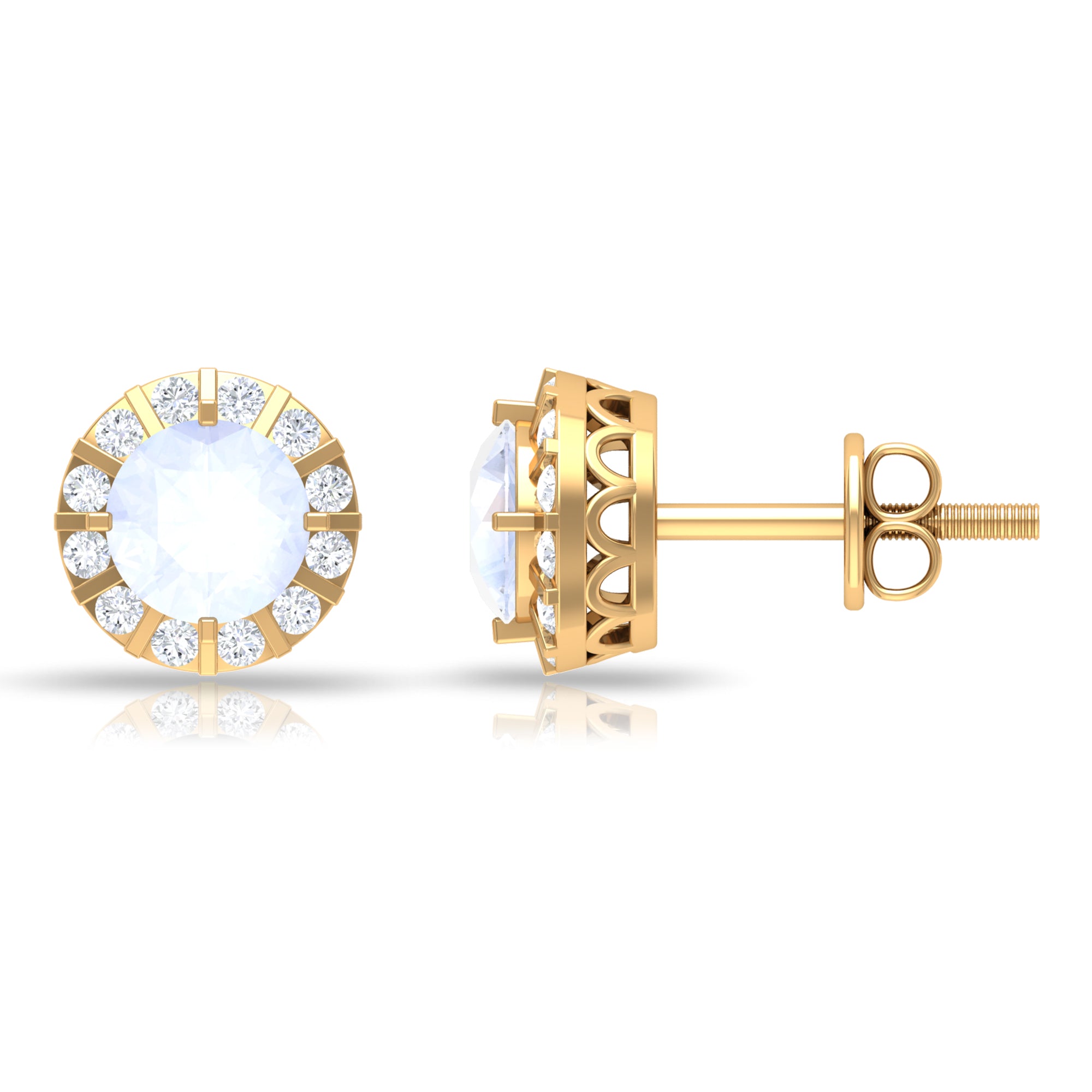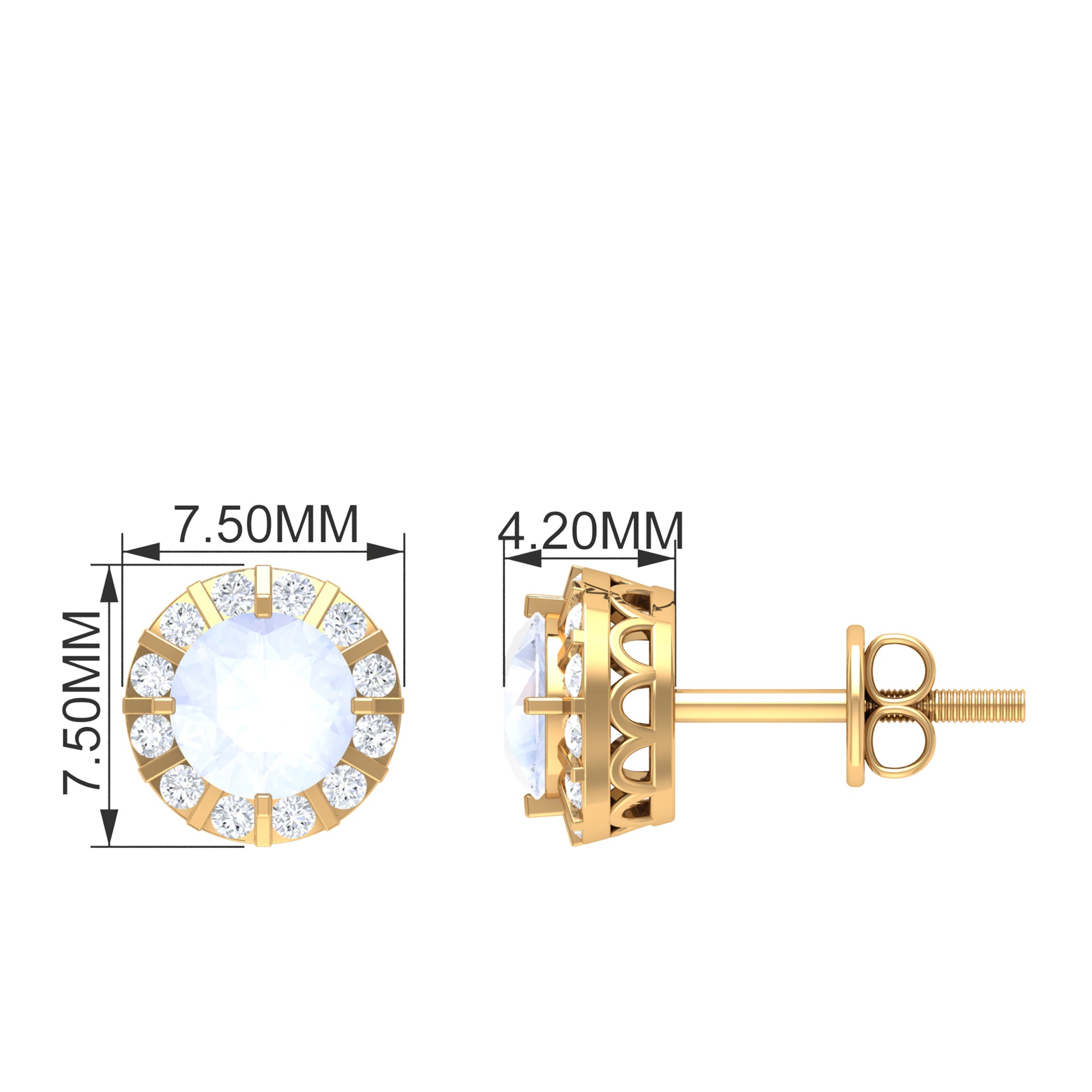 Look Different in these Antique Earrings with a Round Shape Moonstone as Solitaire and round shape Diamond forming unique and Antique stud earrings will add charm to your look.