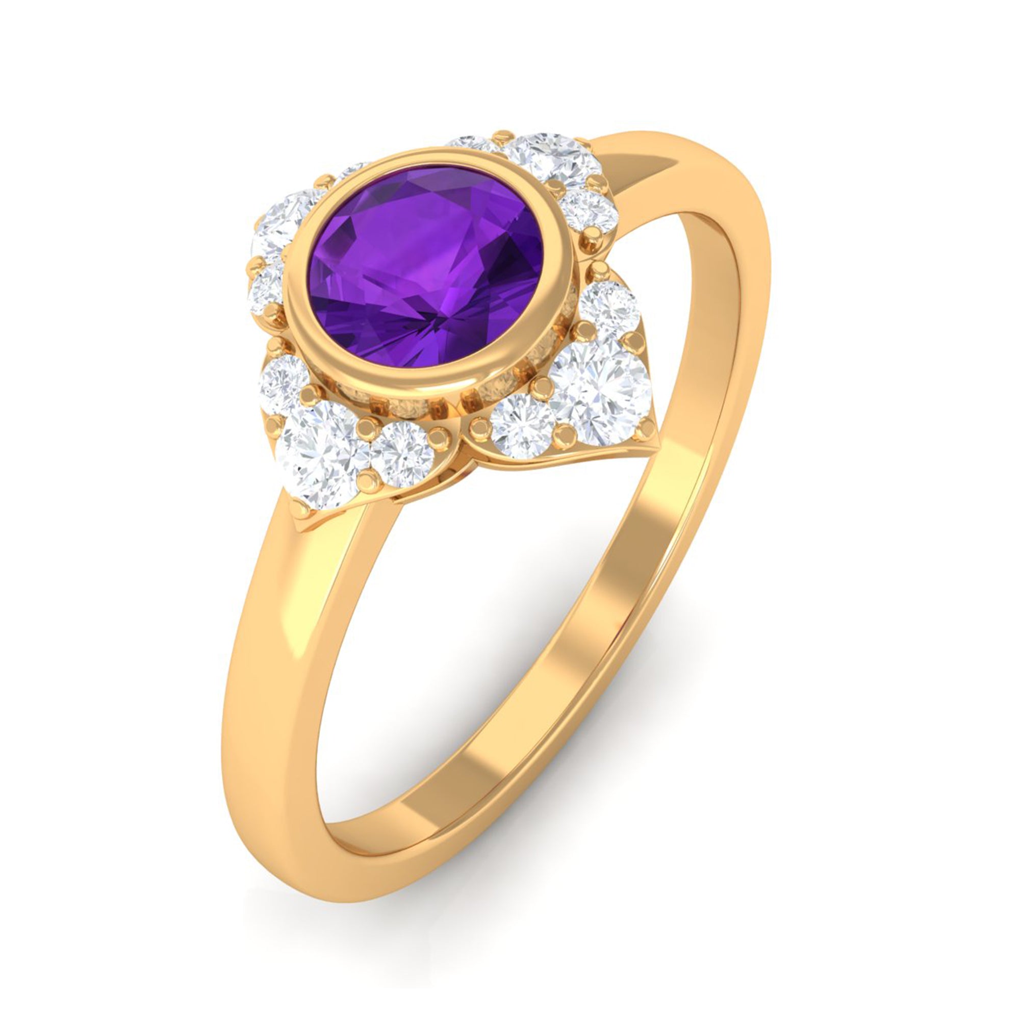 3/4 CT Bezel Set Amethyst Flower Engagement Ring with Diamond