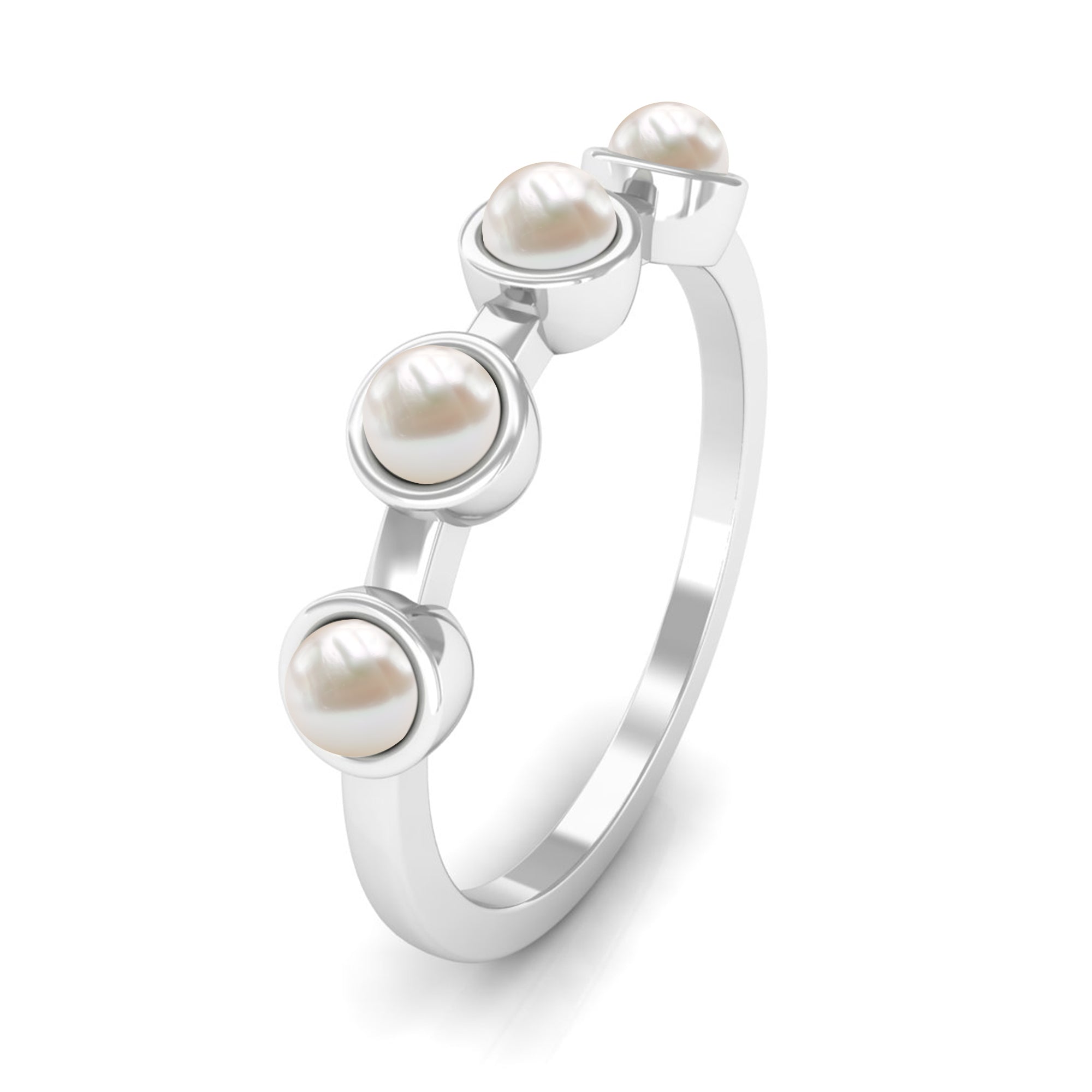 3/4 CT Bezel Set Freshwater Pearl Minimal Promise Ring