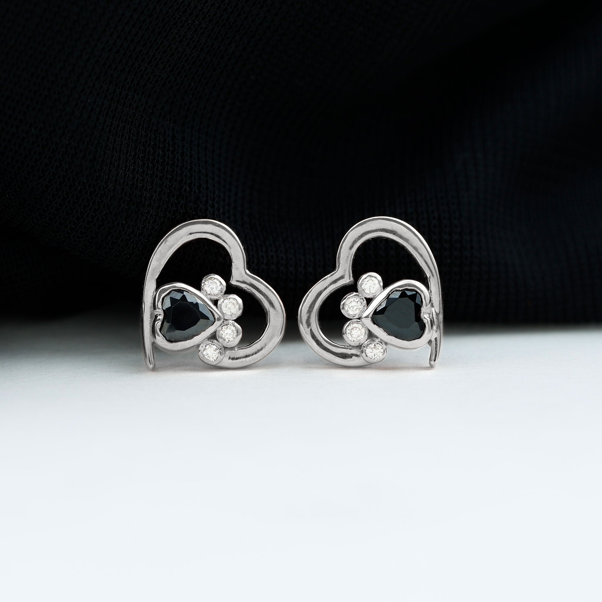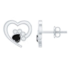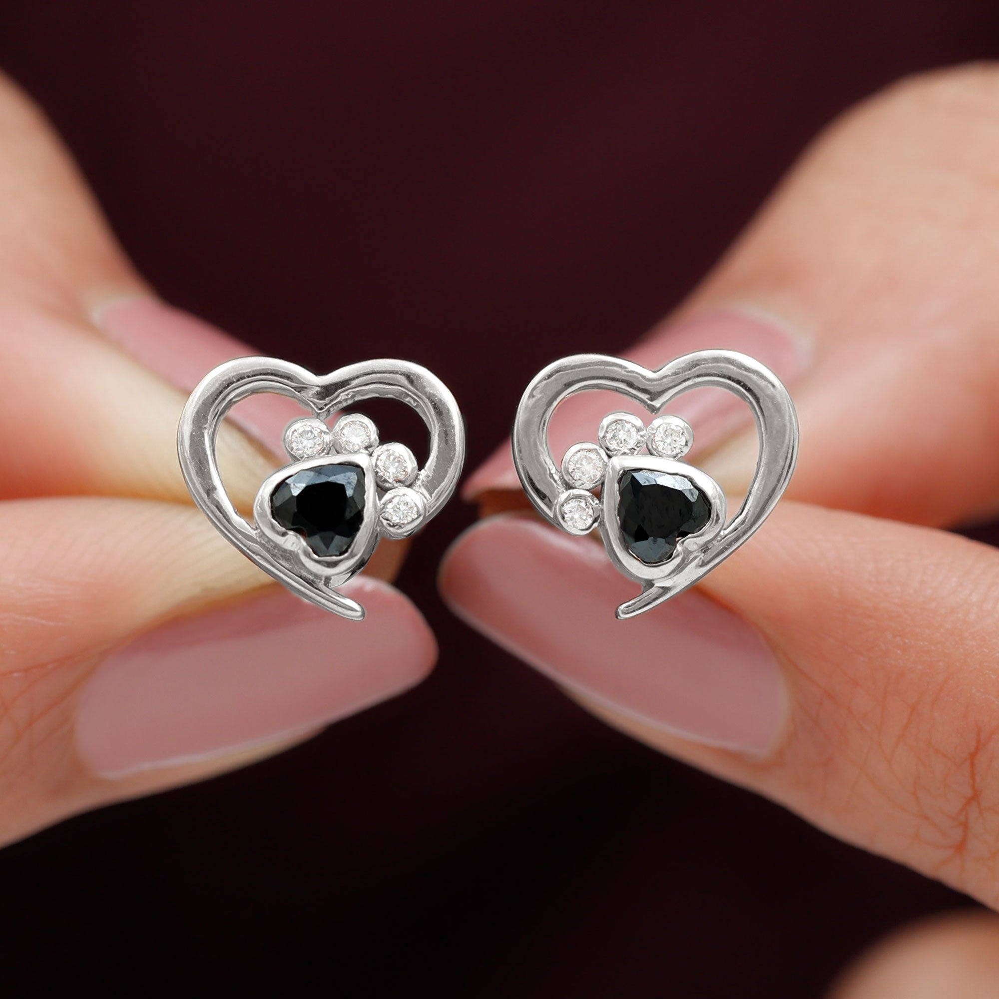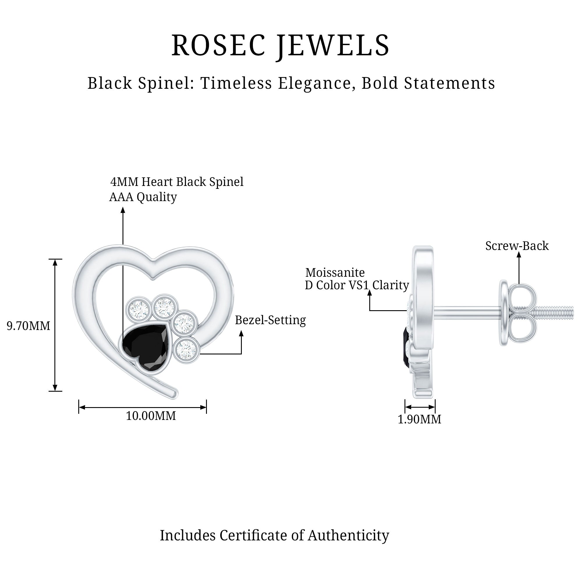 3/4 CT Bezel Set Heart Shape Black Spinel Paw Stud Earrings with Moissanite
