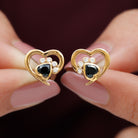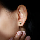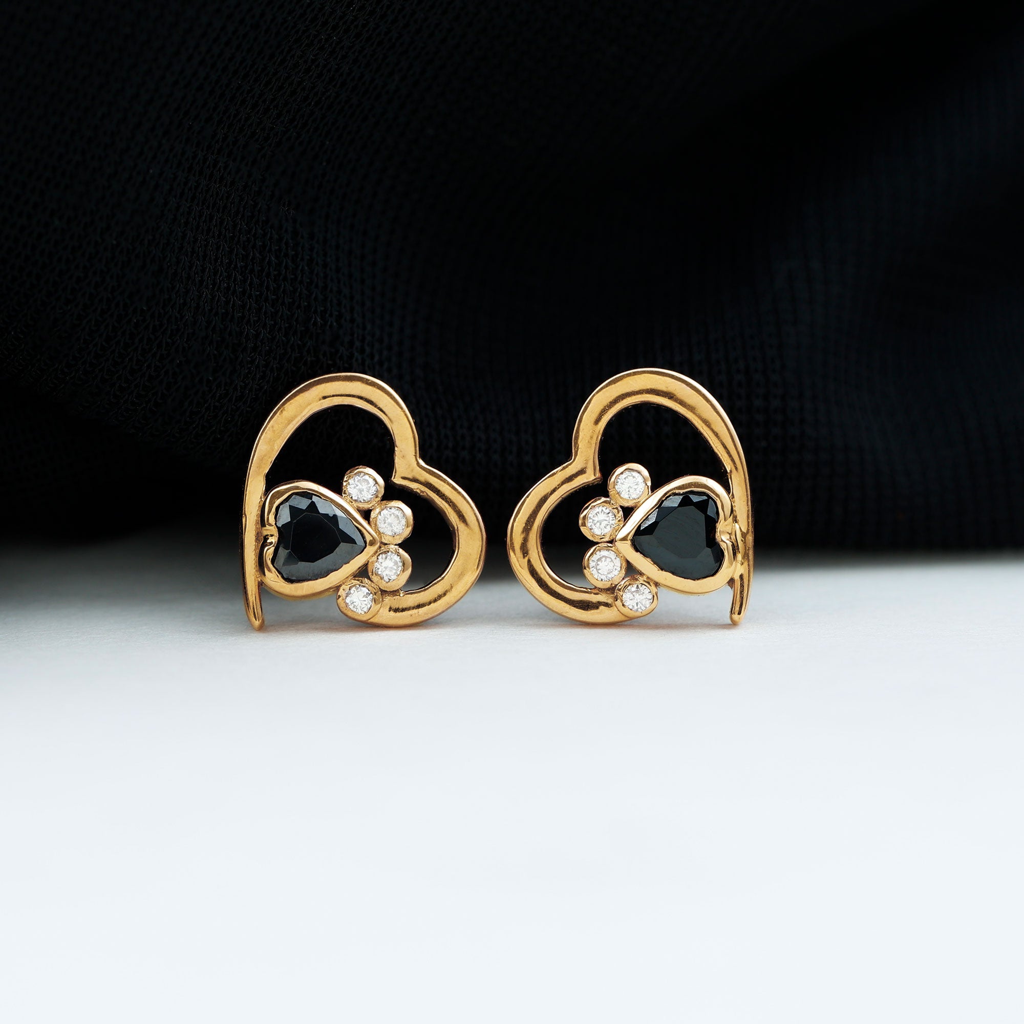 Enhance your love with this Paw Stud Earrings is embellished with Heart Shape Black Spinel and Round Shape Moissanite are set in a Bezel Setting, crafted in Solid Gold.