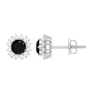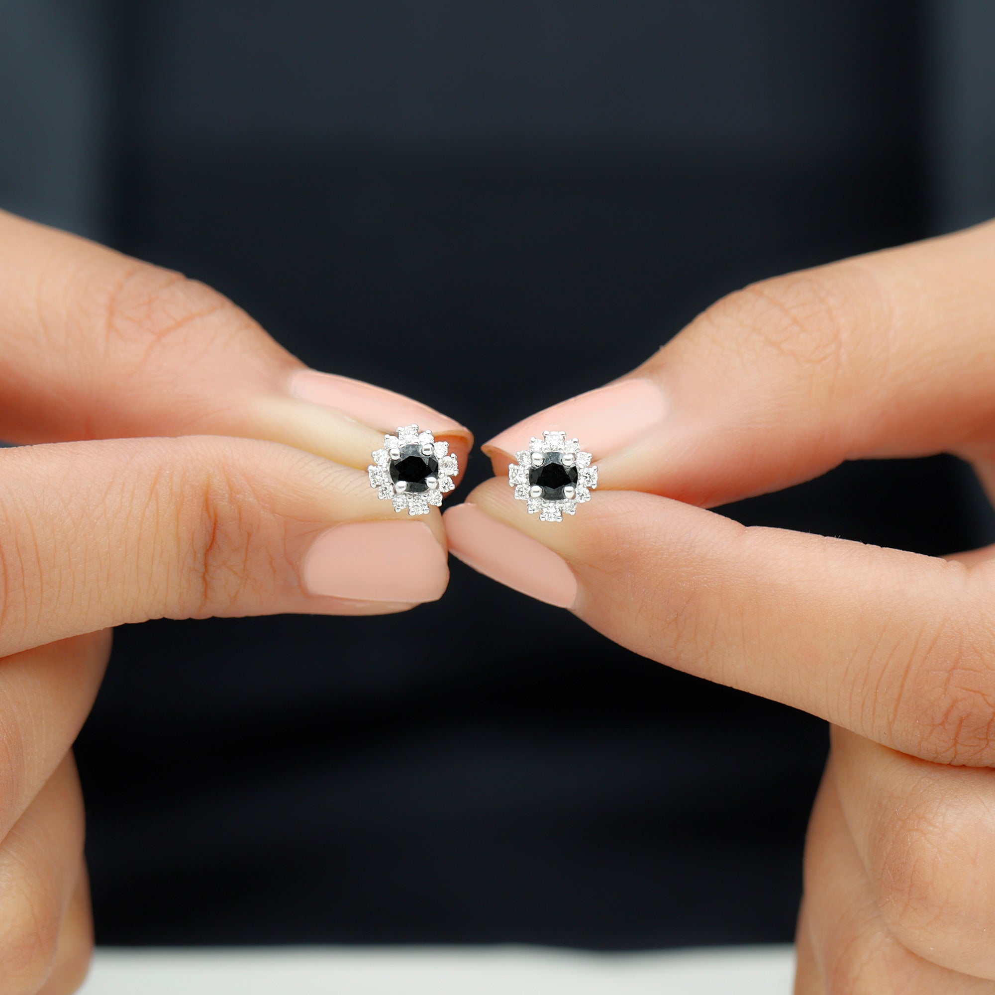 3/4 CT Black Onyx and Diamond Halo Stud Earrings