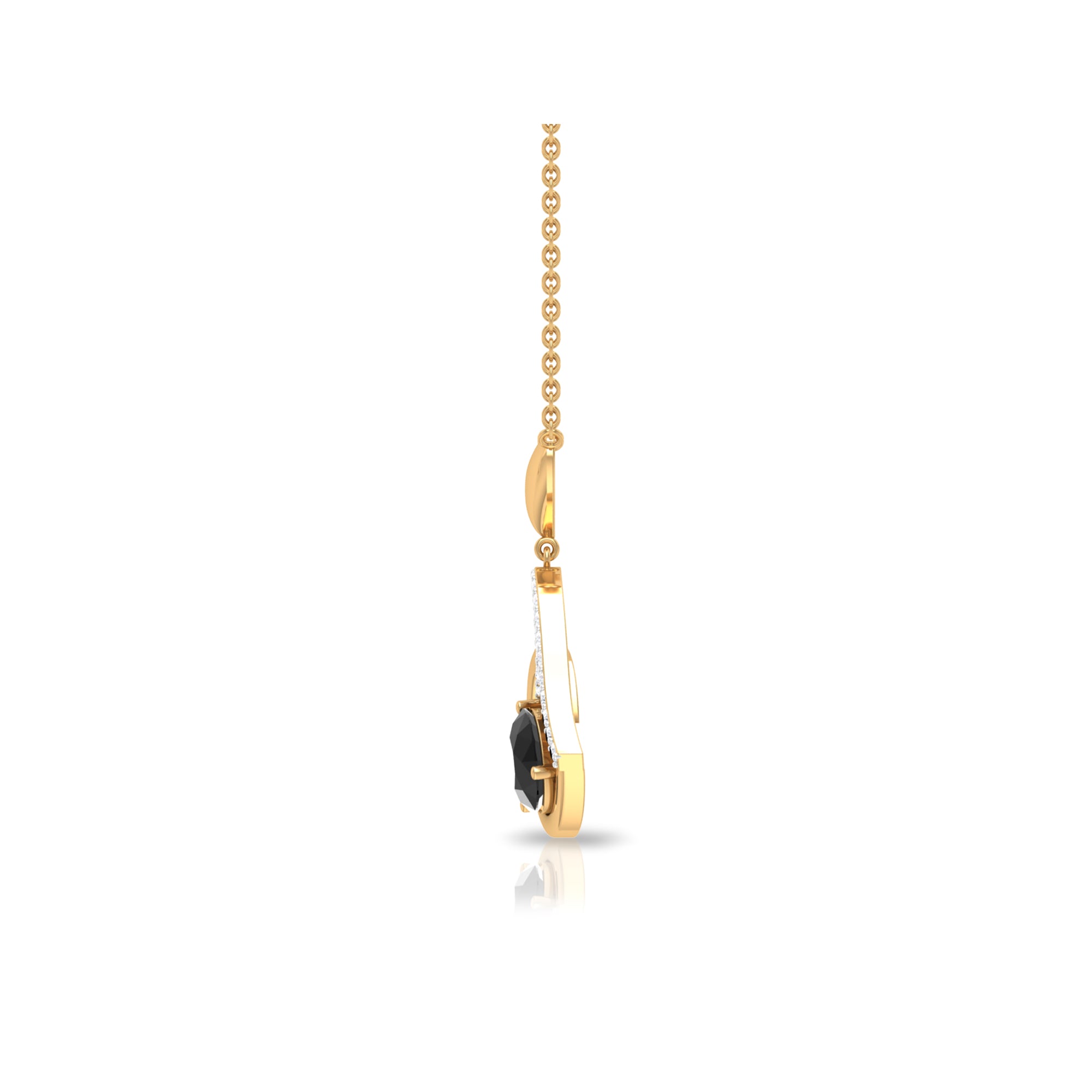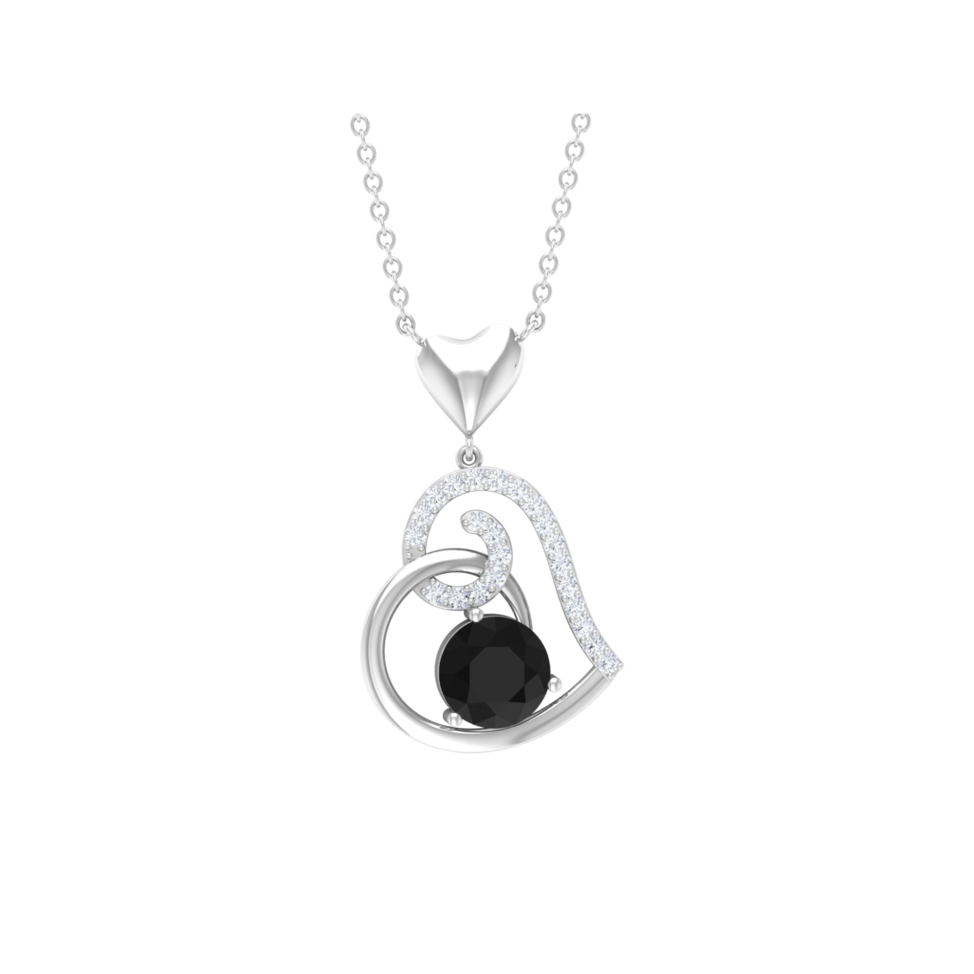 Be Dazzle with these beautiful Heart Drop Pendant embellished with Round Shape Black Onyx as Solitaire in 3 Prong Setting and Round Shape Diamond in Prong Setting, Crafted in Solid Gold.