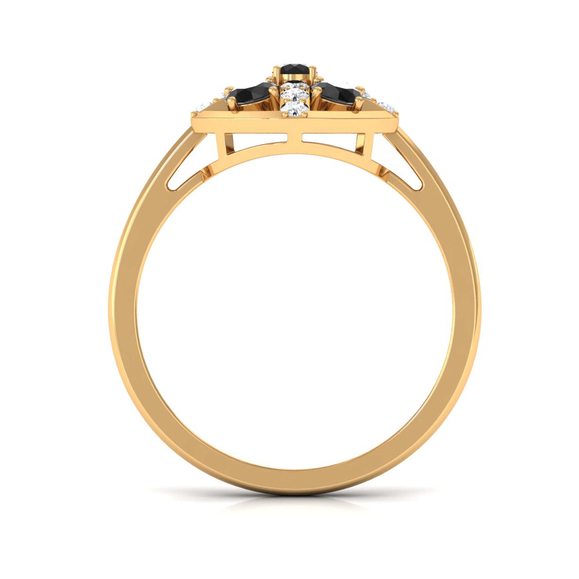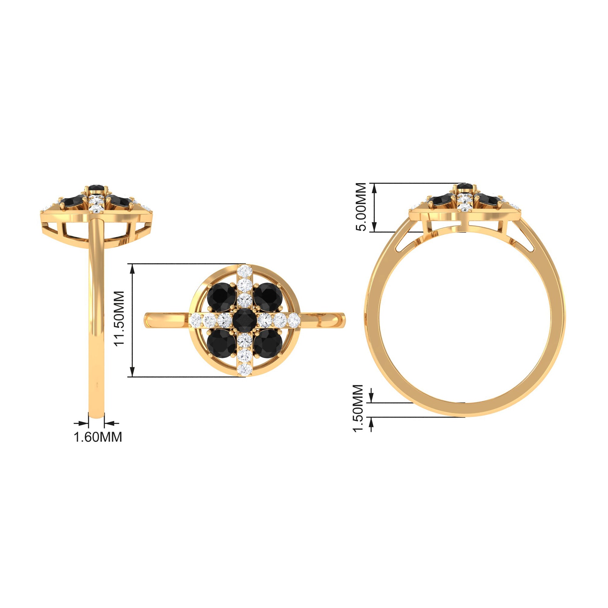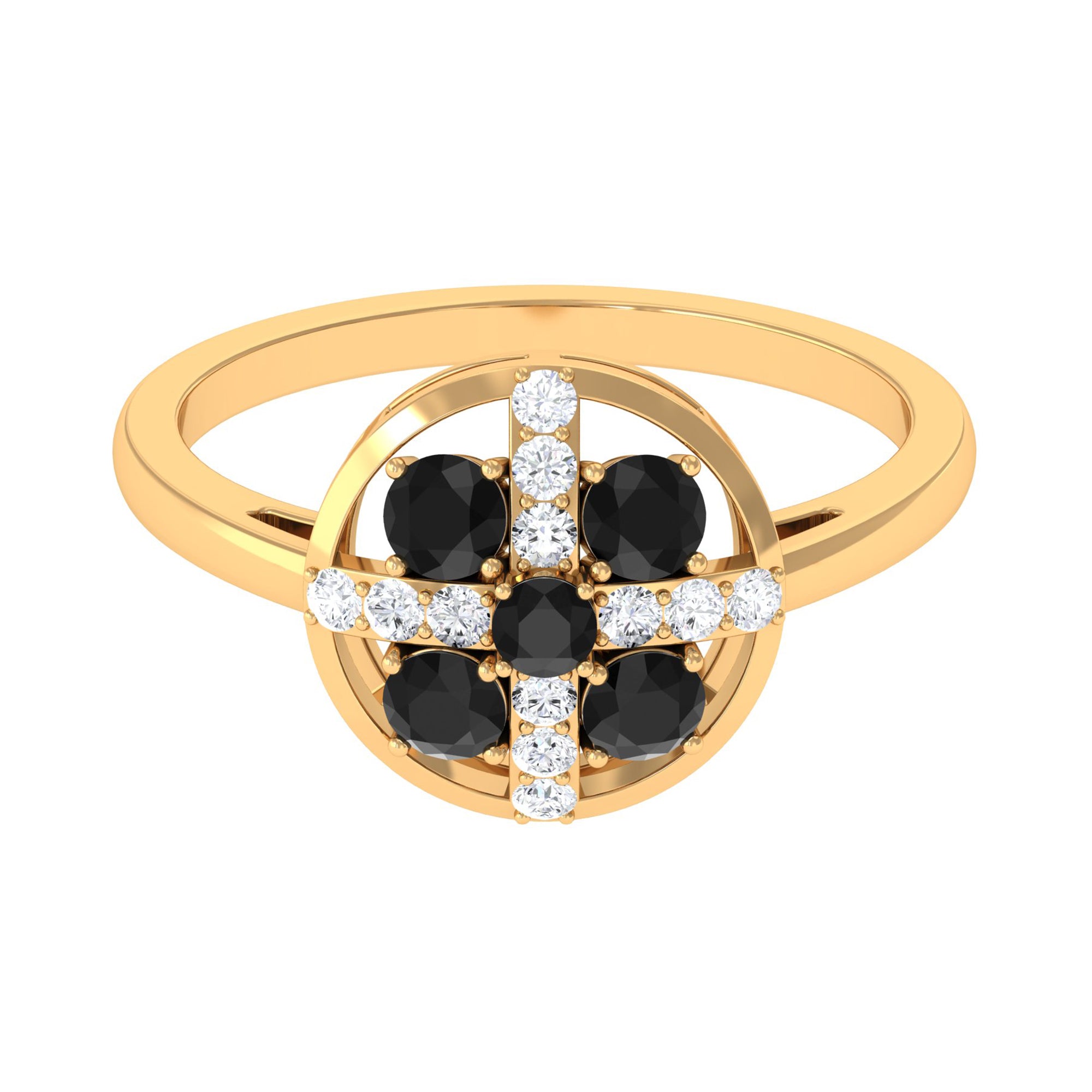 Providing this timeless and elegant ring style with a contemporary twist and adorn with Round Shape black spinel and Diamond.