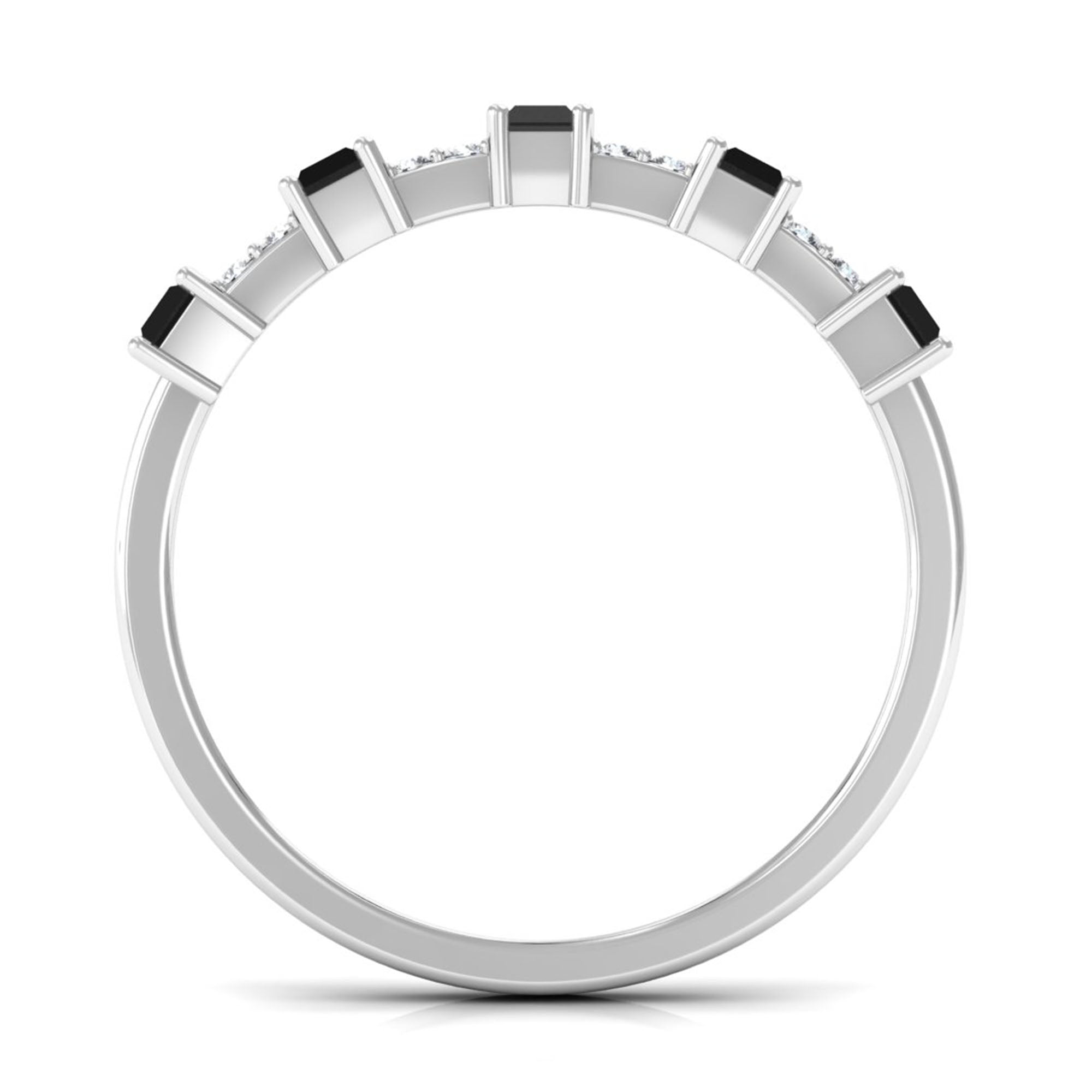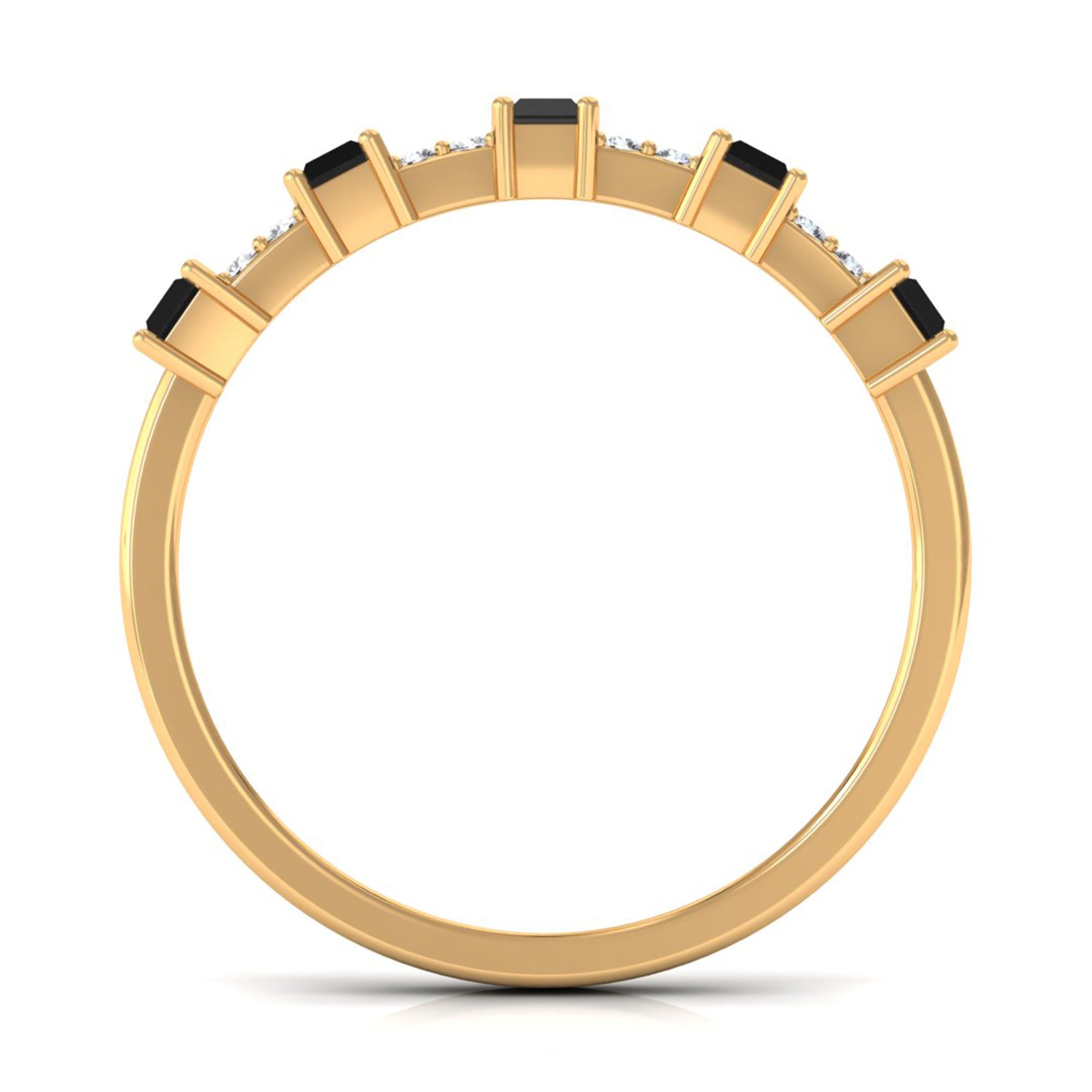 Bless your finger with this lavish and intricate Half Eternity Ring, featuring Baguette Cut Black Spinel and Round Diamond set in pair in alternative patterns to give this an enchanting look. This Wide Band Ring is an impressive choice, if your partner loves sumptuous style.