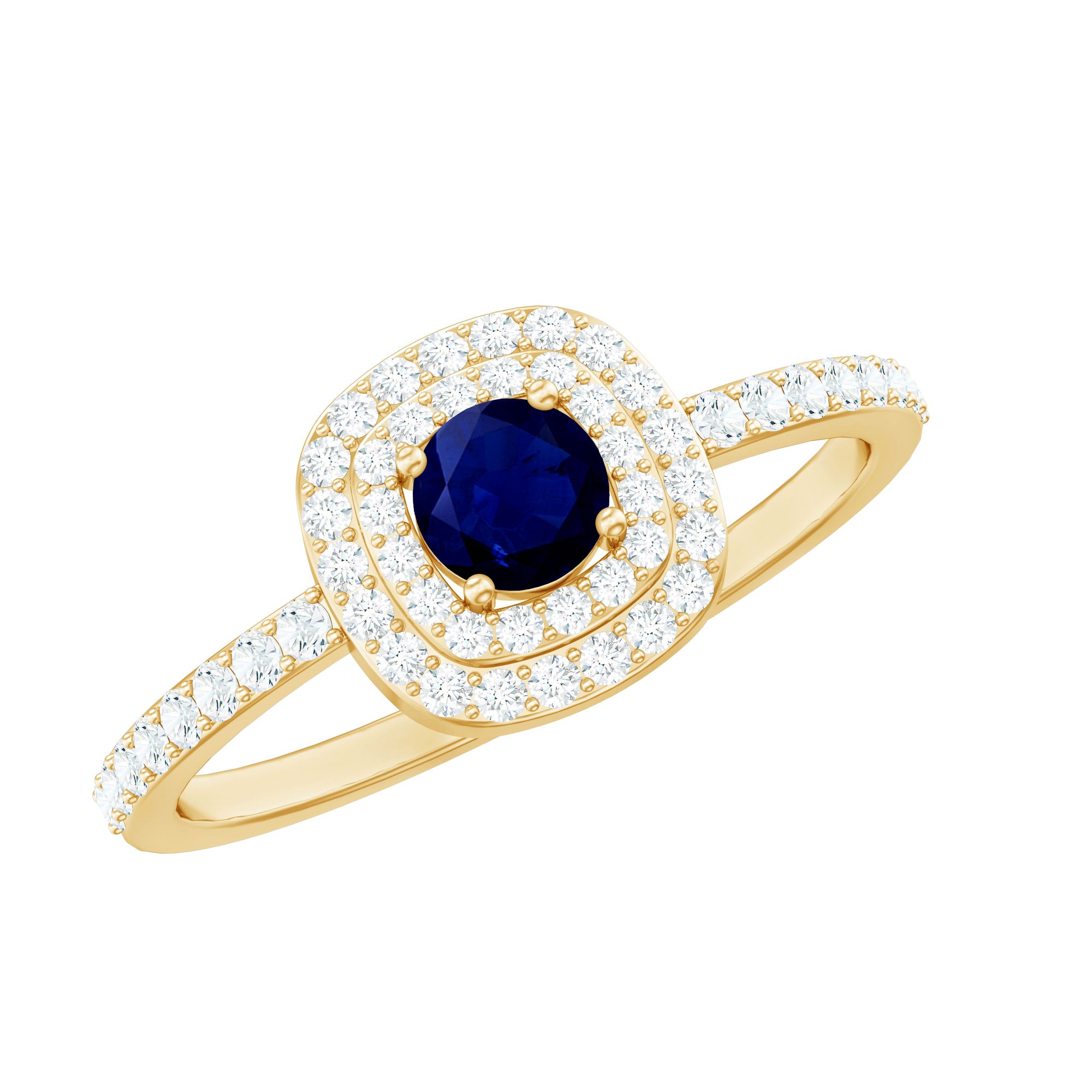 3/4 CT Classic Blue Sapphire Double Halo Engagement Ring with Diamond