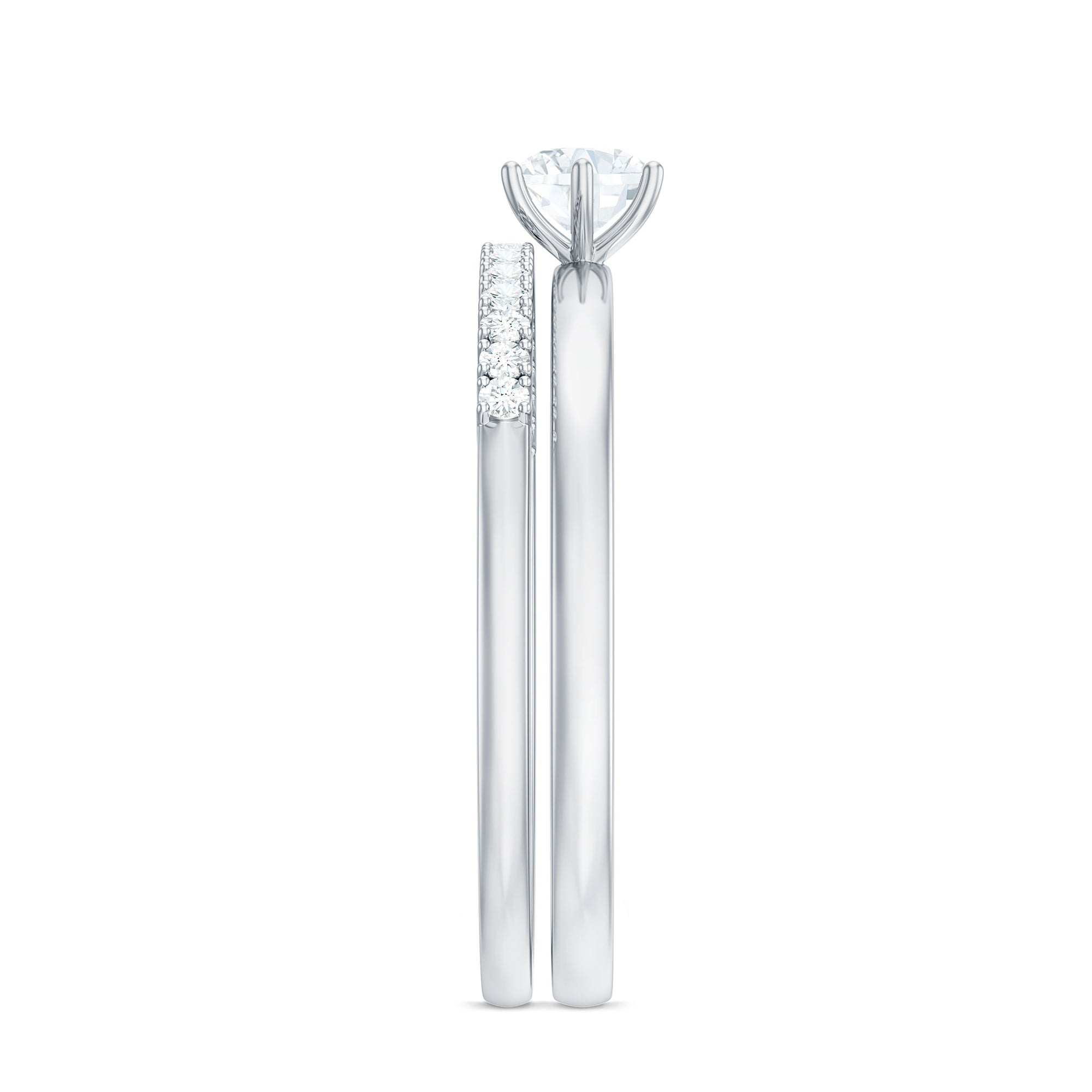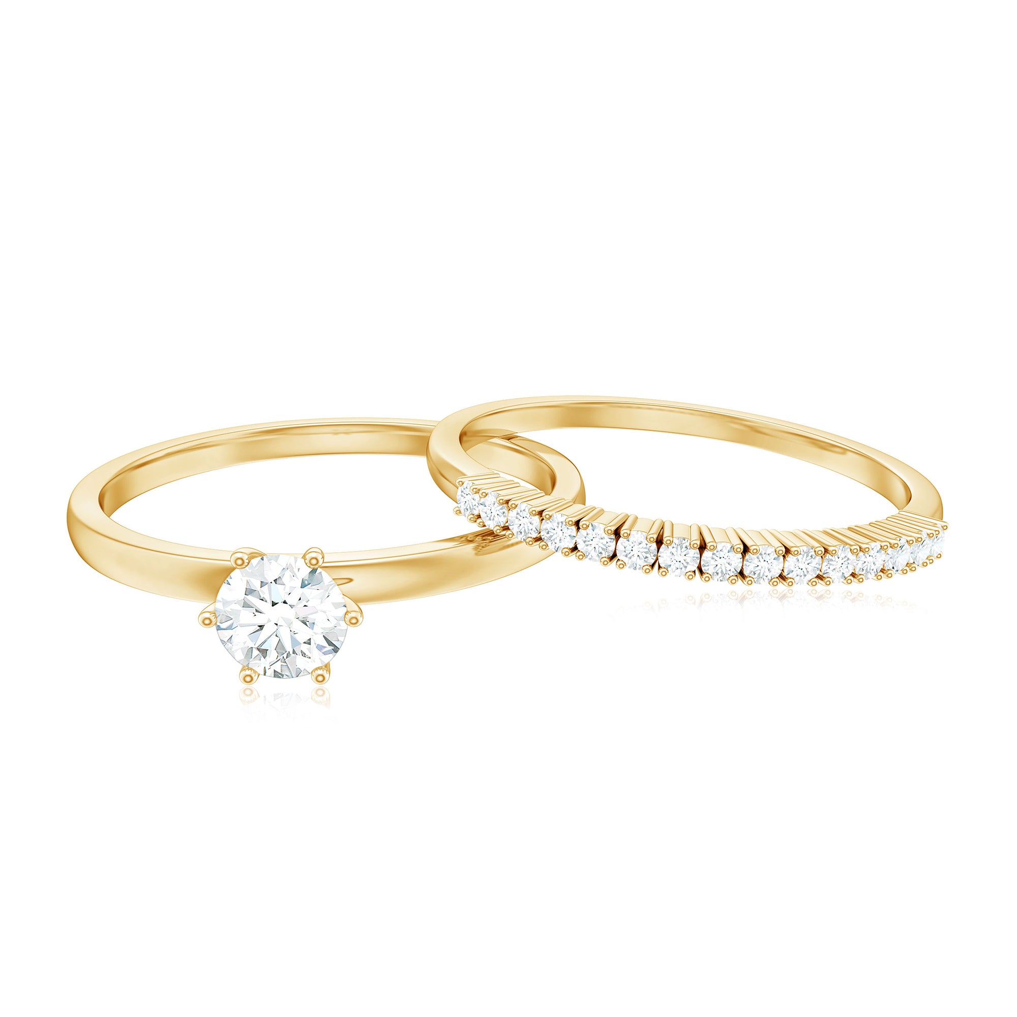 Stacking Bridal Ring Set is crafted in Gold for enchanting appeal, embellished with Zircon Solitaire, held in prong setting on one band and round petite zircon on the other band, makes a perfect wedding ring set. This Zircon Ring Set is an alluring piece of fine jewelry.