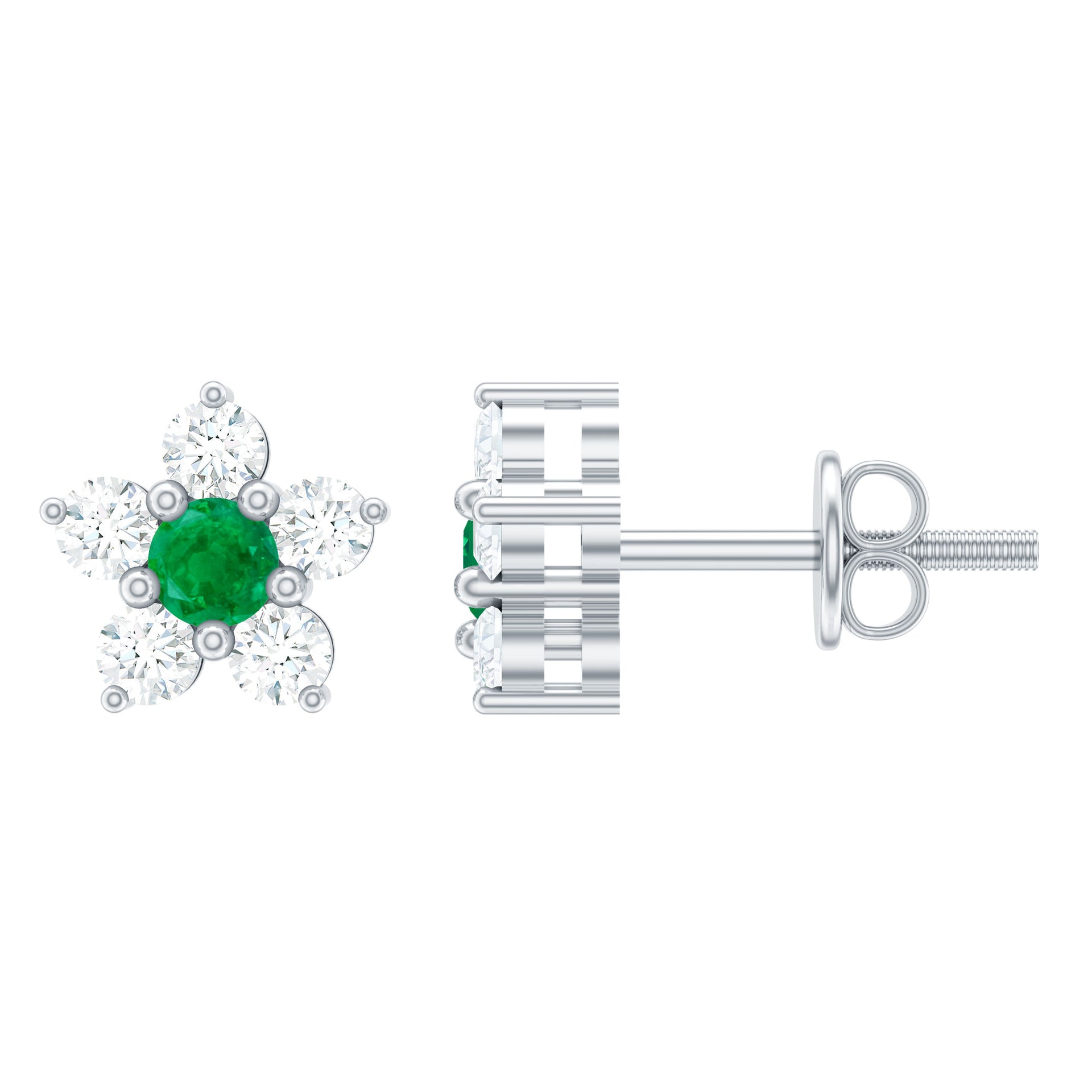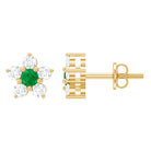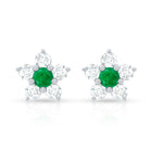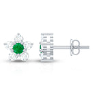 3/4 CT Emerald and Diamond Flower Cluster Stud Earring