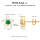 Single Emerald Gemstone is securely covered by brilliant cut 6 round Diamond stones, which Make a Vintage Flower Stud Earring Piece. All stones are set in fine claw setting with 14k gold. Perfect for all special occasion.