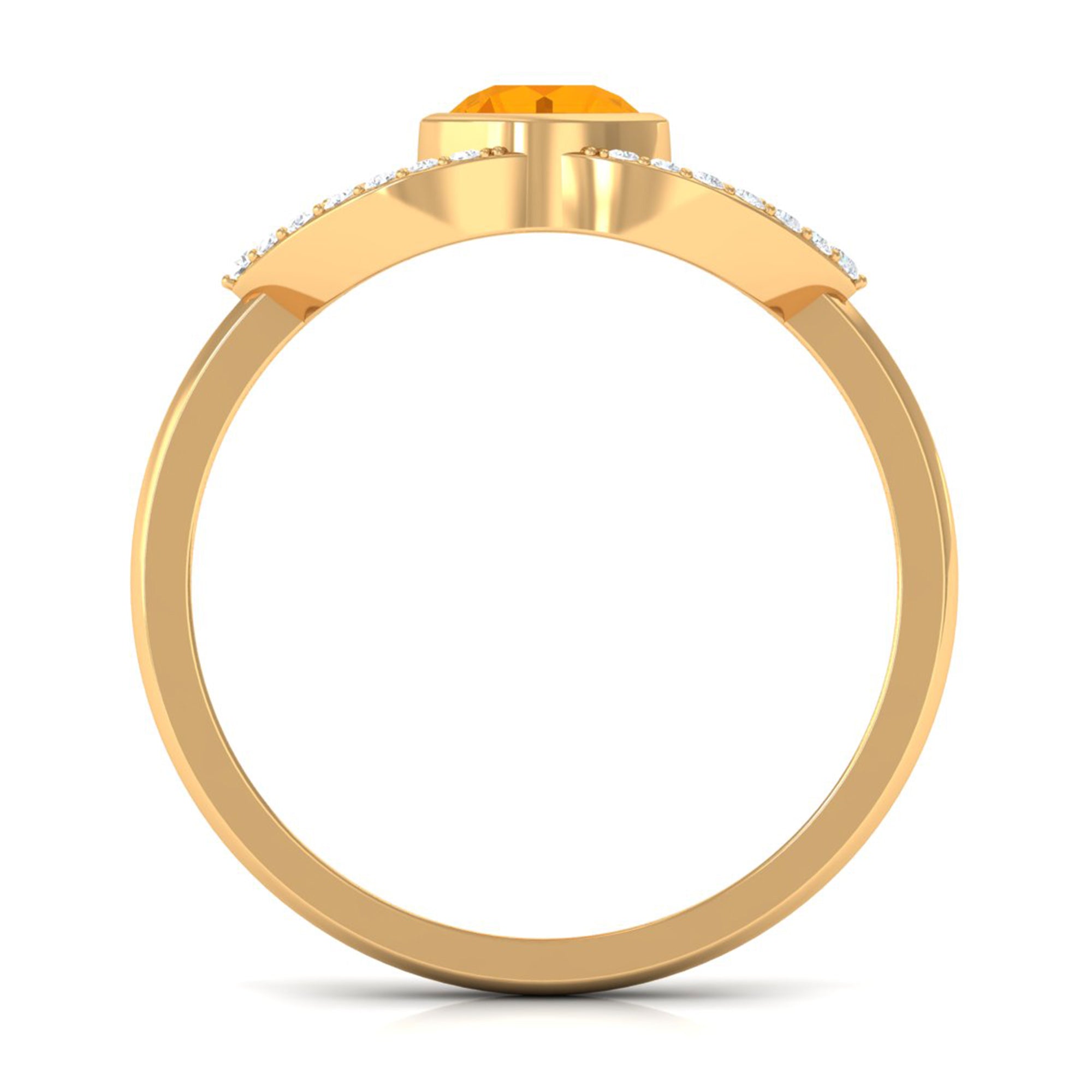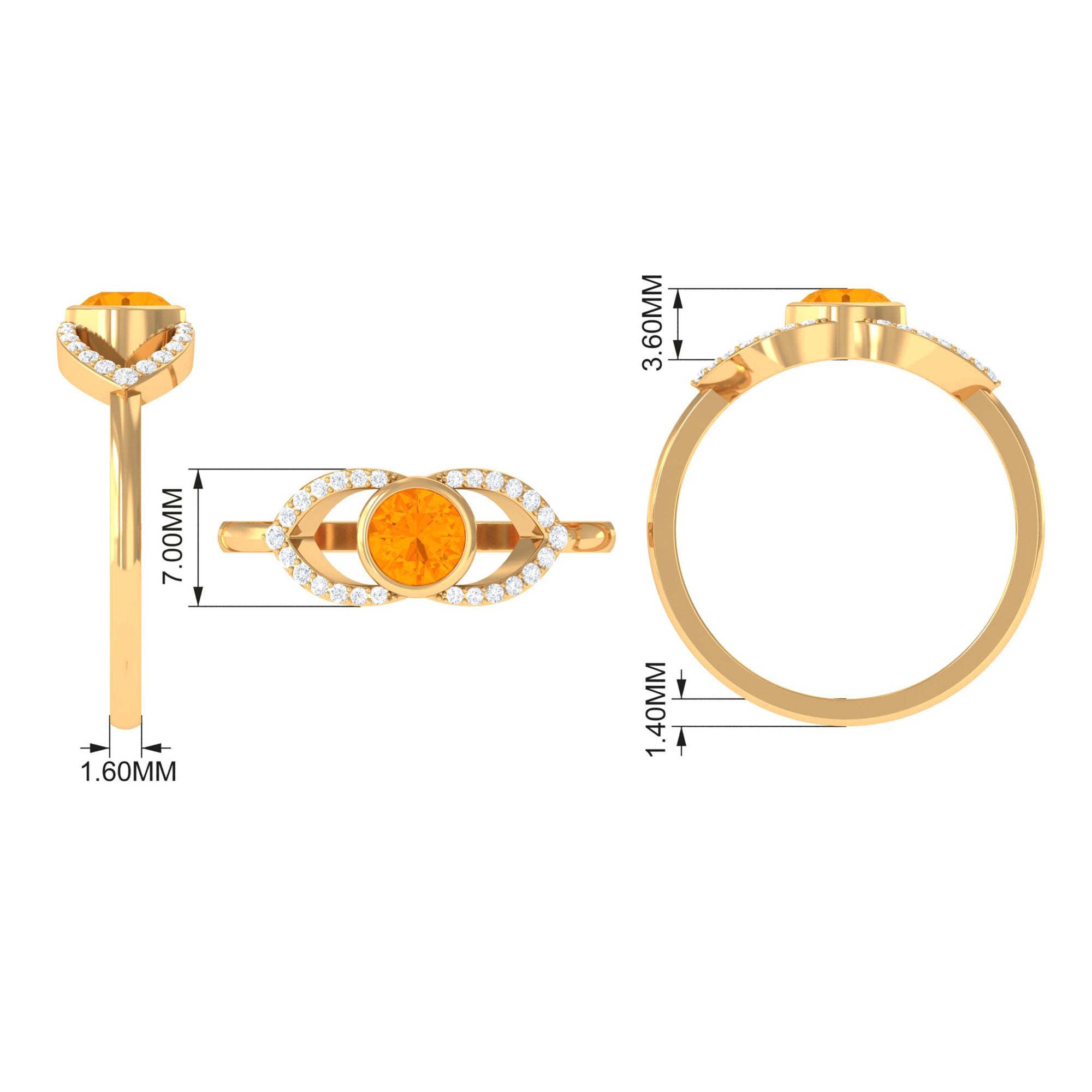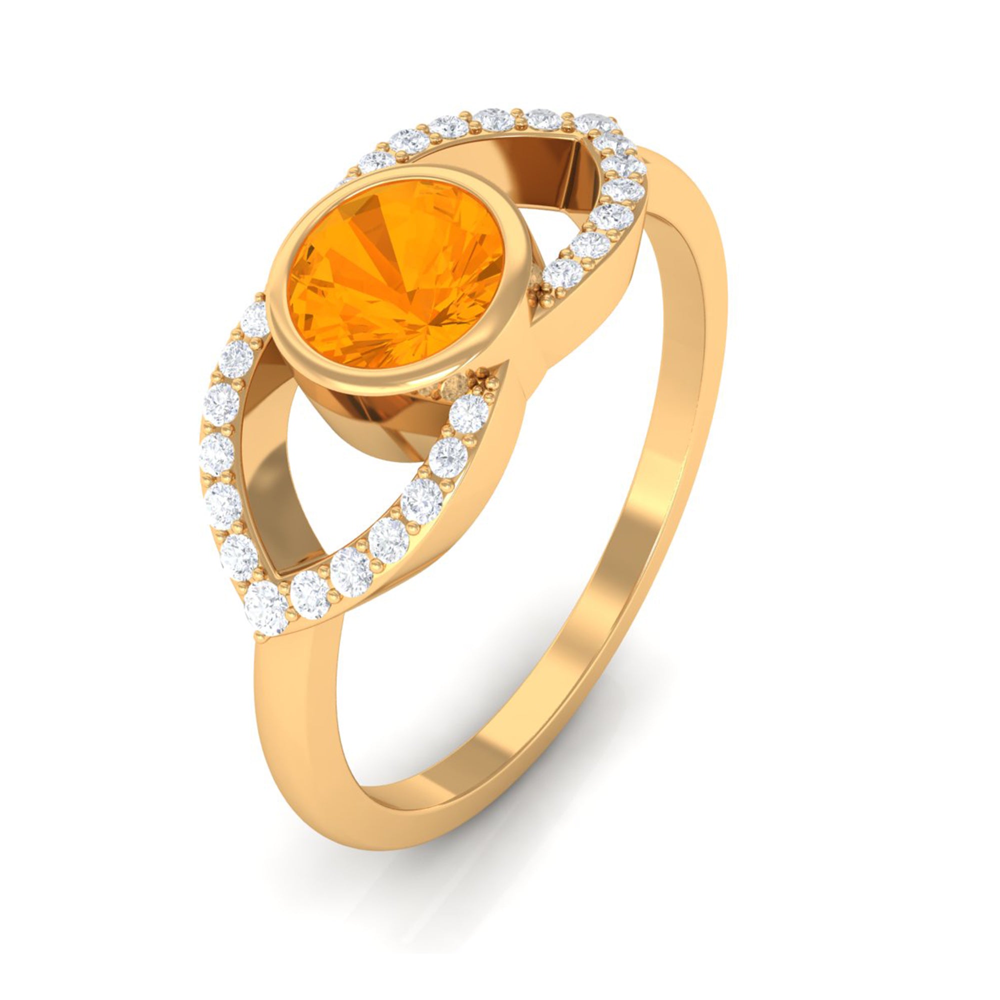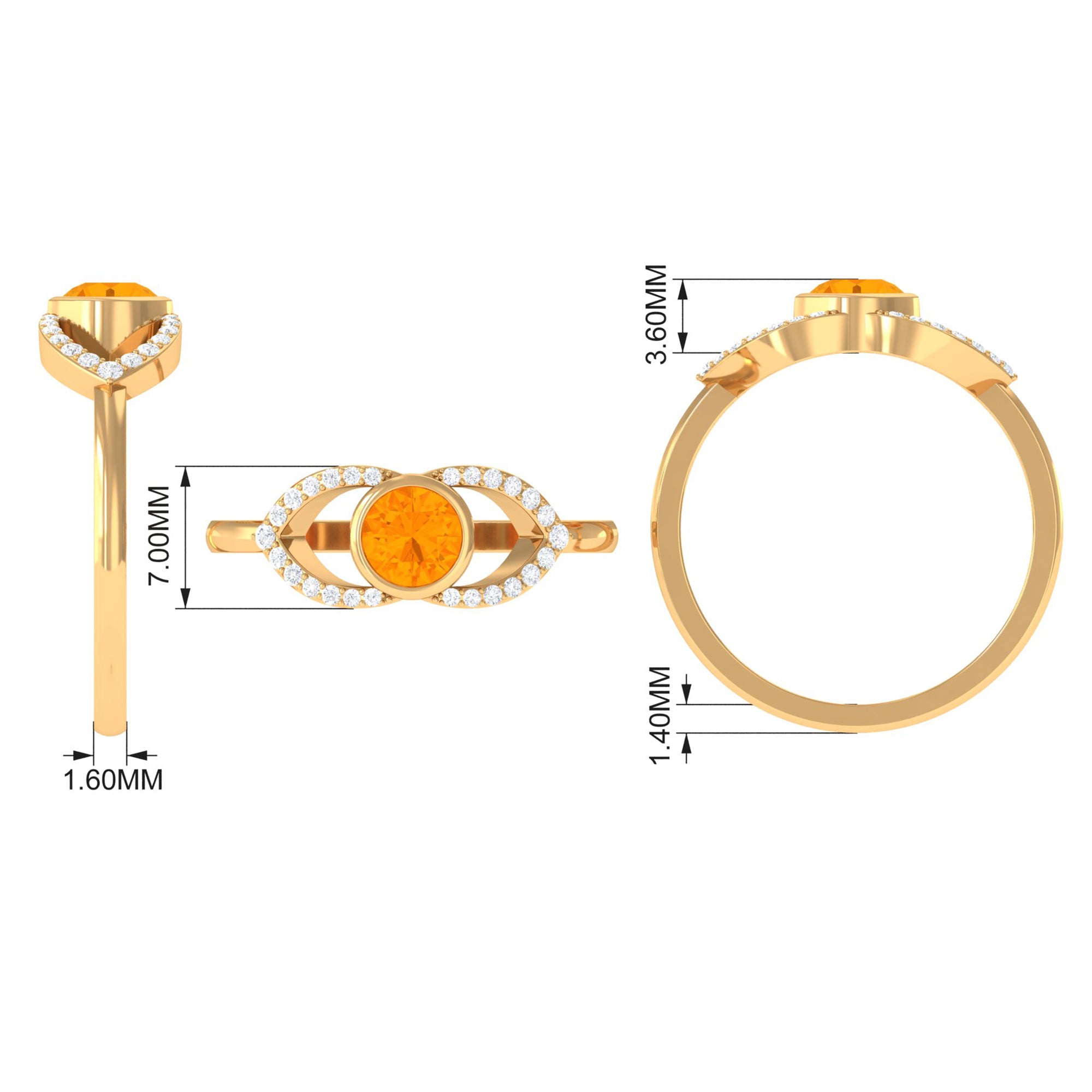 Wear this Split Shank Engagement Ring to make your loved one look stylish. In addition to having a round shape of Fire Opal as a solitaire set in a bezel setting, this engagement ring also consists of a round shape Diamond over a split shank. Gold metal is used to mount this October Birthstone Ring.