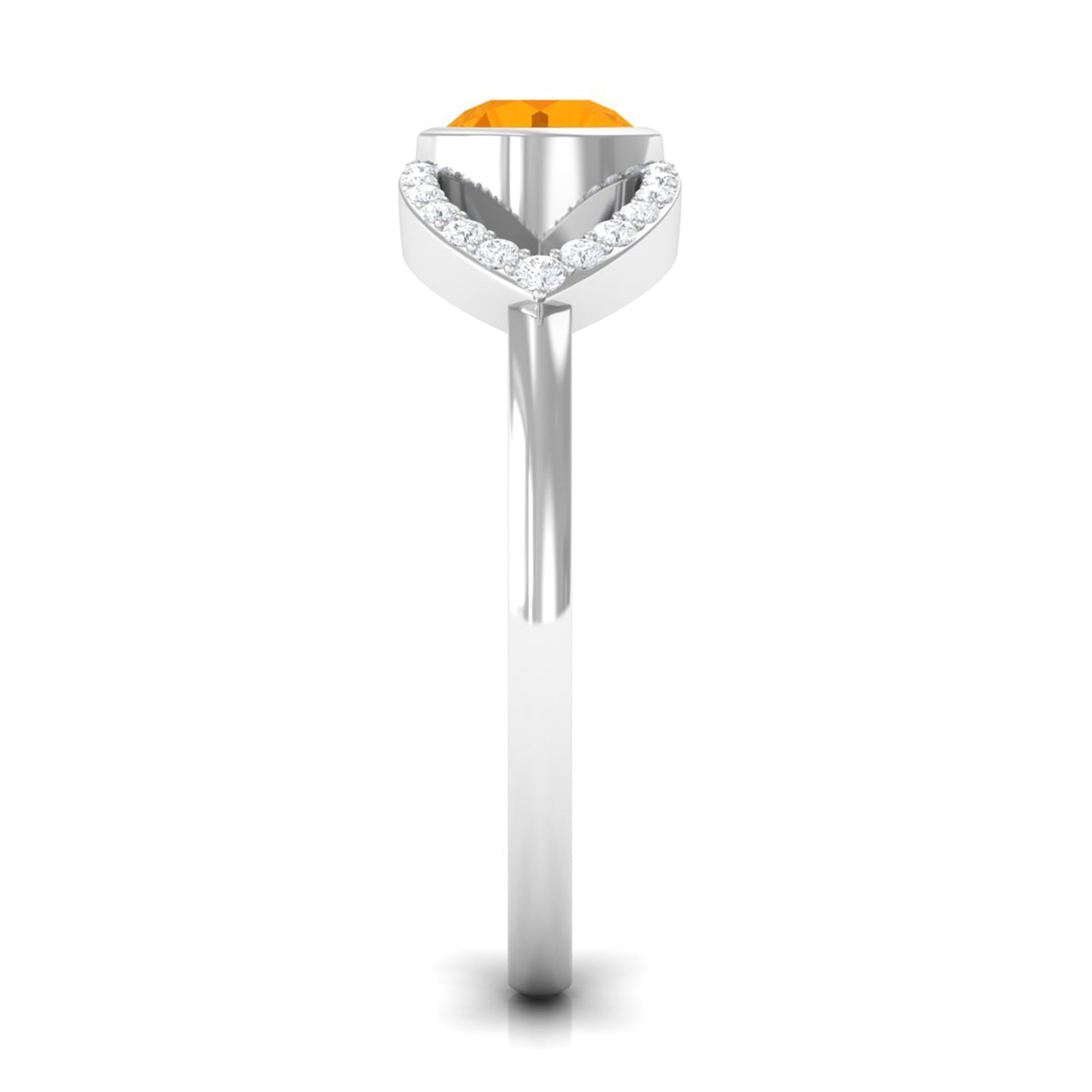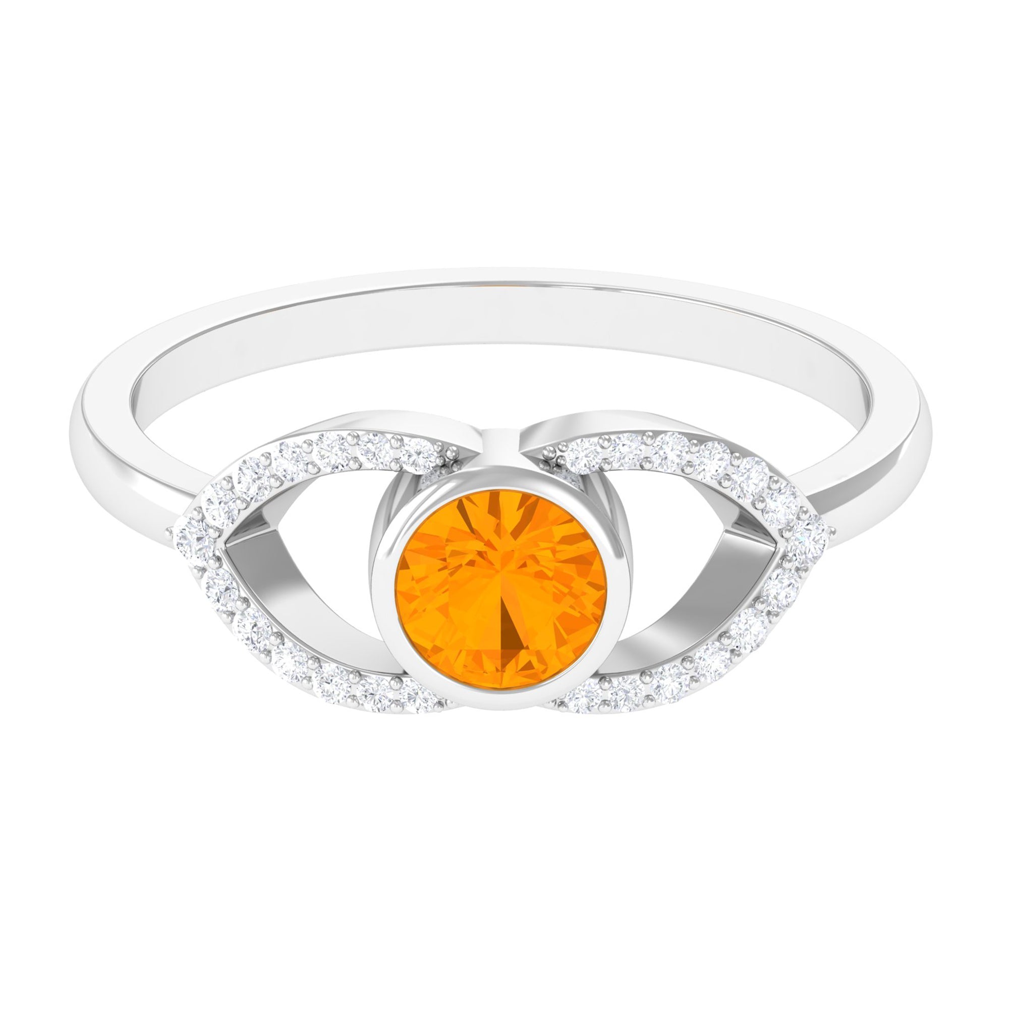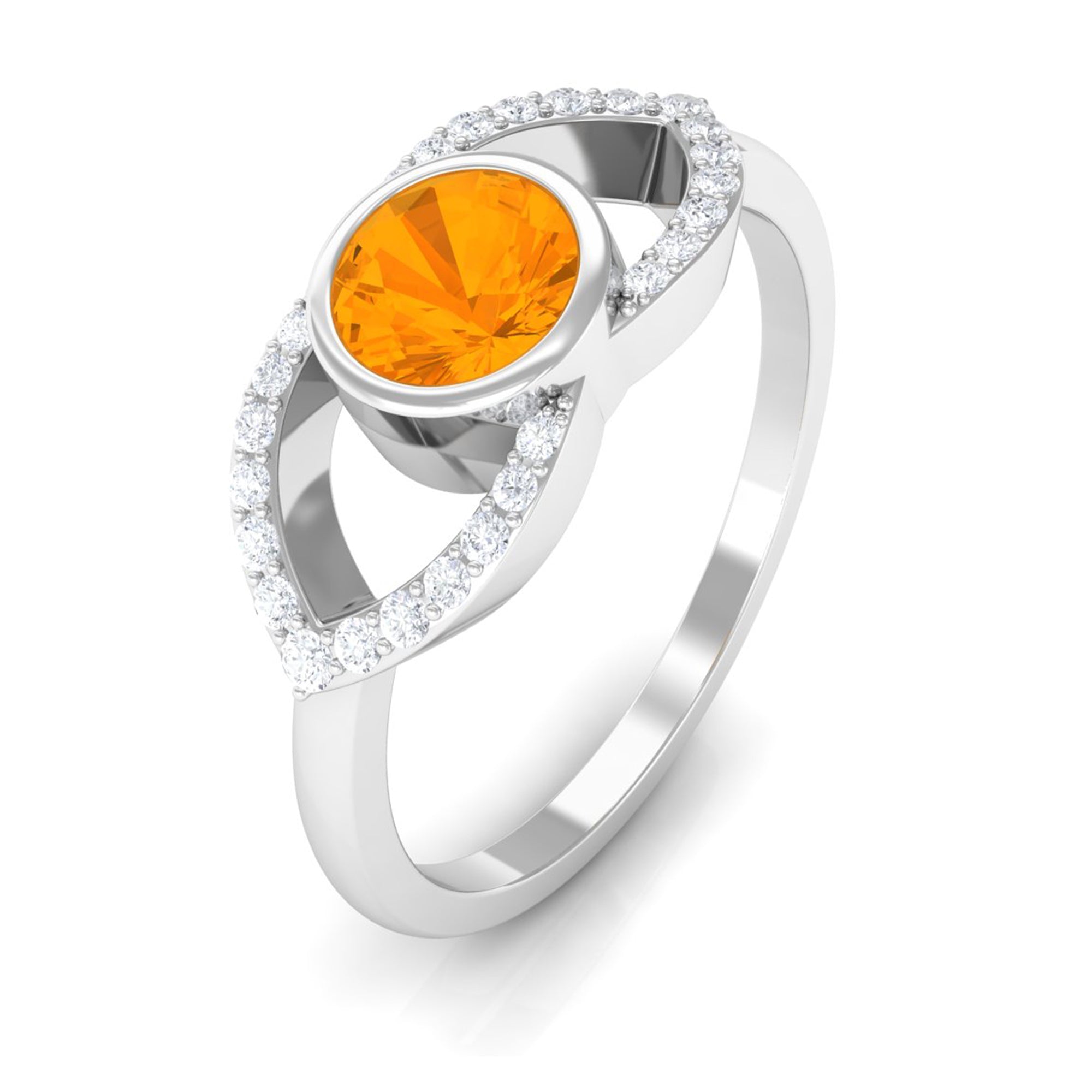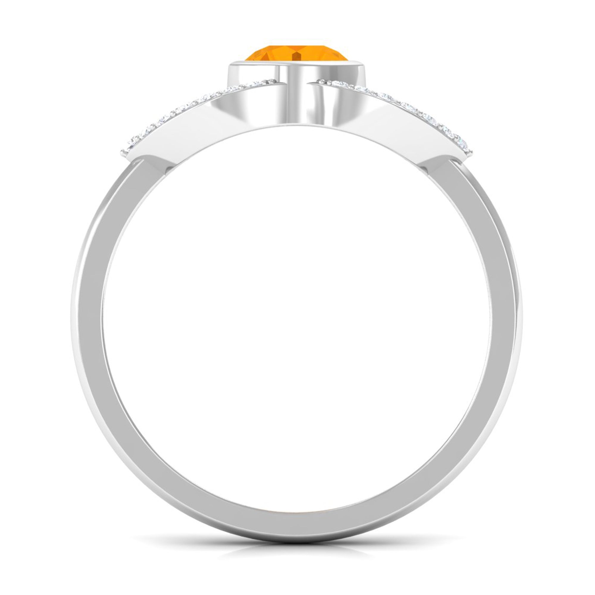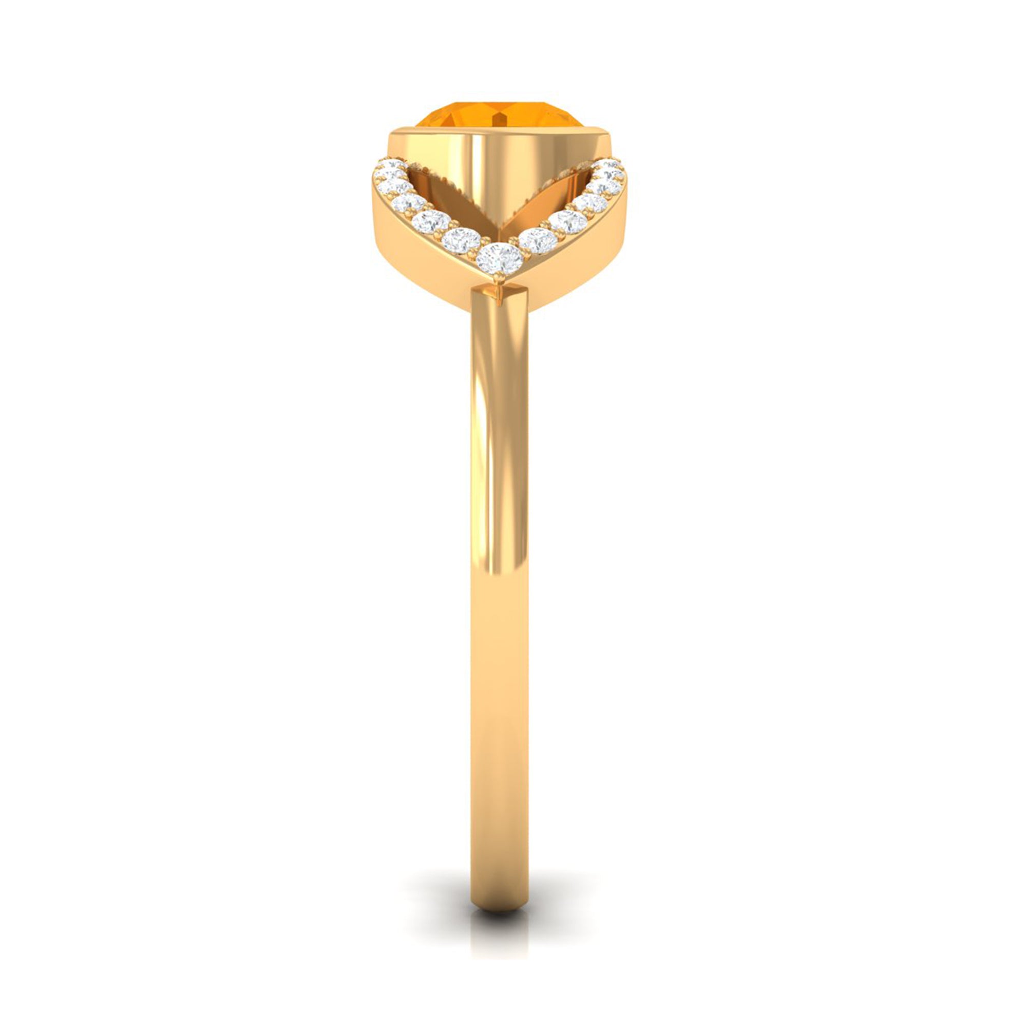 Wear this Split Shank Engagement Ring to make your loved one look stylish. In addition to having a round shape of Fire Opal as a solitaire set in a bezel setting, this engagement ring also consists of a round shape Diamond over a split shank. Gold metal is used to mount this October Birthstone Ring.