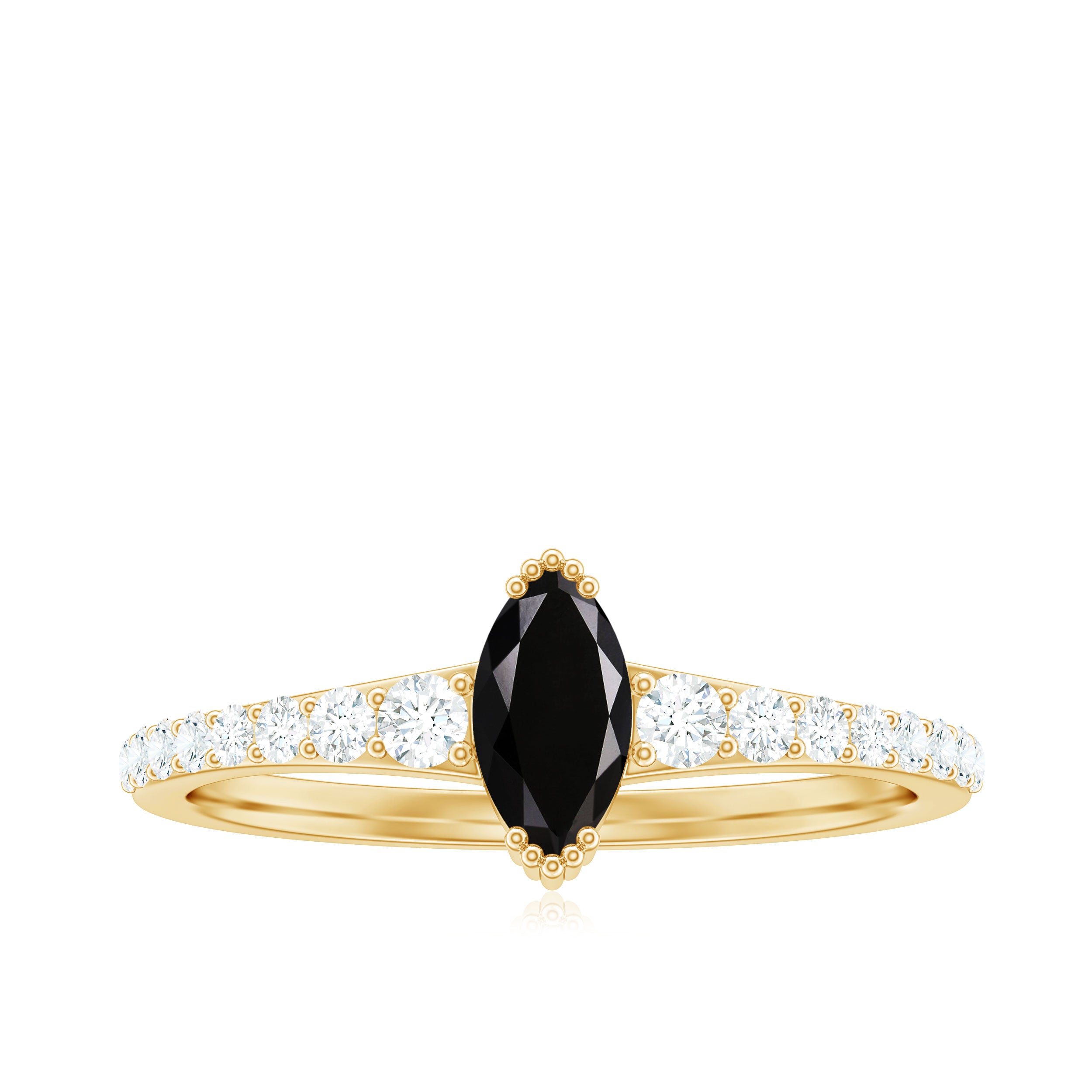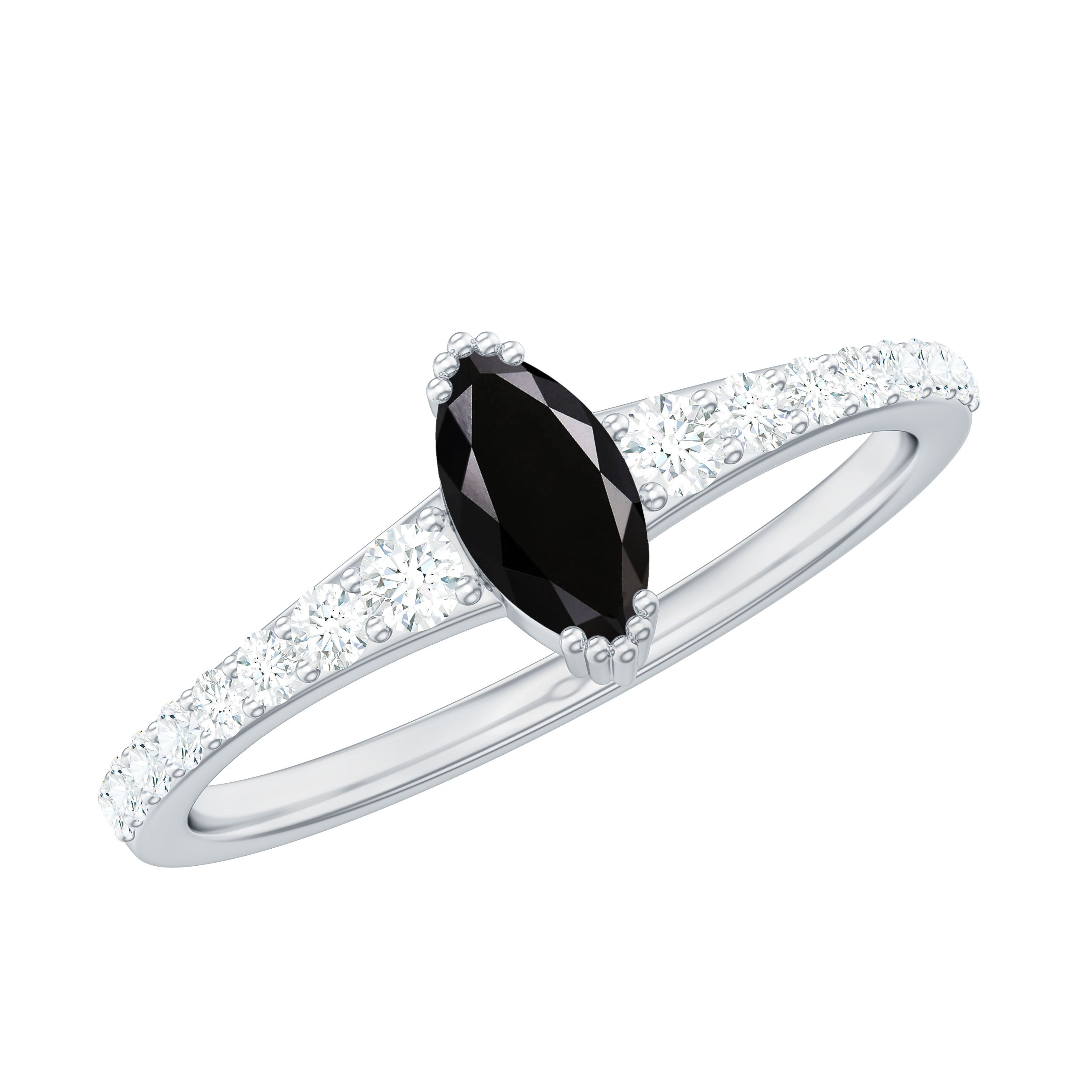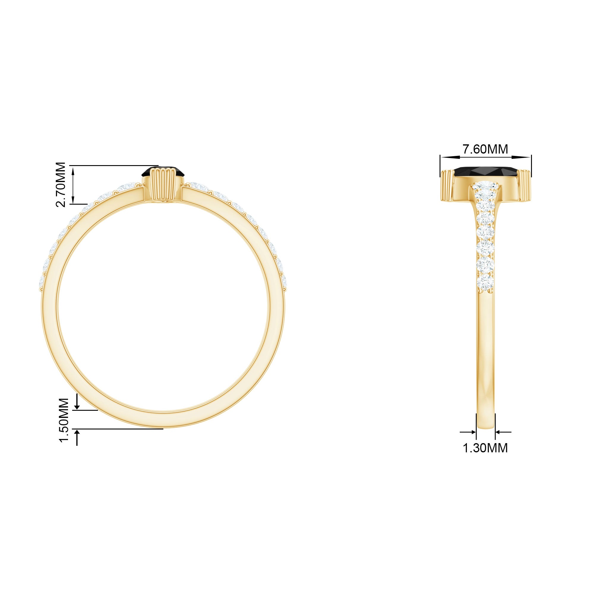 A striking symbol of your everlasting love, this gorgeous Minimal Promise Ring features a lovely center marquise shape Black Spinel and Round Shape Diamond set as side stones.