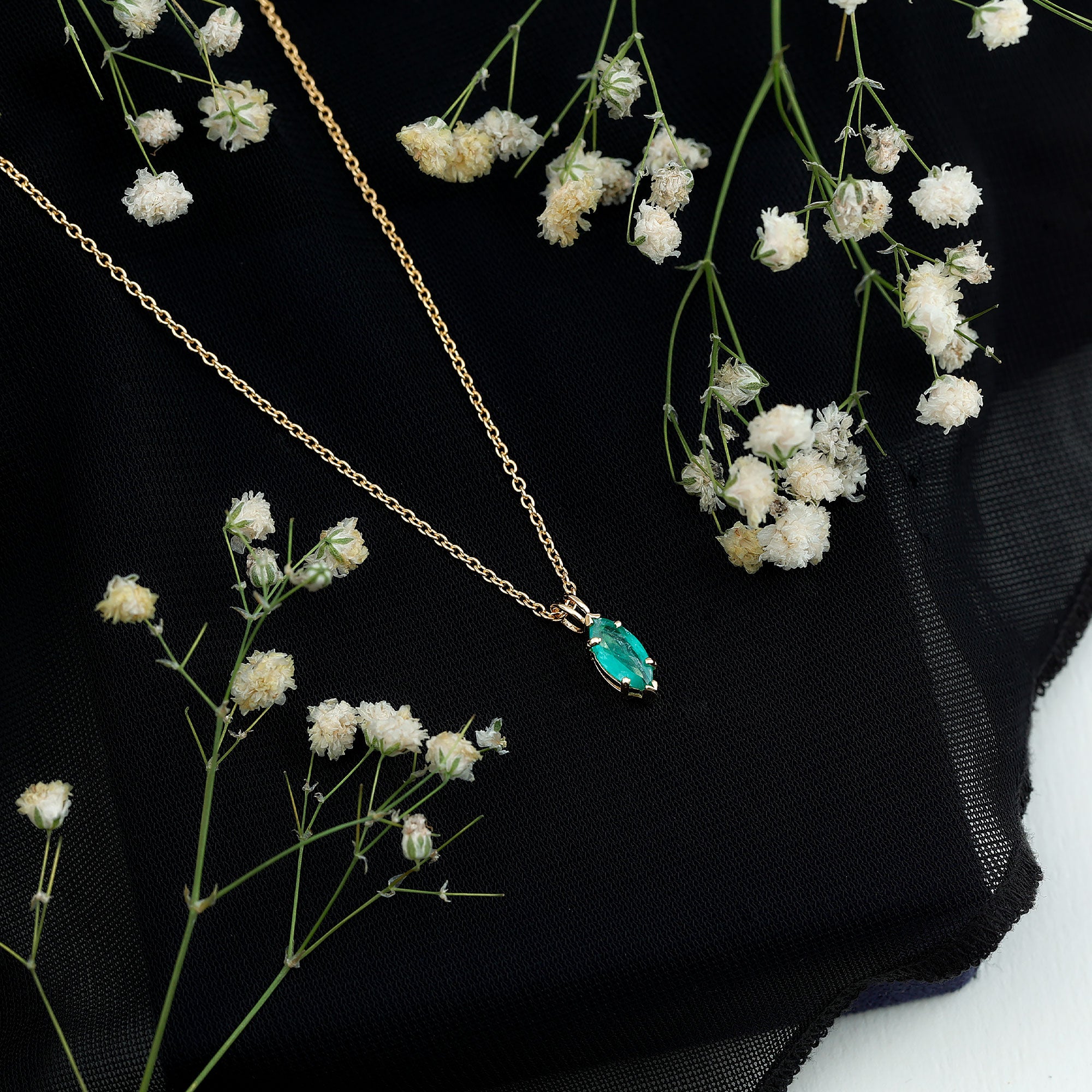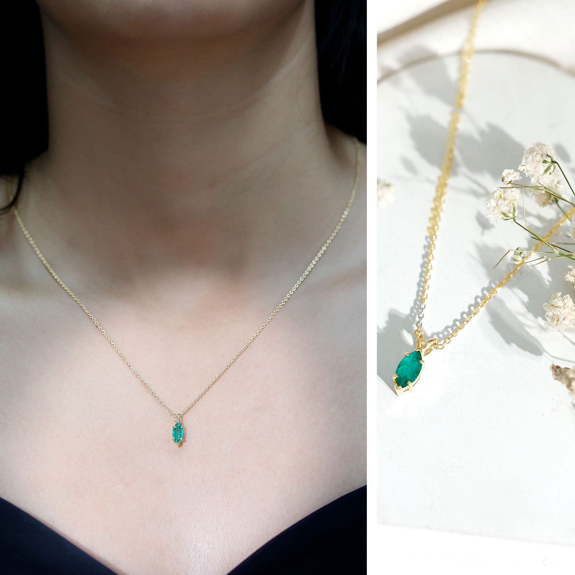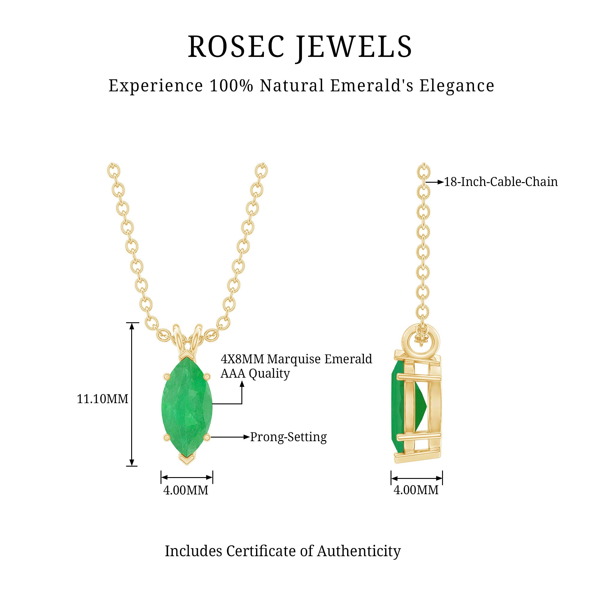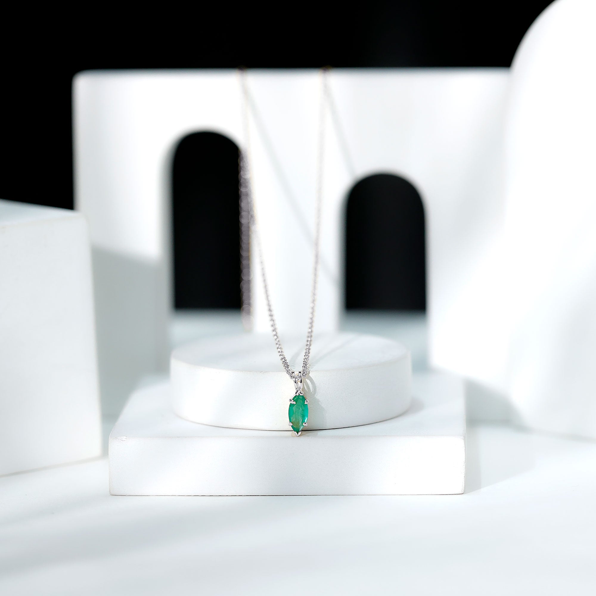 3/4 CT Marquise Cut Emerald Solitaire Drop Pendant Necklace