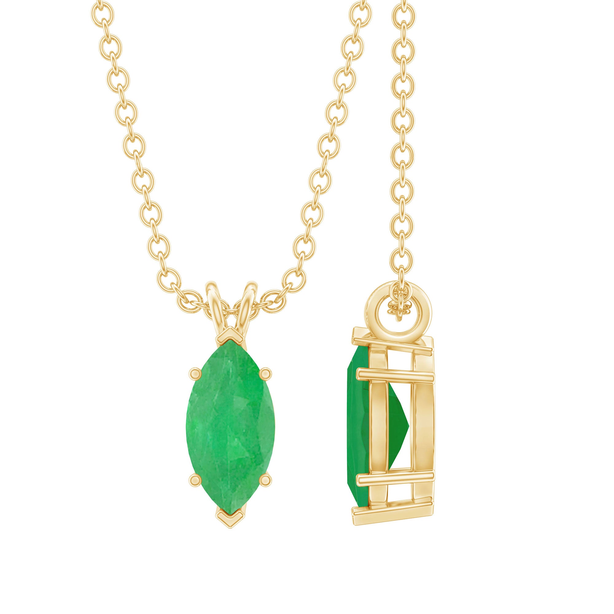 Adorn yourself with these Solitaire Drop Pendant is embellished with Marquise Cut Emerald set as Solitaire, This Gold Pendant is Composed of Solid Gold, which enhances your look without any effort.