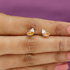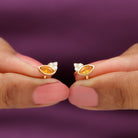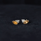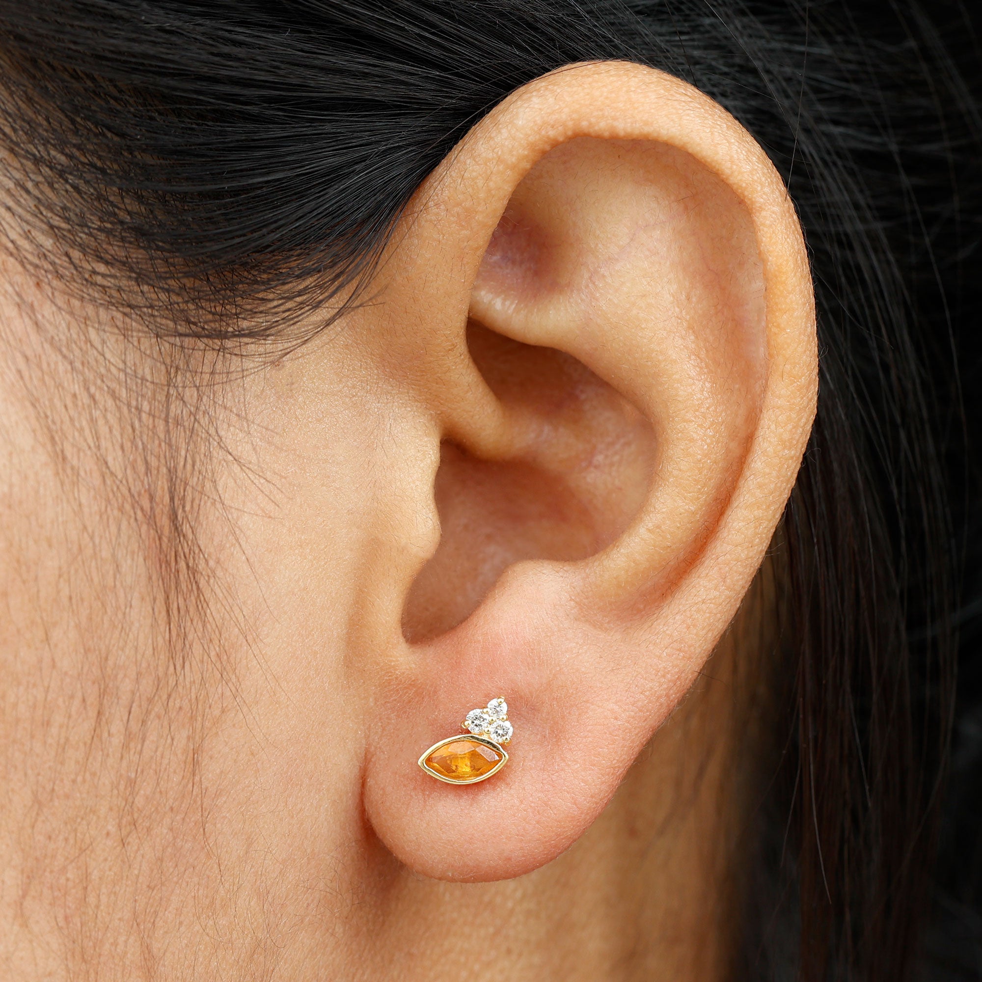 This Dainty Trio Studs embellished with Marquise Cut Fire Opal Gemstone is set in a Bezel Setting with Round Shape Diamond Trio.