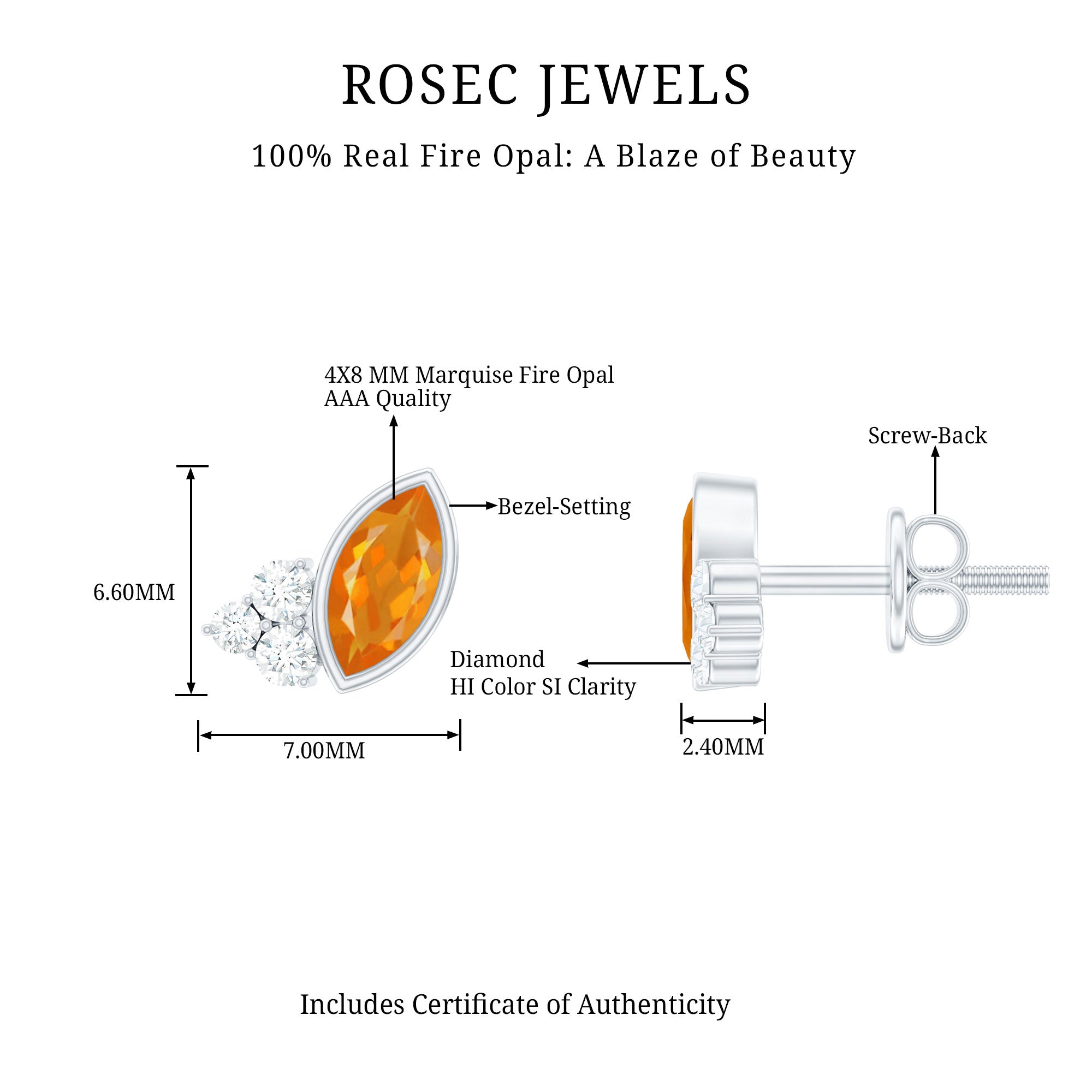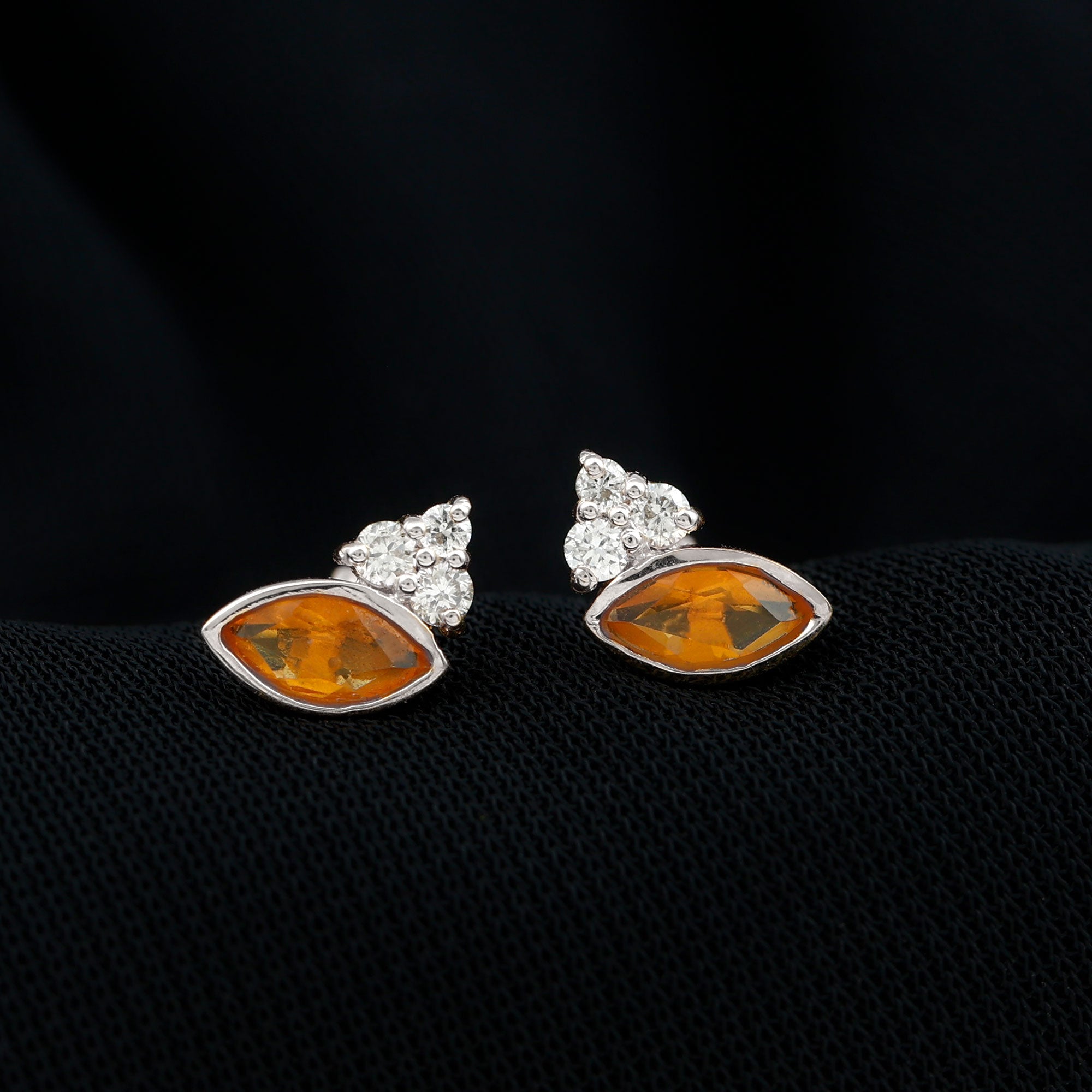 3/4 CT Marquise Cut Fire Opal Stud Earrings with Diamond Trio