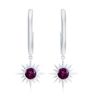 3/4 CT Milgrain Bezel Set Rhodolite Sunburst Drop Hoop Earrings