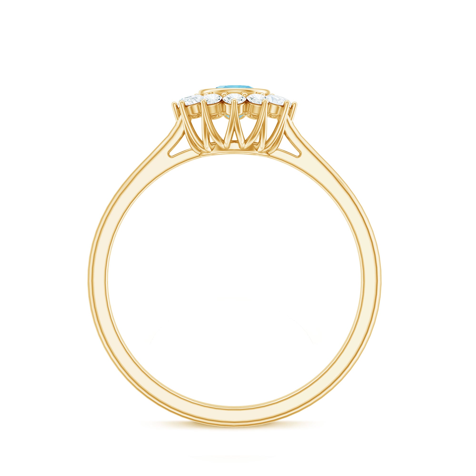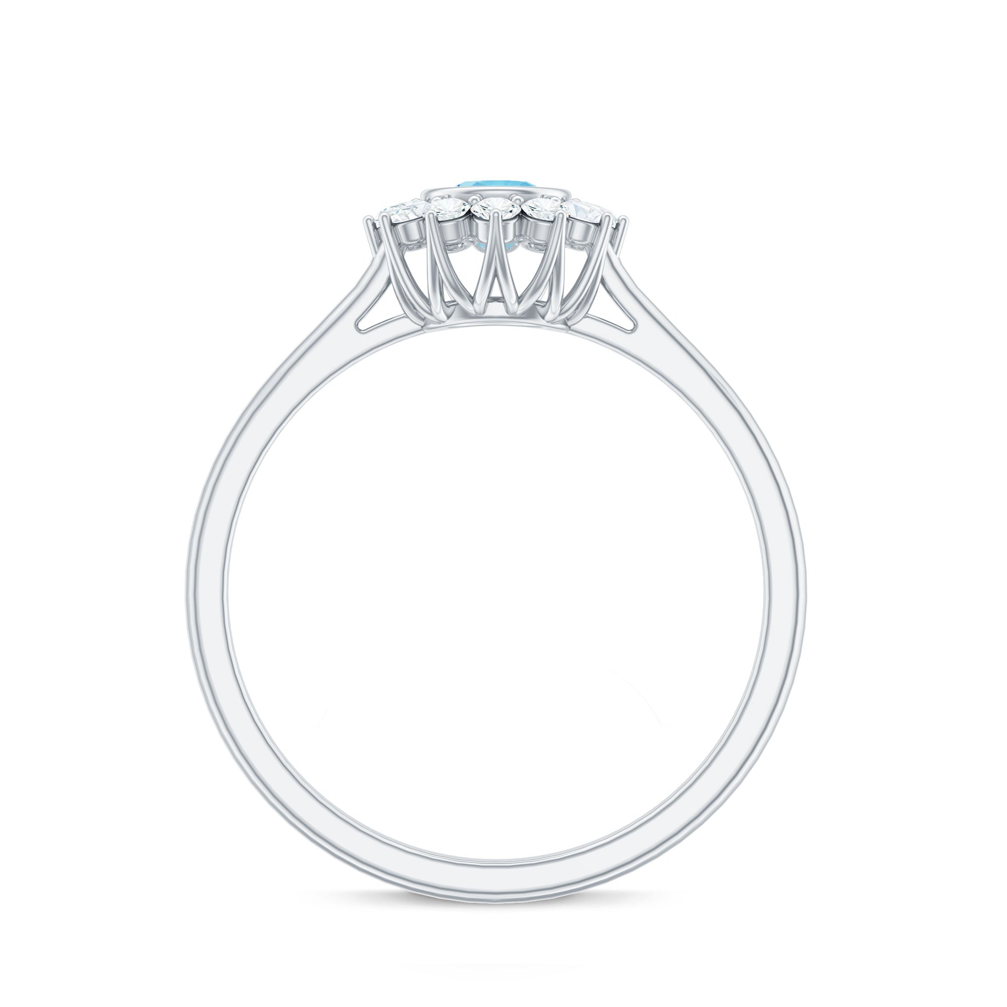 3/4 CT Minimal Aquamarine and Diamond Halo Promise Ring