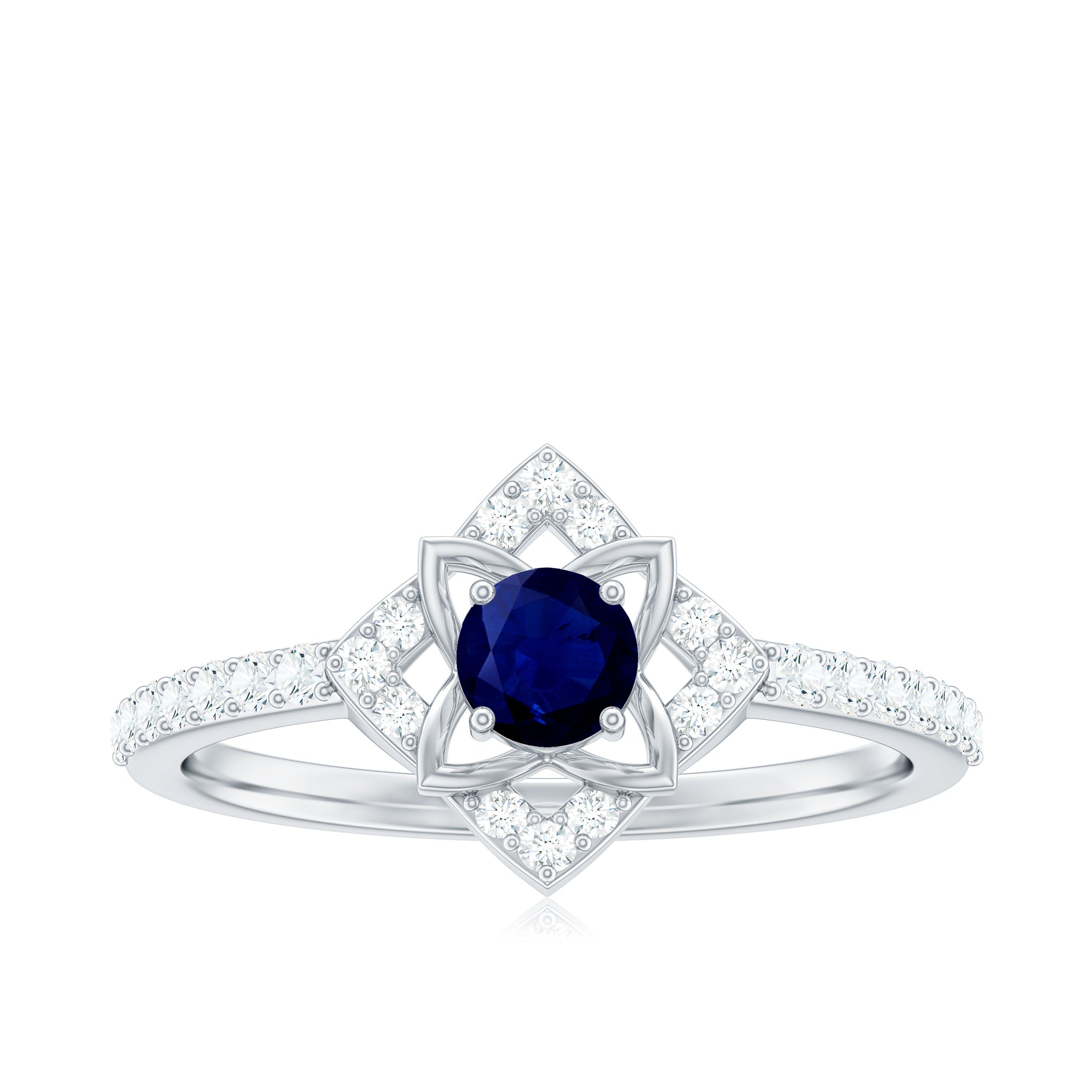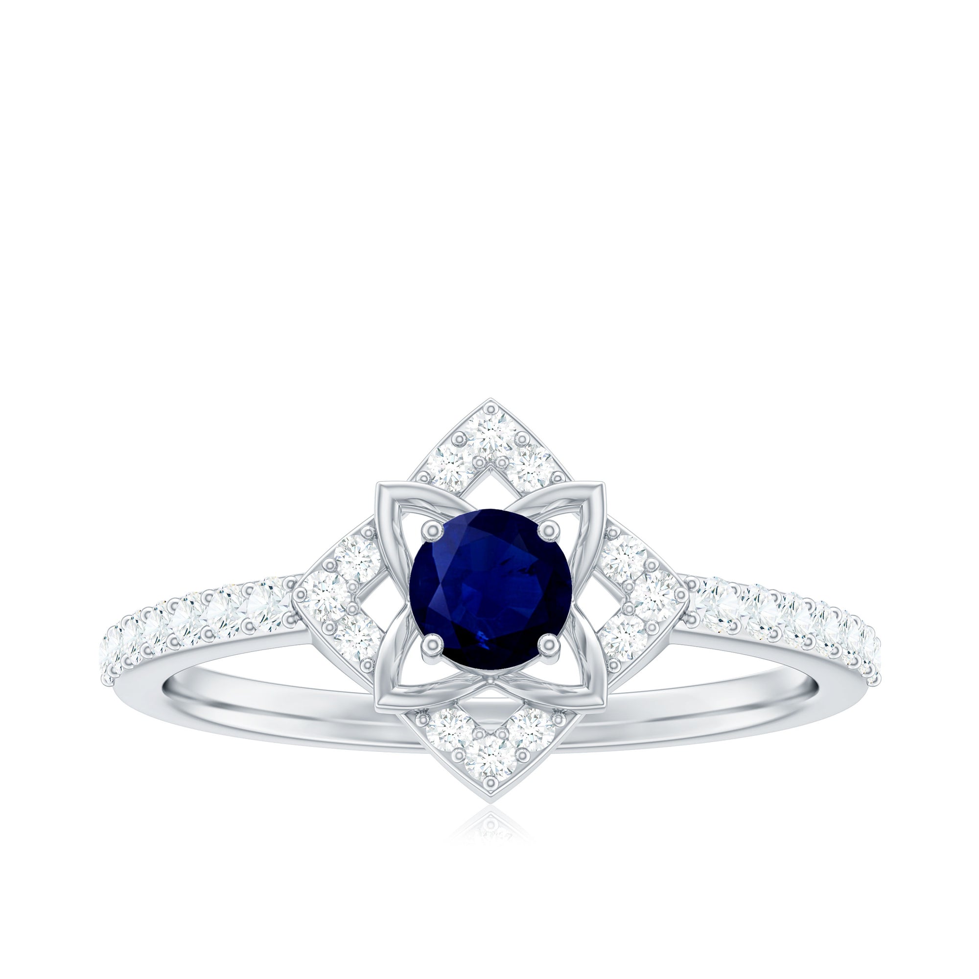 3/4 CT Minimal Blue Sapphire and Diamond Flower Ring