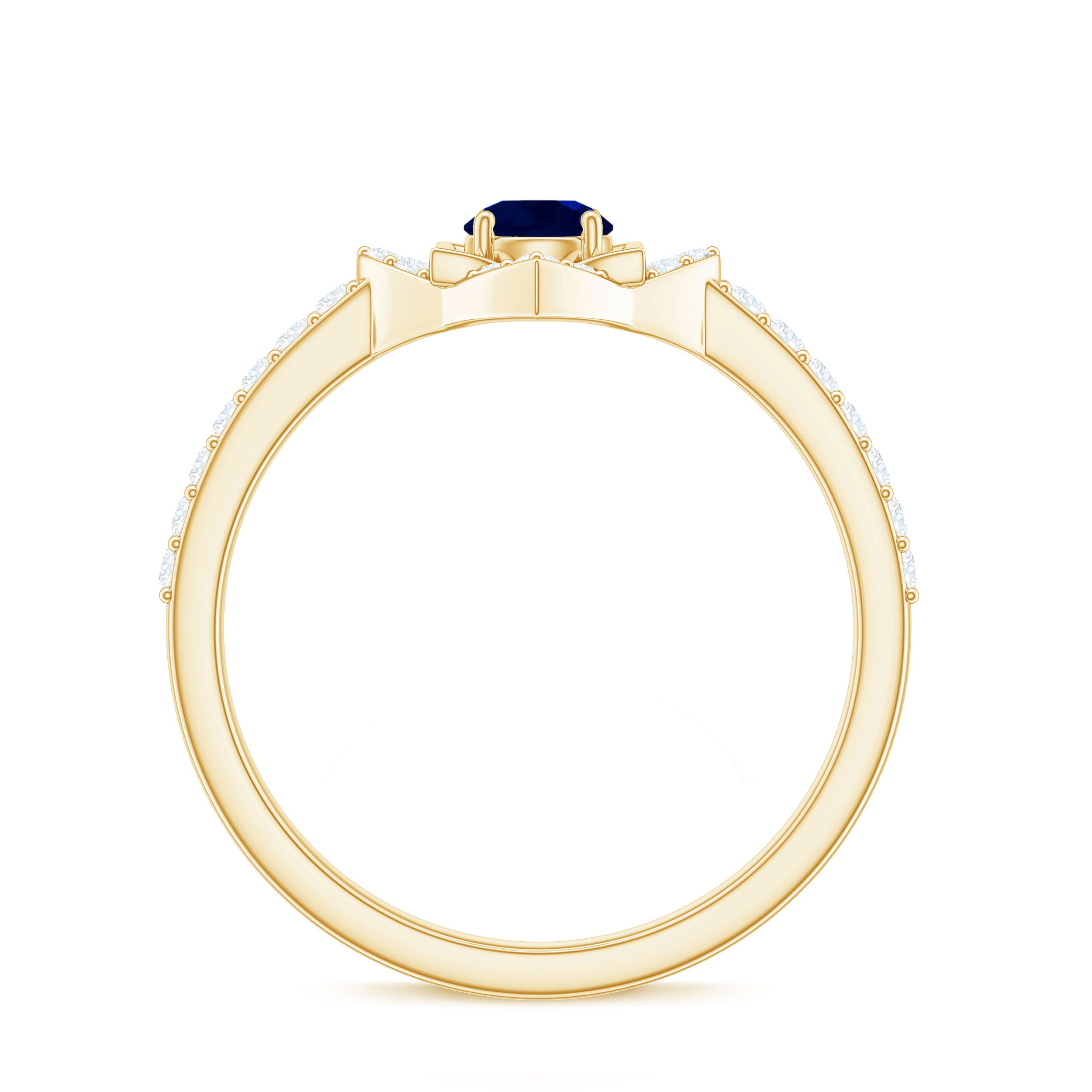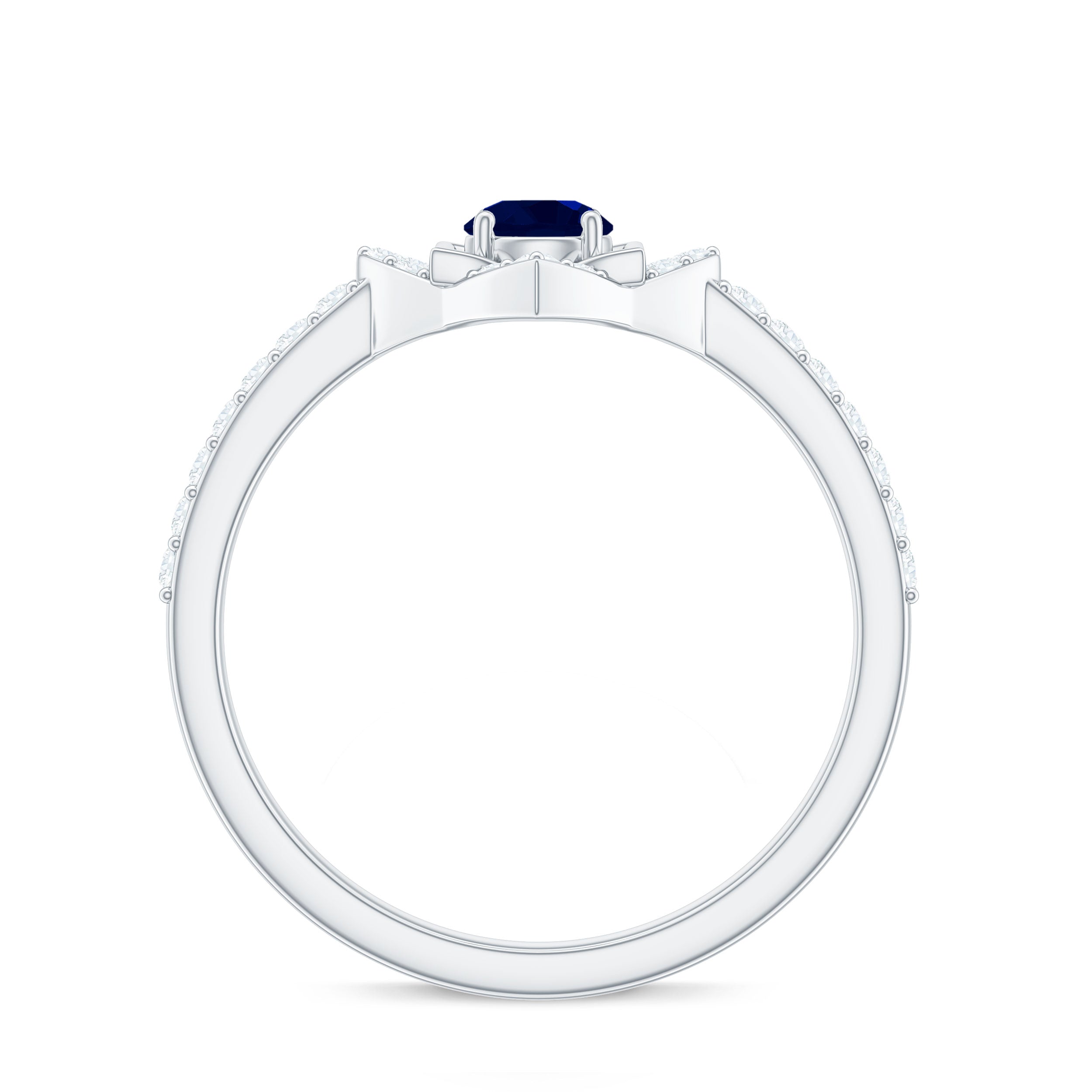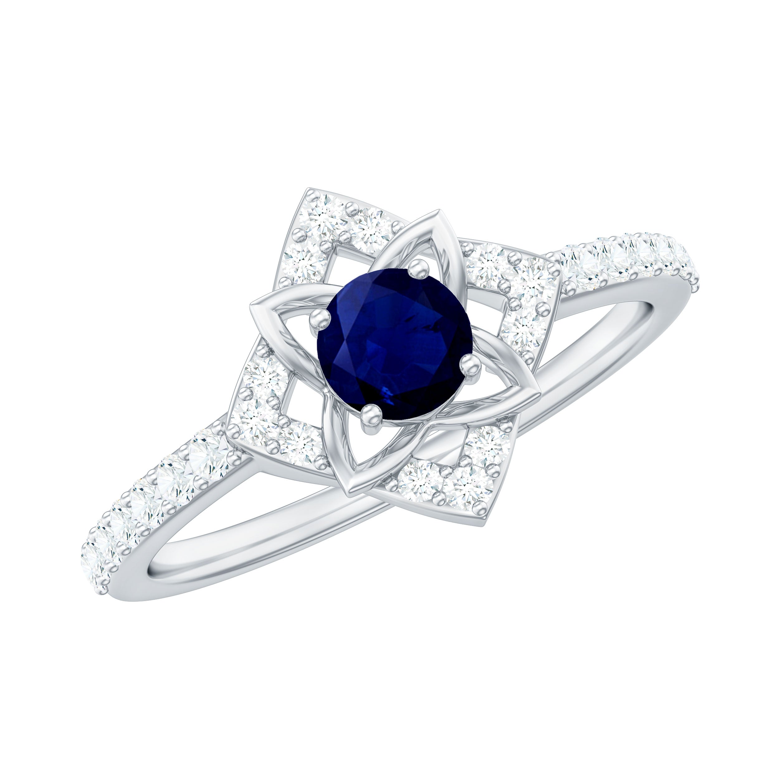 3/4 CT Minimal Blue Sapphire and Diamond Flower Ring