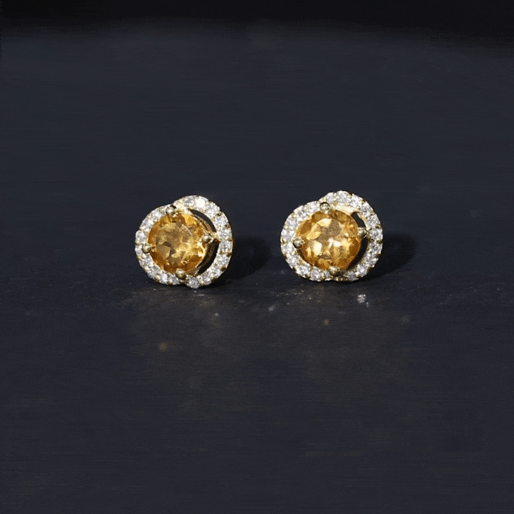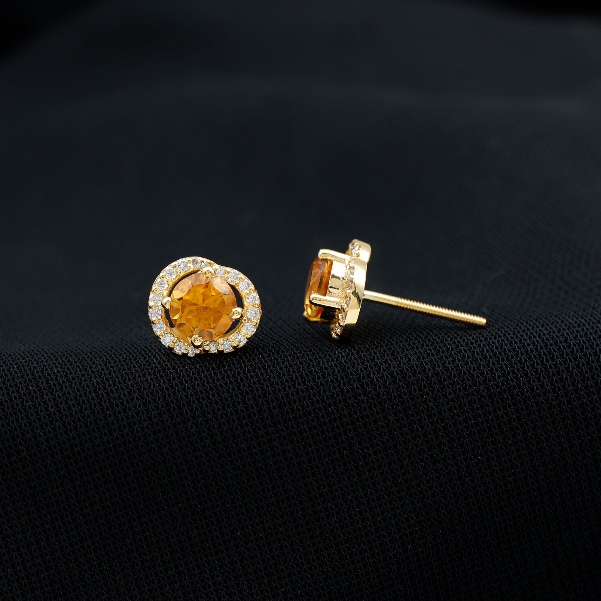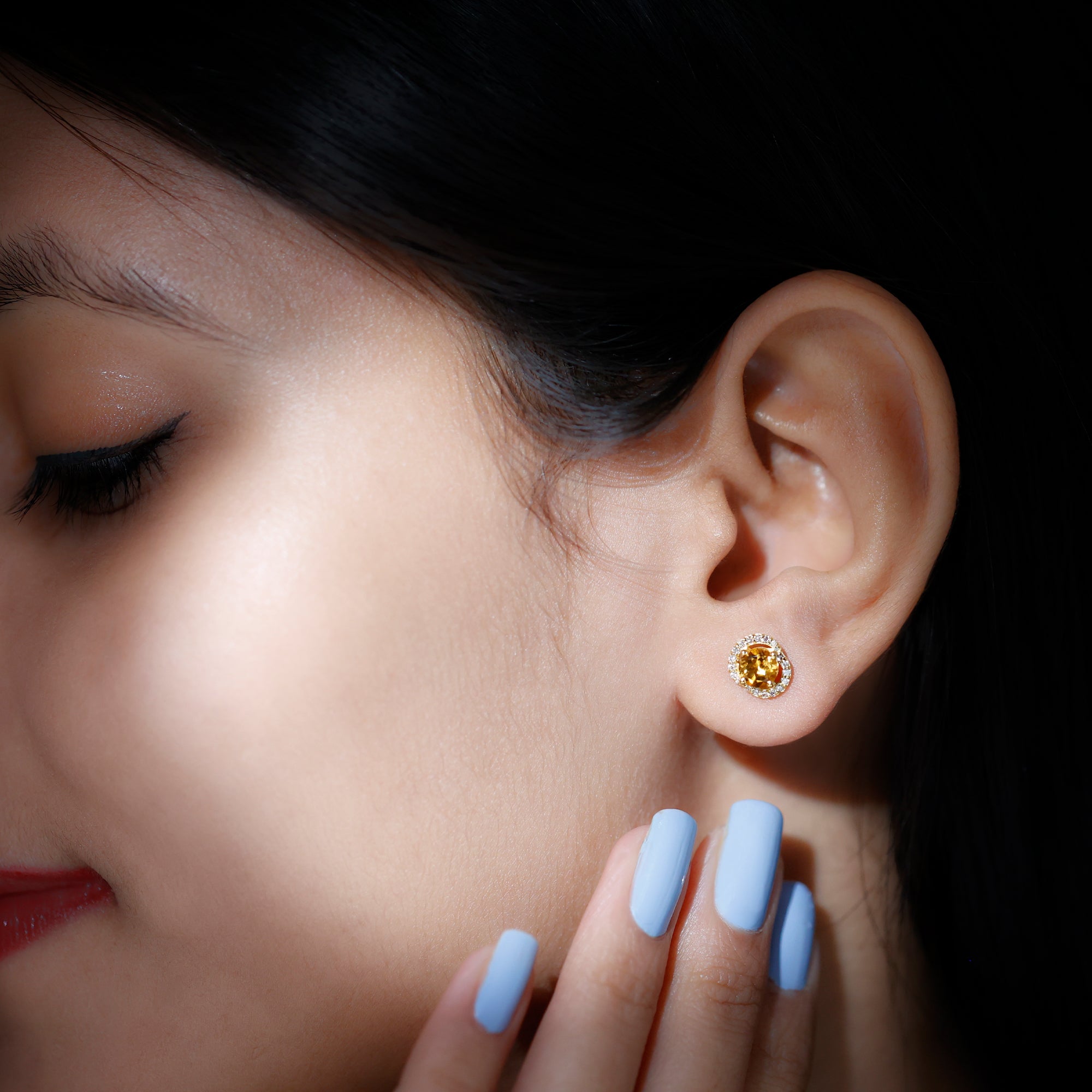 Flaunt your style with these amazing Stud Earrings with Round Shape Citrine set in Solitaire in Prong Setting and Round Shape Diamond set as Halo. A Perfect For Your Lady Love.