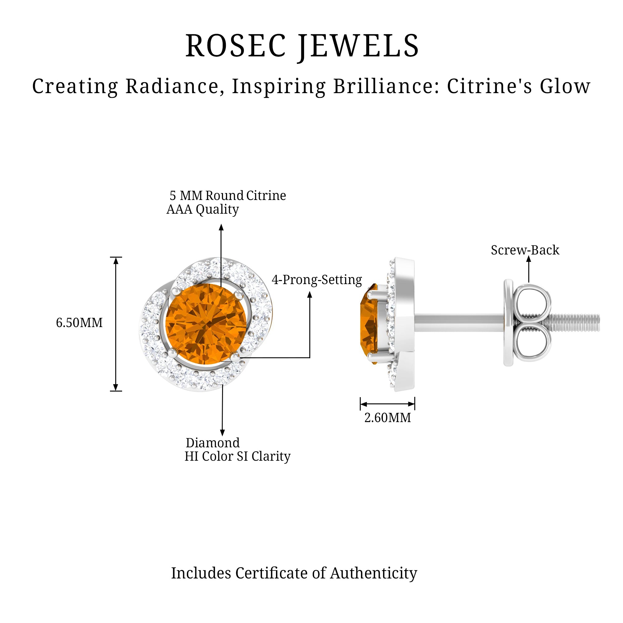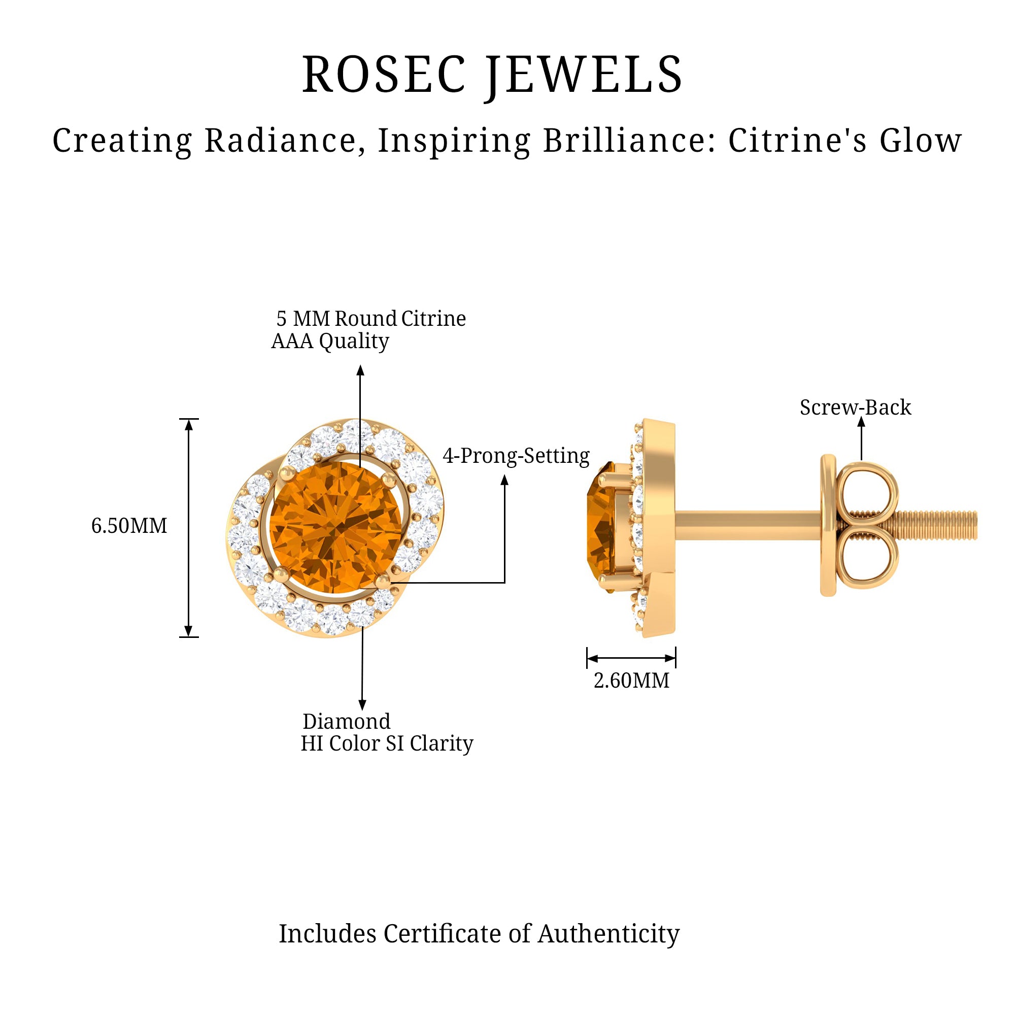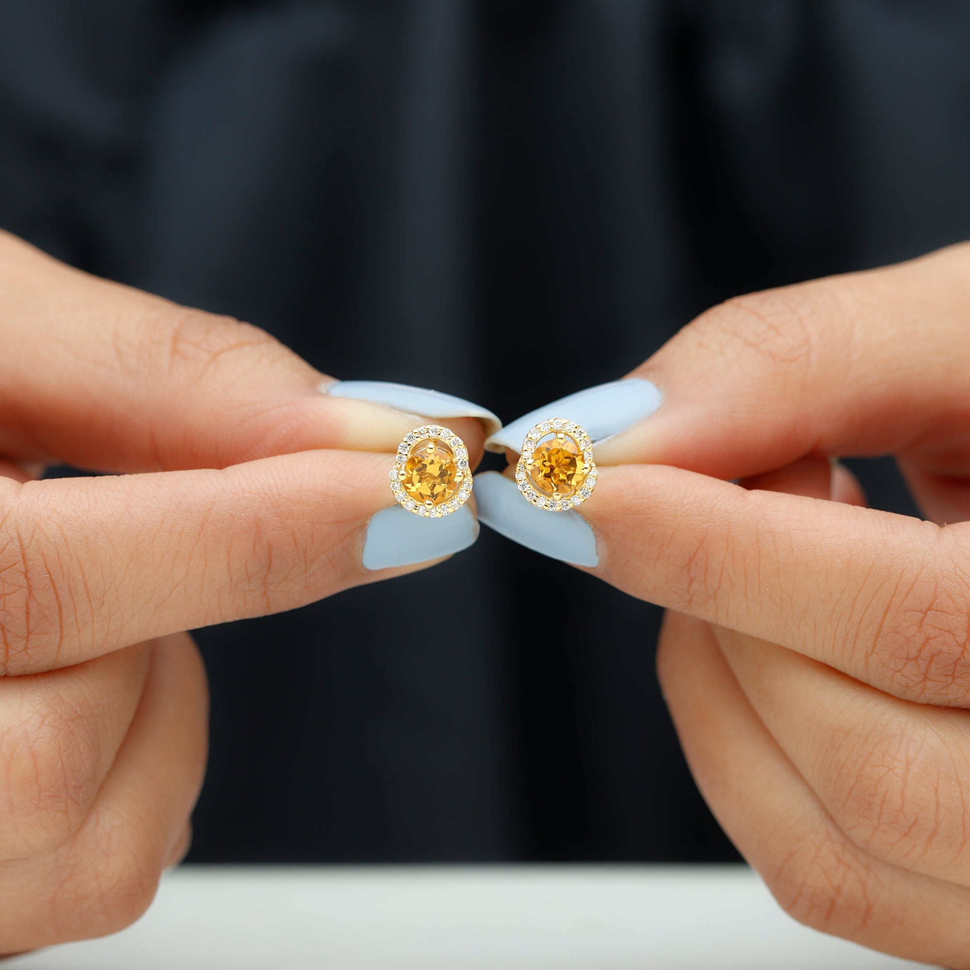 Flaunt your style with these amazing Stud Earrings with Round Shape Citrine set in Solitaire in Prong Setting and Round Shape Diamond set as Halo. A Perfect For Your Lady Love.