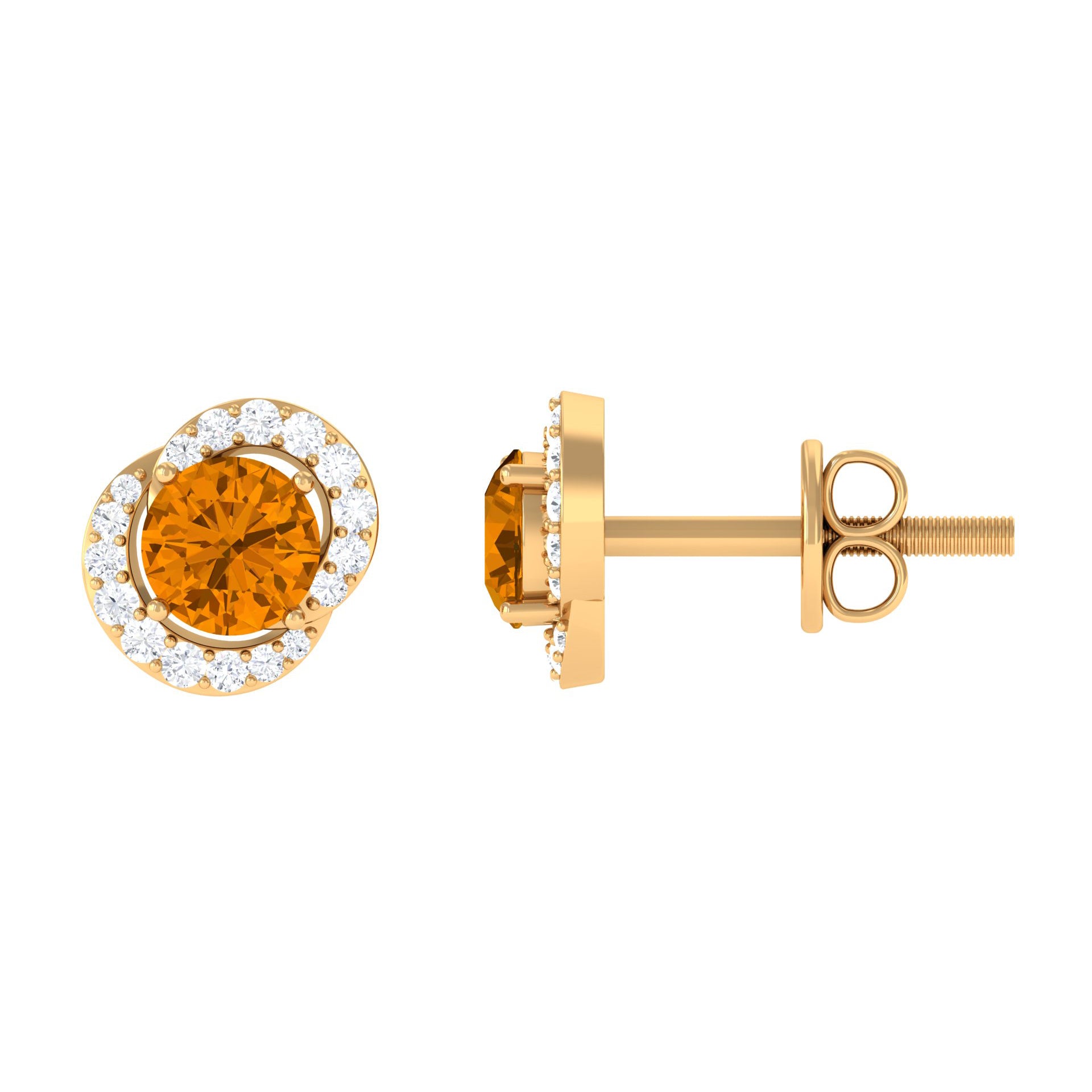 3/4 CT Minimal Citrine and Diamond Stud Earrings