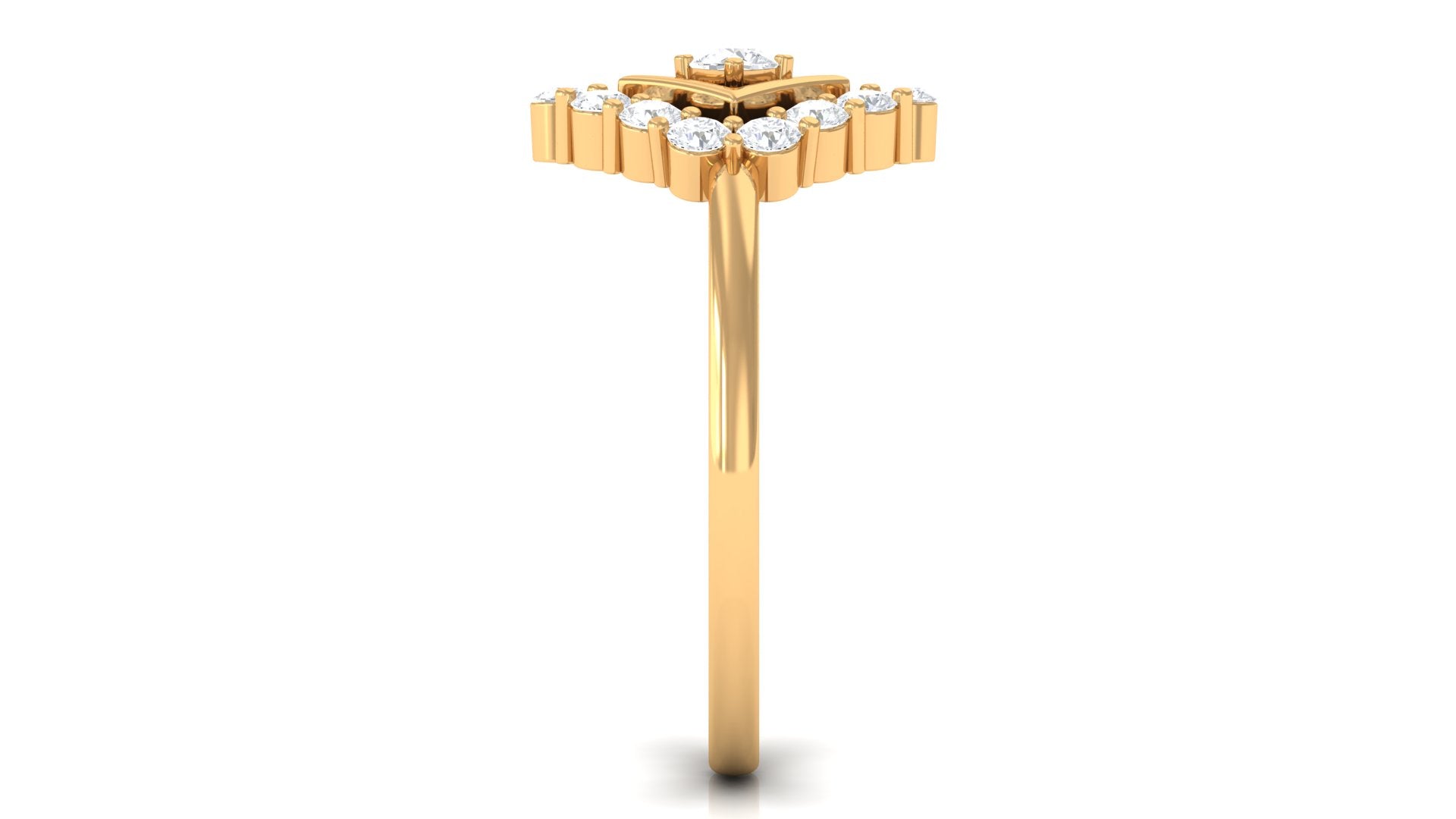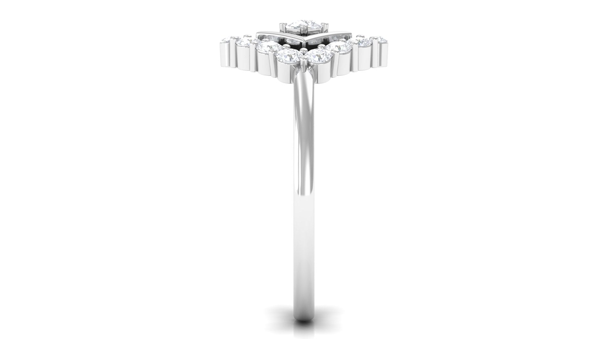 Propose to her with this lovely Promise Ring. At the center, Round Cut Diamond set in Prong Setting. Surrounded by a frame set with shimmering Round Diamonds, this ring truly becomes breath-taking. Polished to a brilliant shine, shell adore this ring as much as she does you.