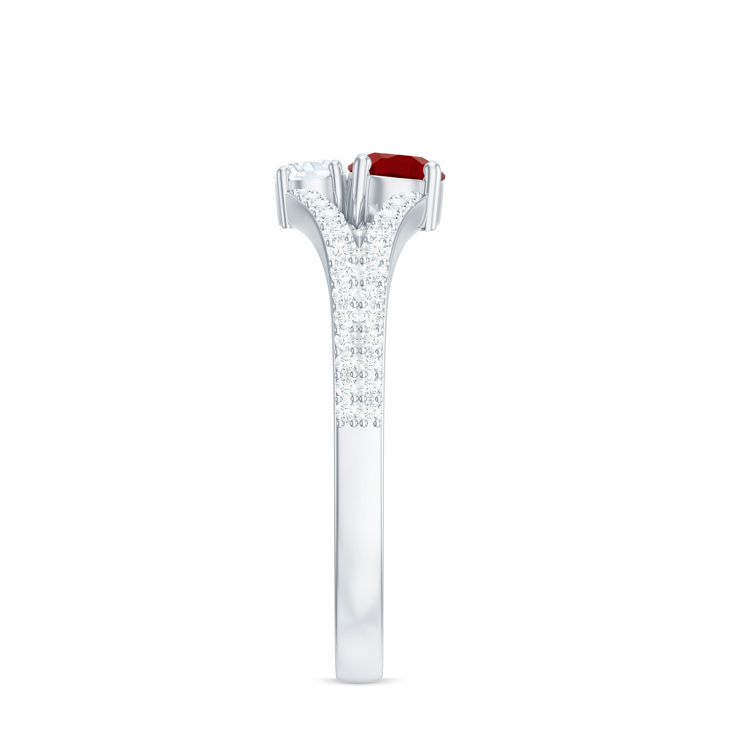 Created Ruby and Diamond Two Stone Split Shank Engagement Ring